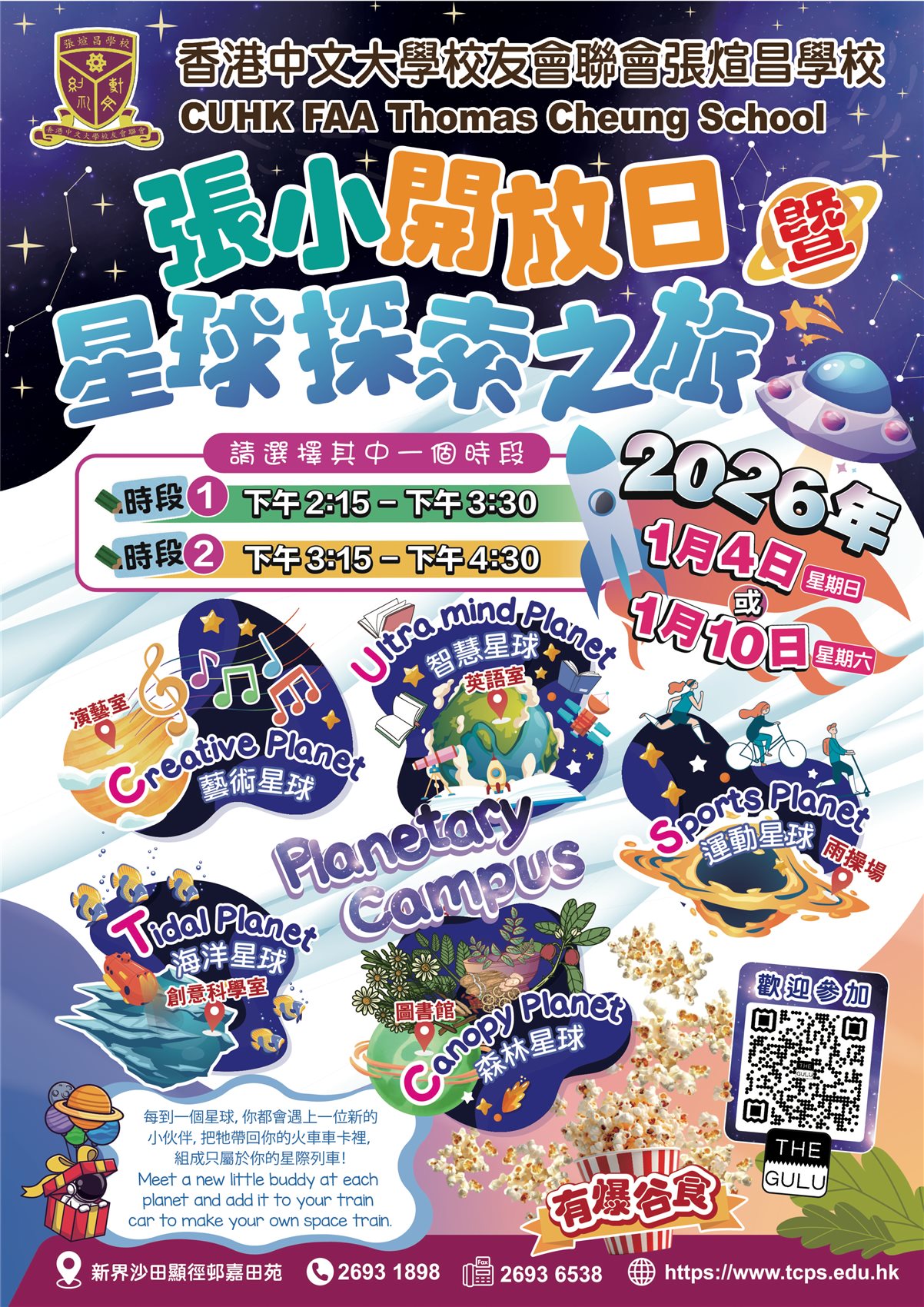 ⭐️TCS Open Day & Planet Exploration Journey🪐 Date: 4thJan,2026 (Sun) or 10thJan,2026(Sat) Venue: CUHK FAA Thomas Cheung School Enquiry: 26931898 Registration Method: https://web.thegulu.com/app/shop/400269?service=RESERVE