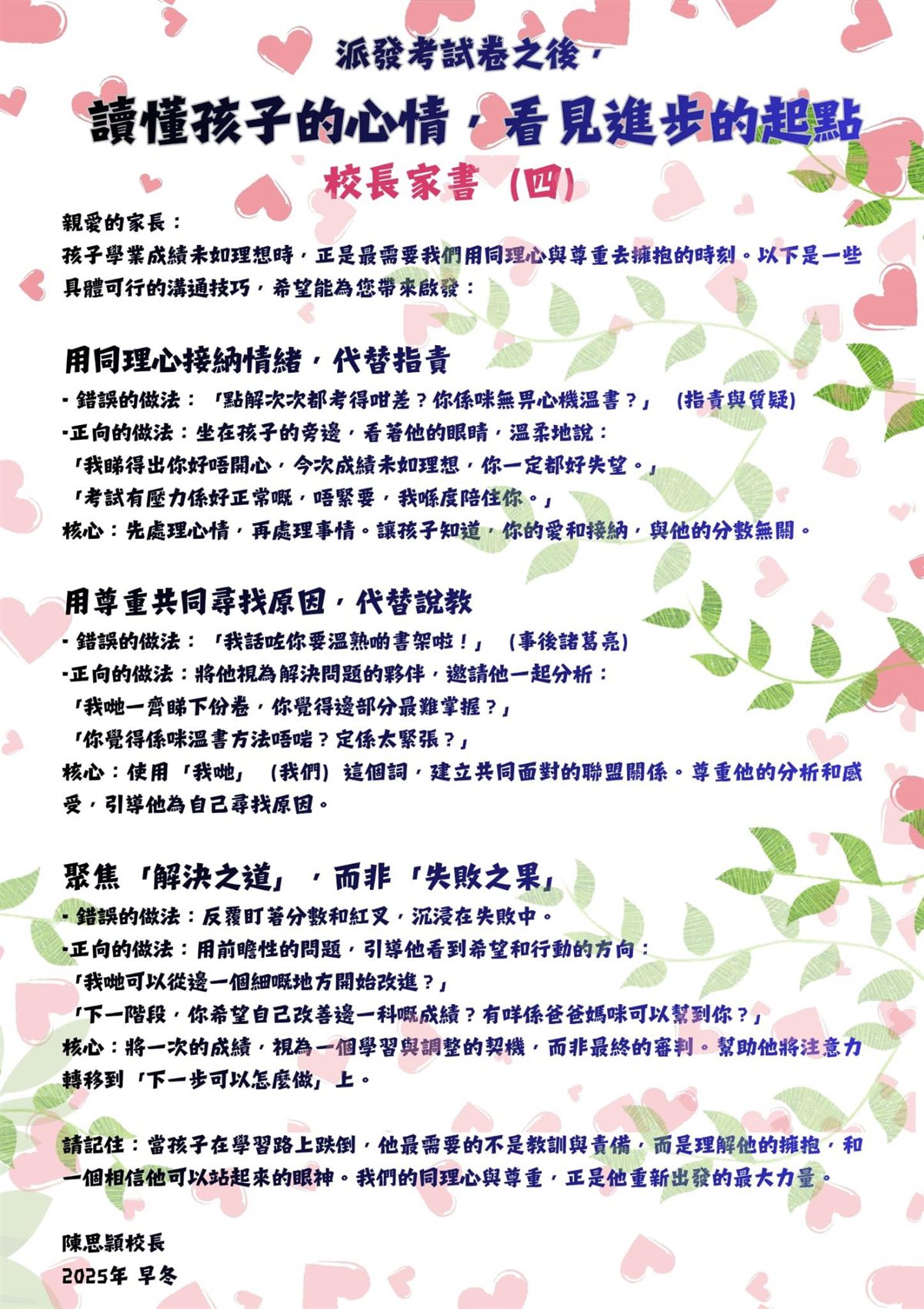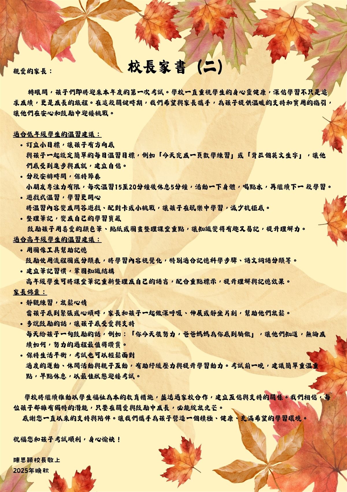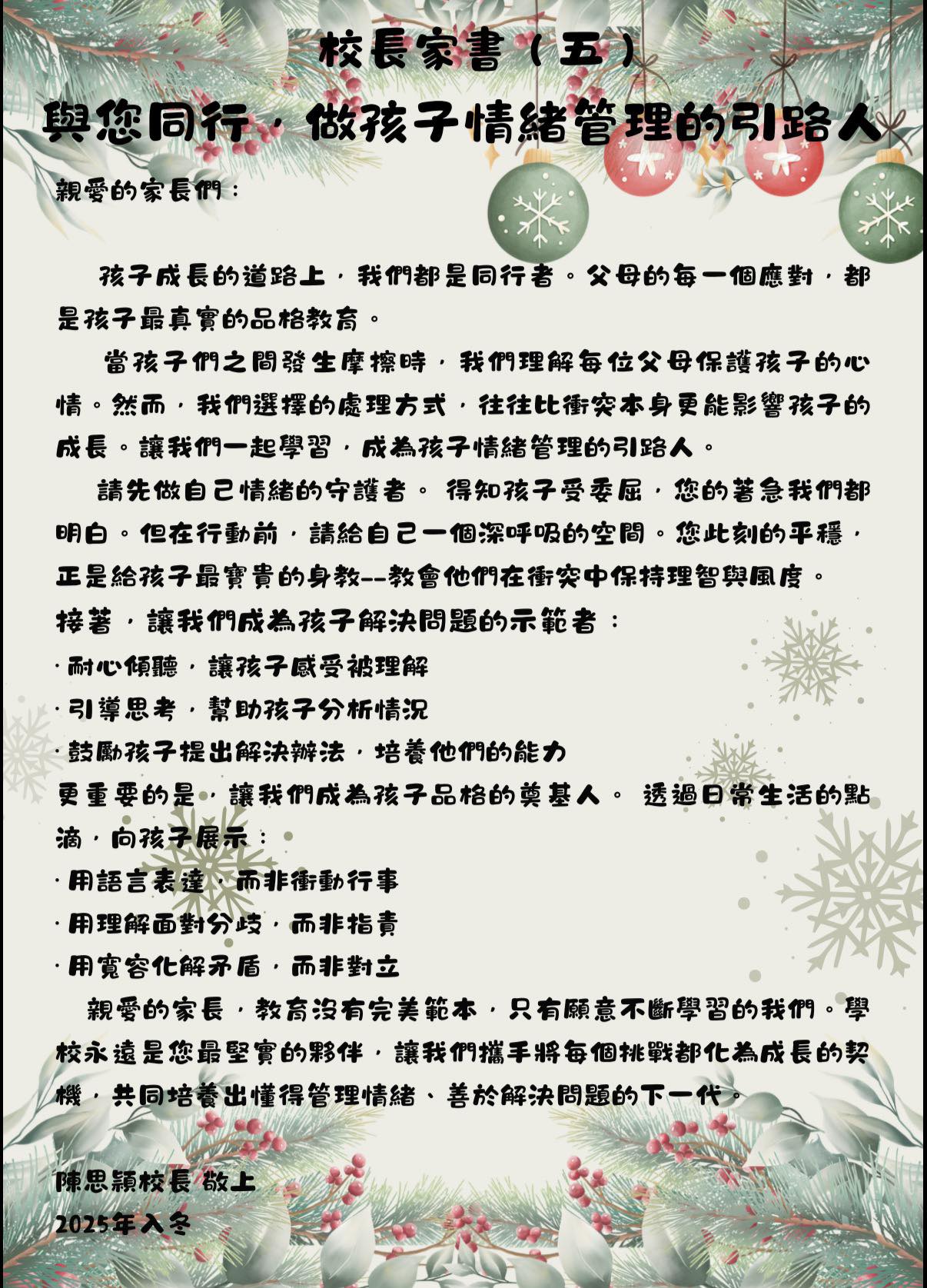 年度 2025-2026校長家書(六)2025-2026校長家書(五)2025-2026校長家書(四)2025-2026校長家書(三)2025-2026校長家書(二)2025-2026校長家書(一) 2024-2025校長的話(9) 2024-2025校長的話(8) 2024-2025校長的話(7) 2024-2025校長的話(6) 2024-2025校長的話(5) 2024-2025校長的話(4) 2024-2025校長的話(3) 2024-2025校長的話(2) 2024-2025校長的話(1)