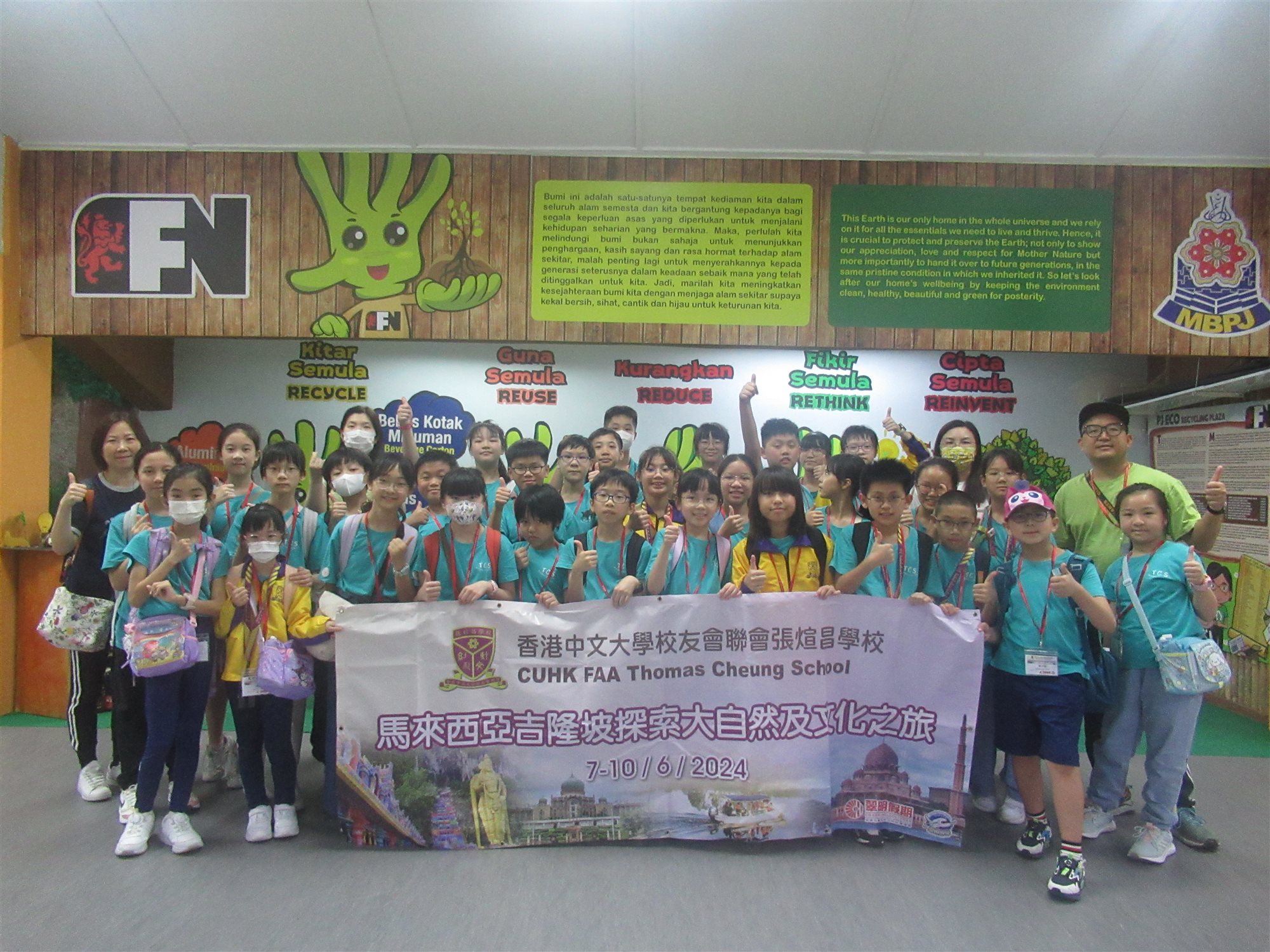 本校於6月7至10日舉行「馬來西亞吉隆坡探索大自然及文化之旅」,32位小四至小六學生於馬來西亞吉隆坡進行不同的探索體驗。他們到巴雅英達濕地公園,體驗給河馬餵食,認識當地動物的生態環境。學生還乘坐型格吉普車,體驗在山野和泥地間飛馳的暢快剌激之感,尖叫及大笑聲此起彼落,即使完成體驗,同學們的興奮心情仍久久未能平伏。及後,同學們到生態回收廣場進行參觀及參與義工服務,對當地推行環保的情況有更深的認識。