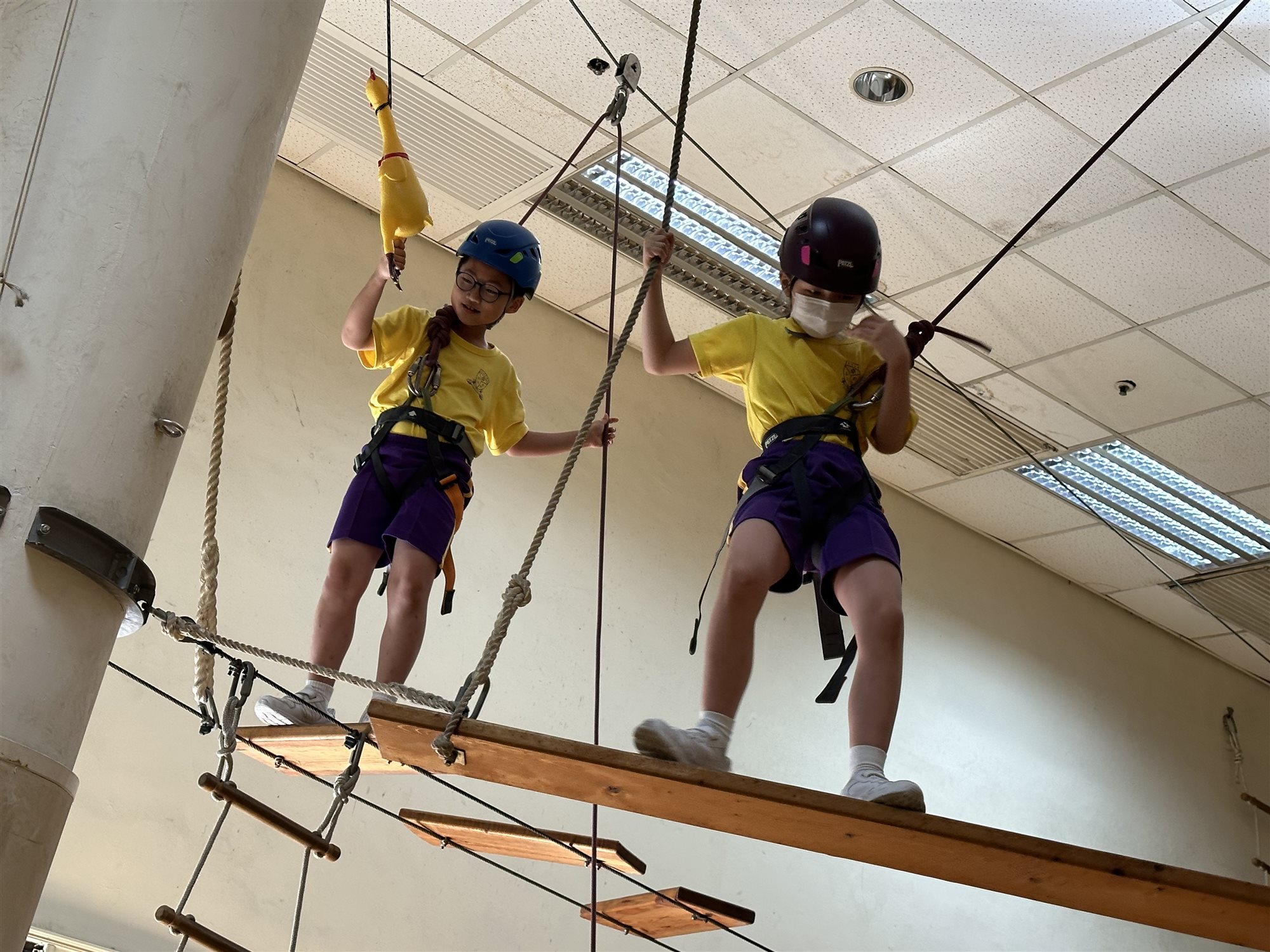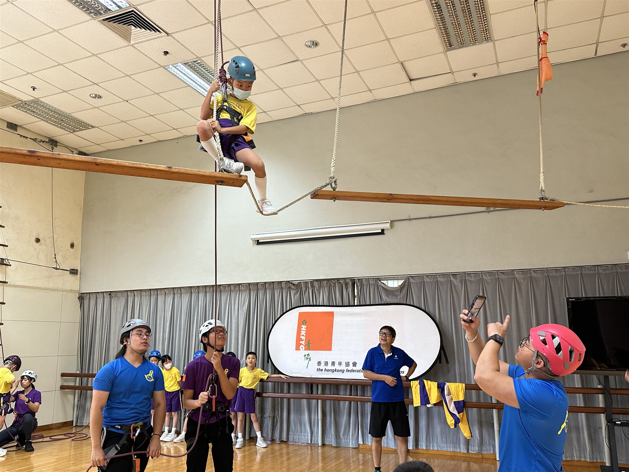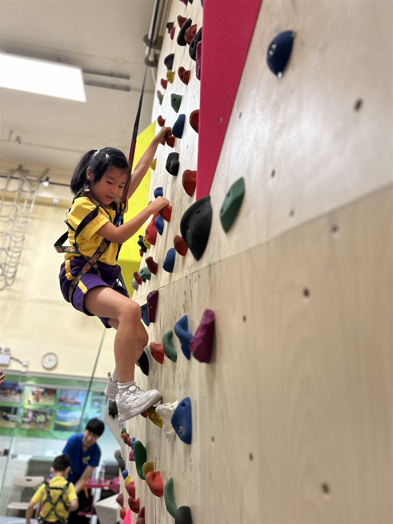本校於7月10日(星期三)為全體小二舉辦「學生活動日之勇闖高峰攀石大挑戰」。老師帶領小二全體同學到專業攀石訓練場地,由教練教導小朋友正確的攀技巧。學生將穿上安全裝備,在導師指引下學習攀石,以挑戰自己,提升自信。此 外,同學亦在場館內進行歷奇訓練,既能提升學生的團隊合作精神,也可培養其解難能力。