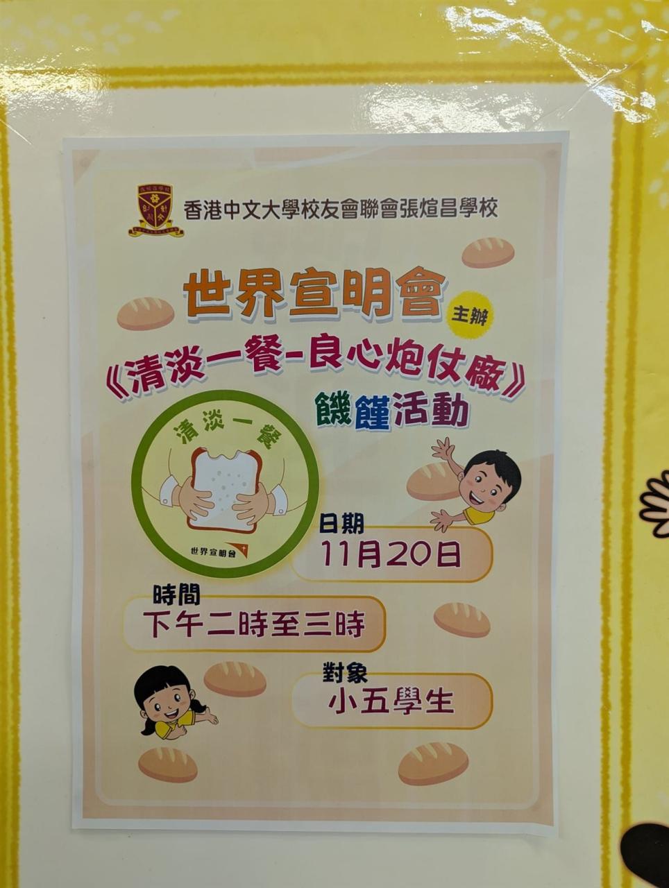 小五生命教育舉行了清淡一餐活動,透過活動讓學生體驗貧窮國家兒童的生活,從而學會感恩身邊的人和事,更重要的是珍惜食物及關心世界上有需要幫助的人。