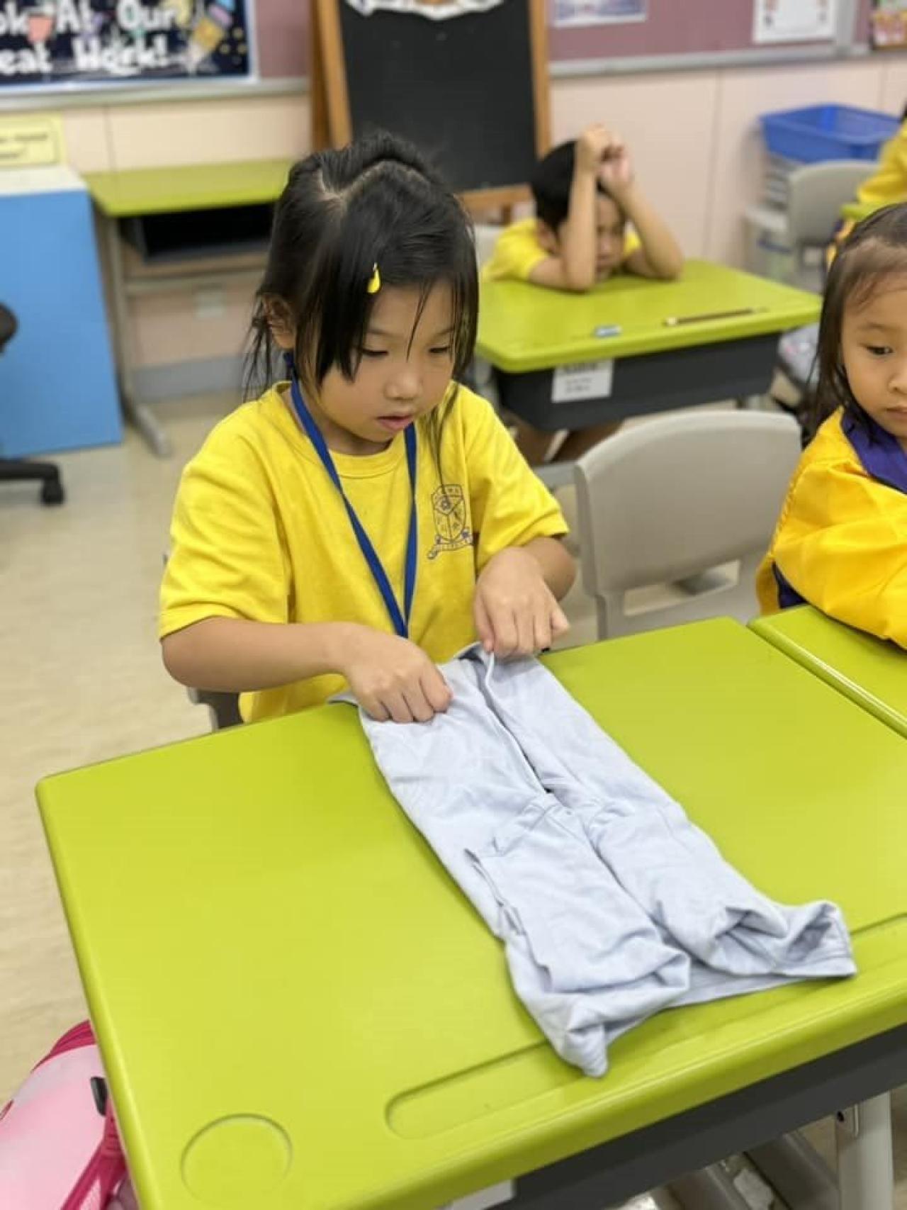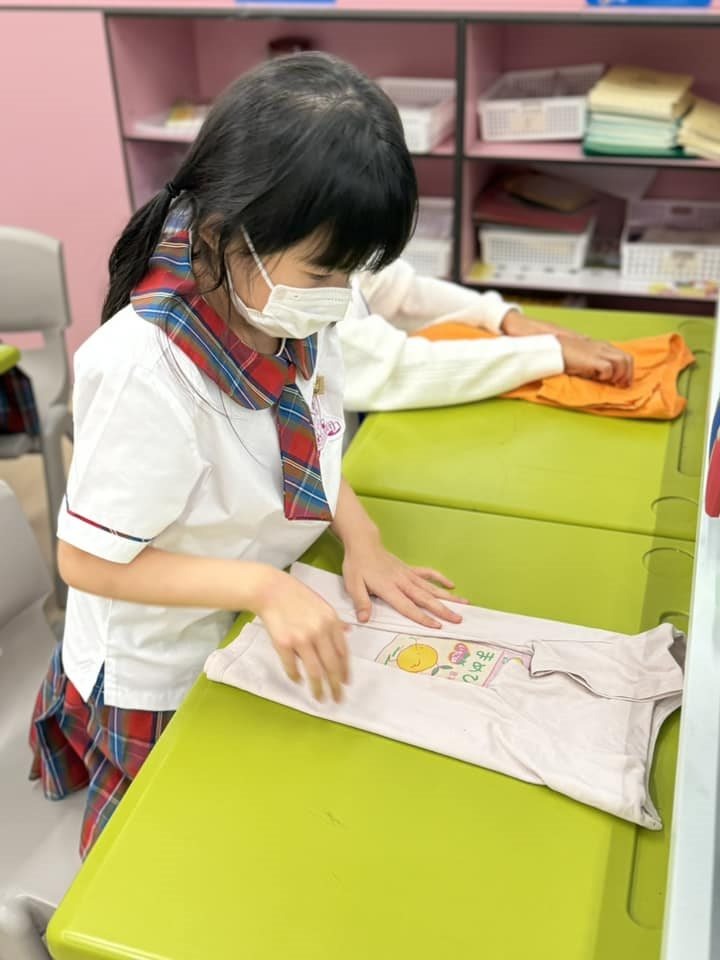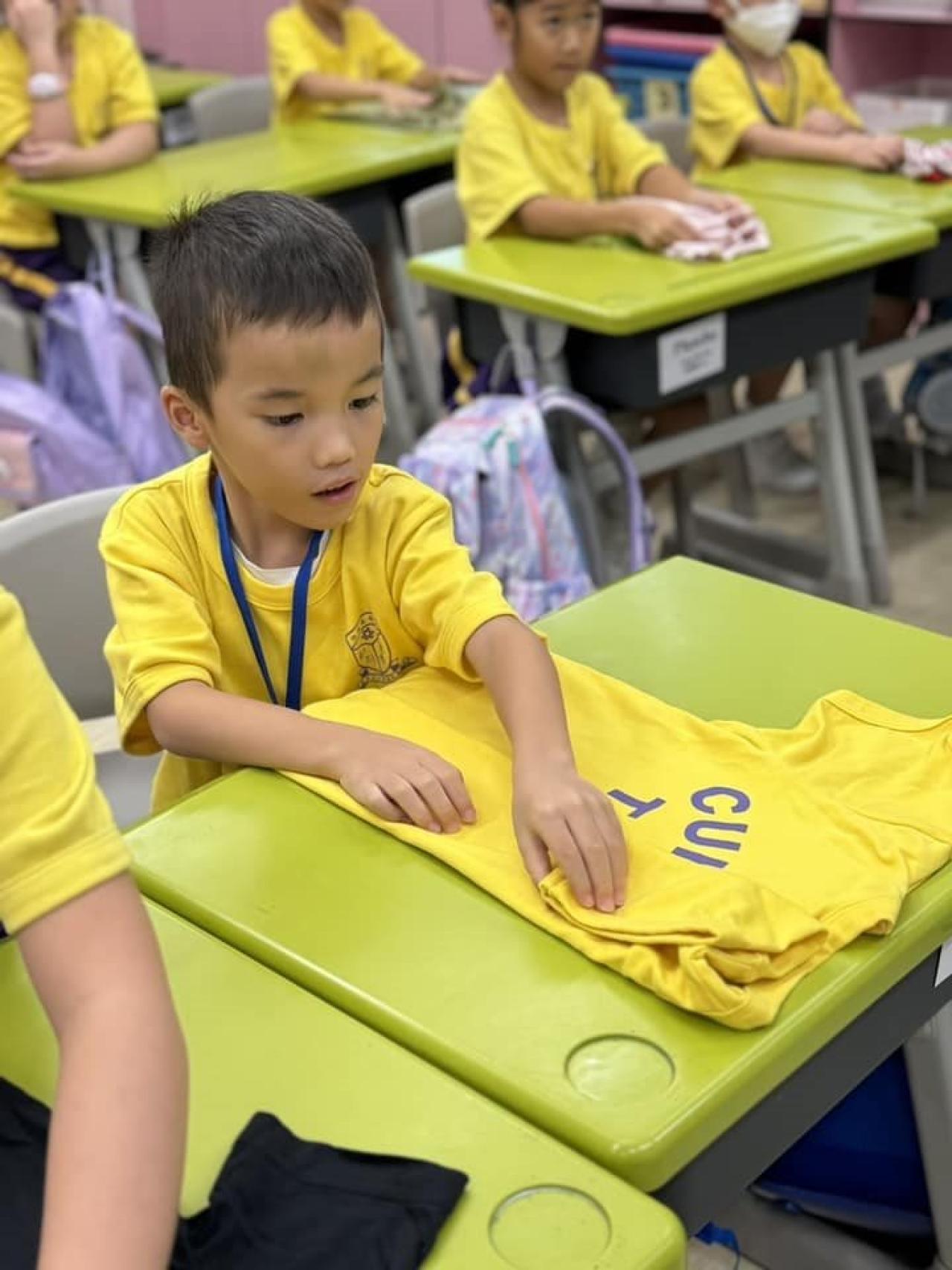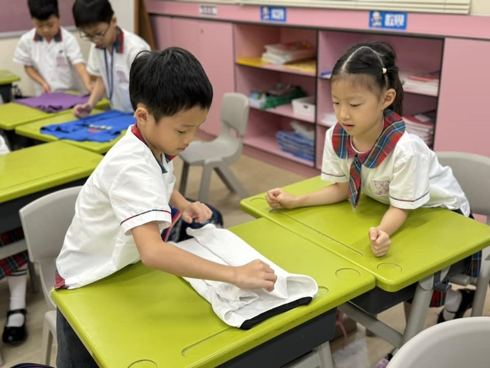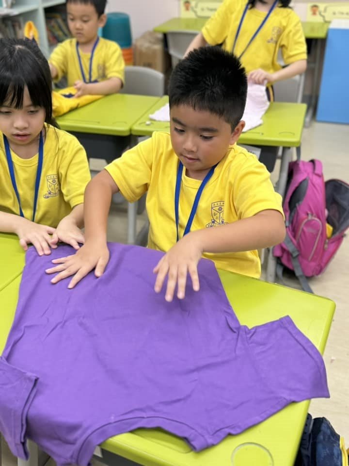 一年級9月生命教育課要學習自理能力,小朋友學會了摺衫,看看他們充滿了成功感,還說要回家幫媽媽接衫呢😊