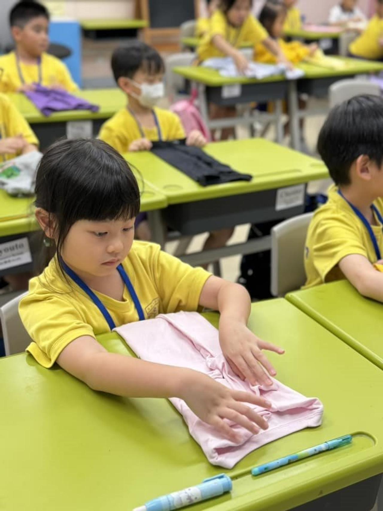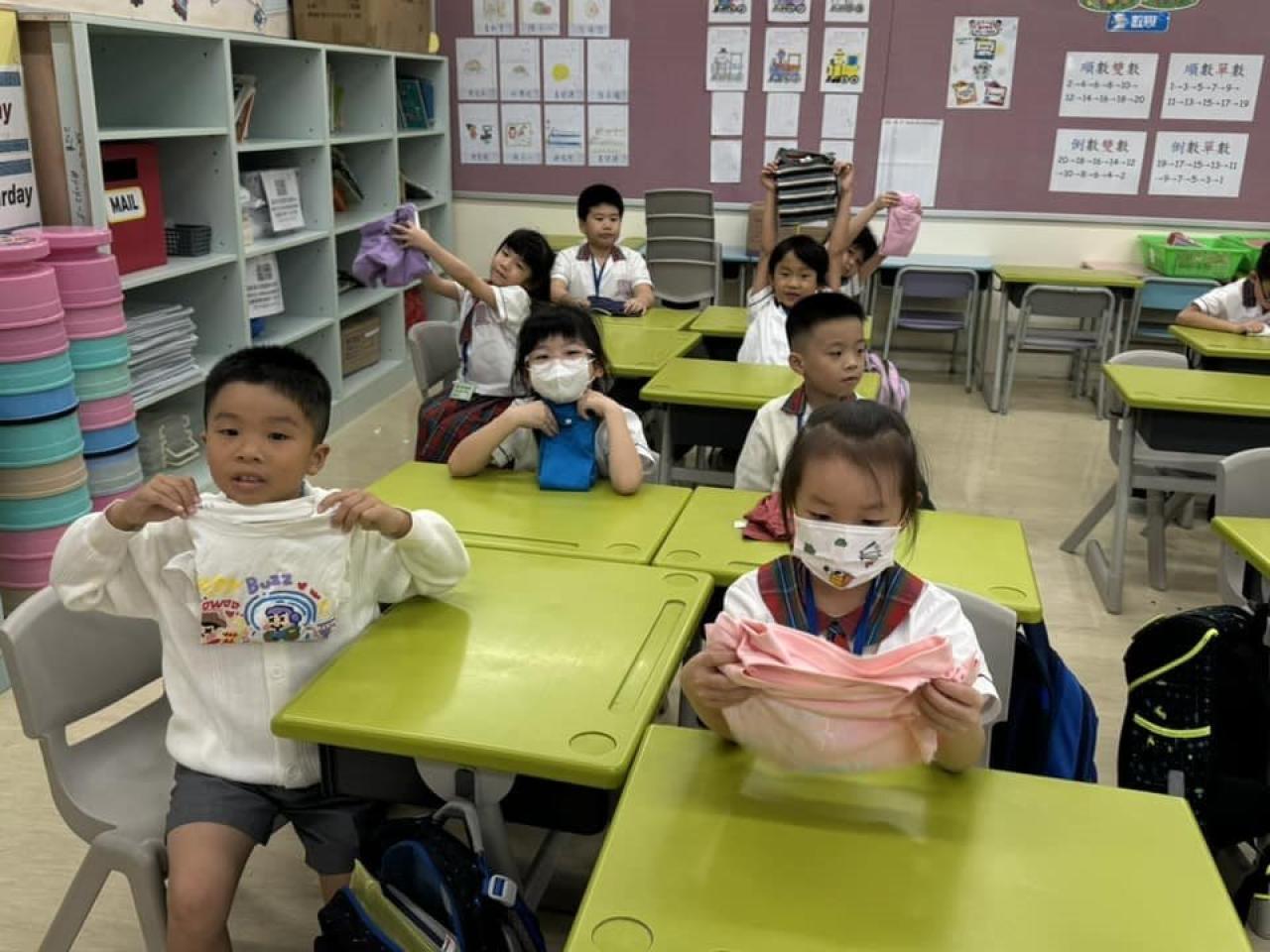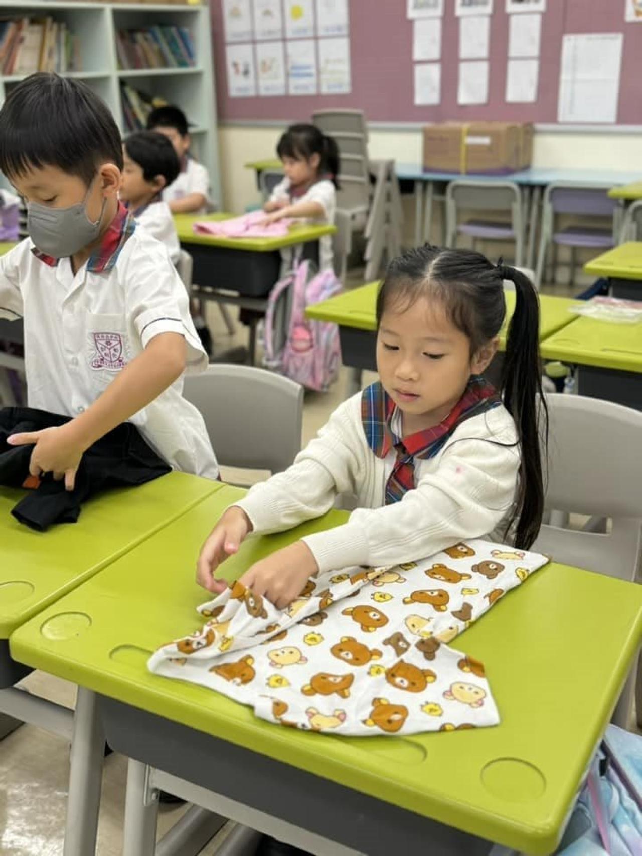 一年級9月生命教育課要學習自理能力,小朋友學會了摺衫,看看他們充滿了成功感,還說要回家幫媽媽接衫呢😊