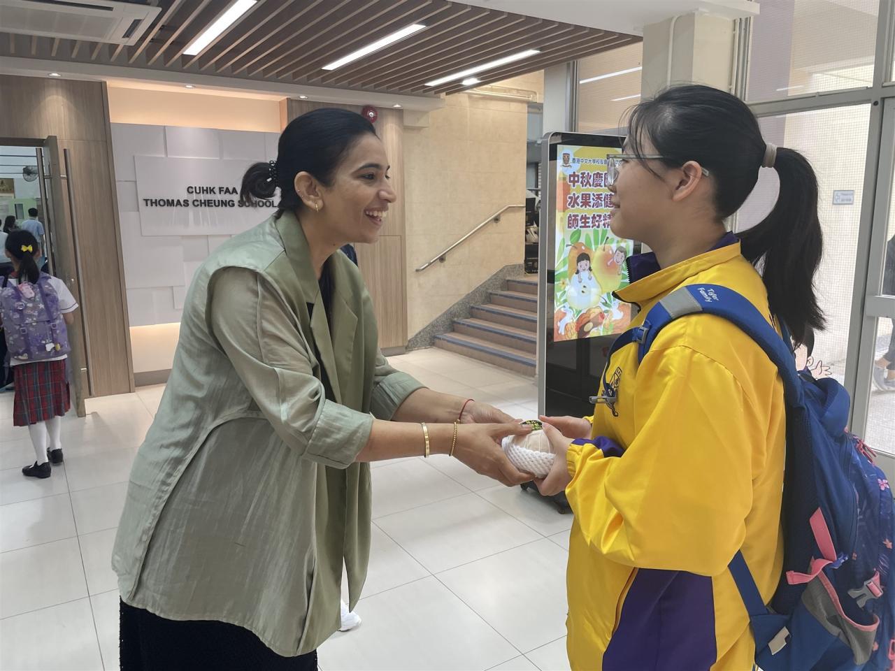 今天是中秋佳節,校長及老師們向全校同學派發冰糖梨。祝願所有的老師和同學與家人團圓,健康幸福。中秋節快樂 !