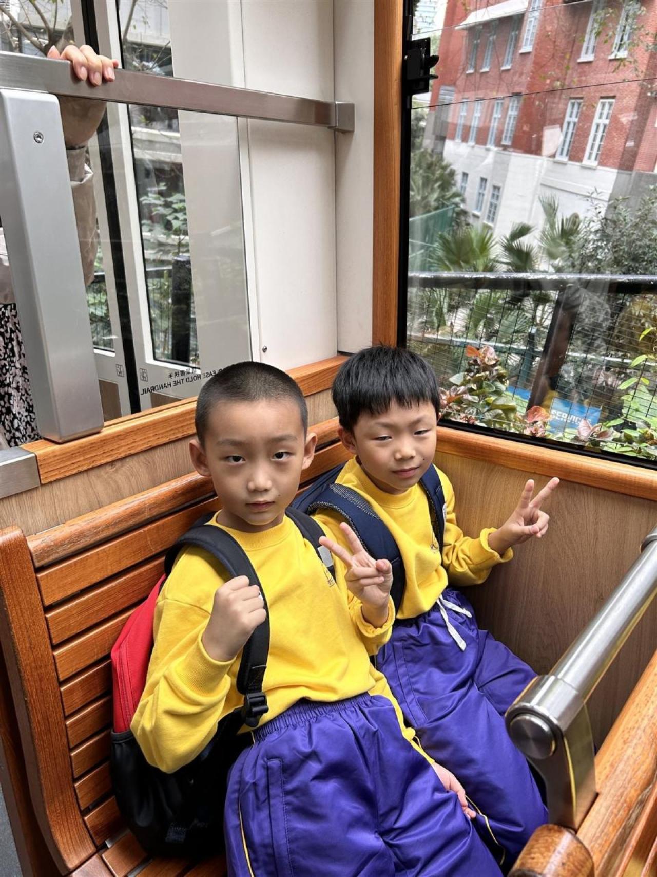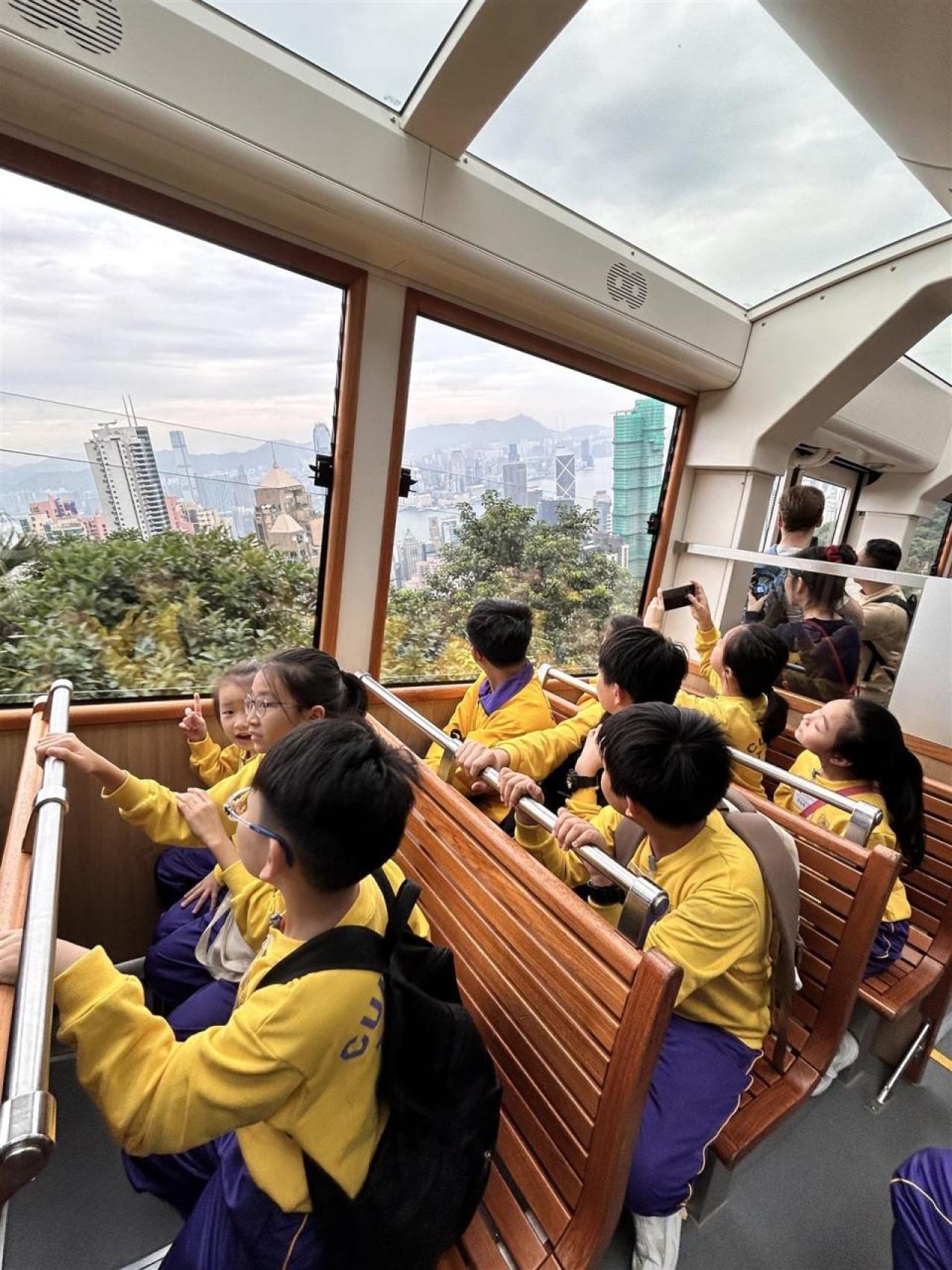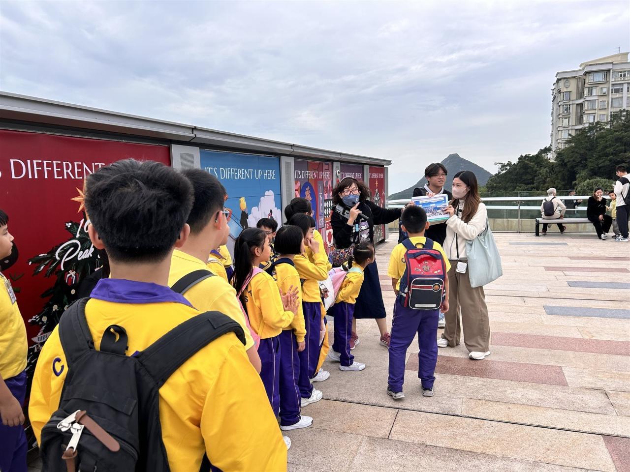 為使新來港兒童熟悉香港社區,增加生活體驗和擴闊視野,本校於2024年11月23日舉辦新來港學童「山頂半天遊」活動。當天活動內容十分豐富,學生除了乘坐歷史悠久的山頂纜車外,更到山頂凌霄閣「摩天台428」欣賞維港迷人景緻。此外,學生在山頂郵局親自給家人寄出明信片及在巿集購買紀念品,大家都滿載而歸。