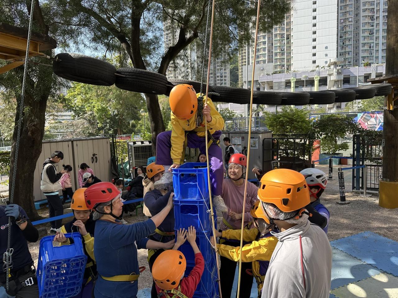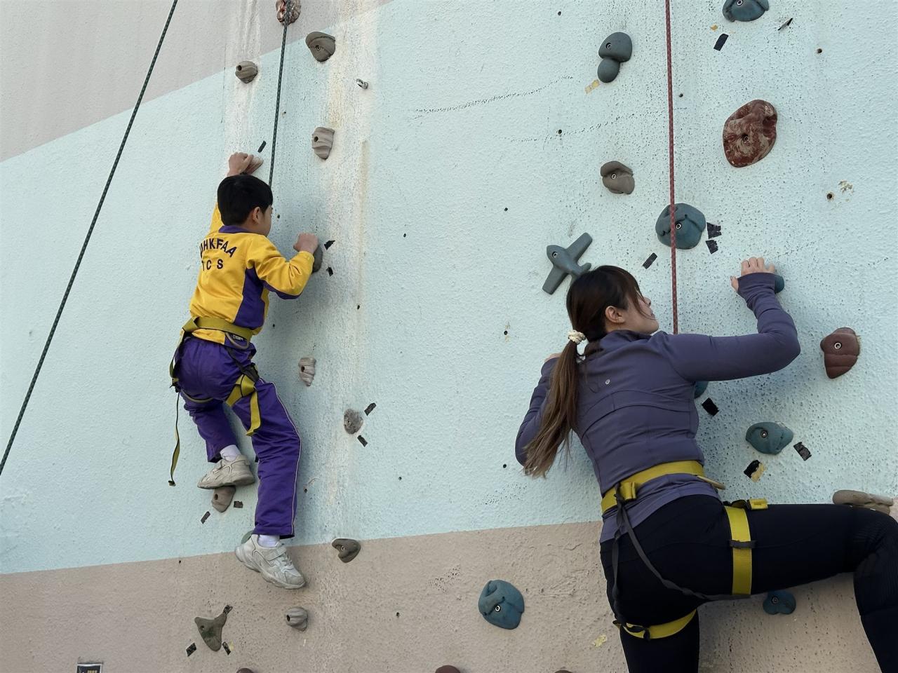 2025-02-18 6個家庭參加了『「歷」久嘗新 – 強化家庭抗逆力親子平衡小組』舉辦的家庭歷奇日,親子一同合作進行了攀石及高疊盤挑戰,透過歷奇活動促進家庭成員的合作及溝通,建立正向親子關係。 體育活動