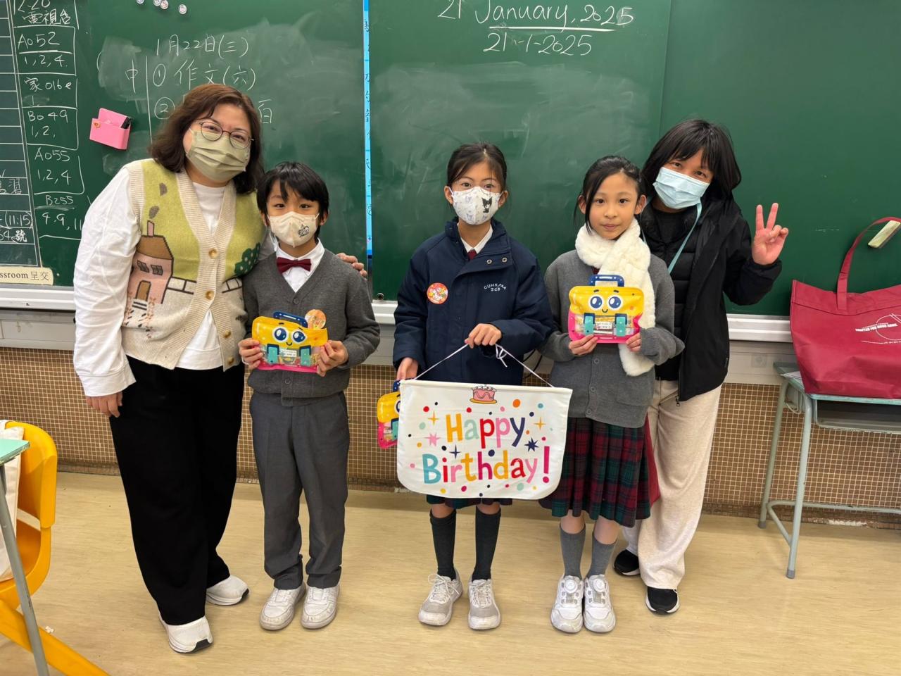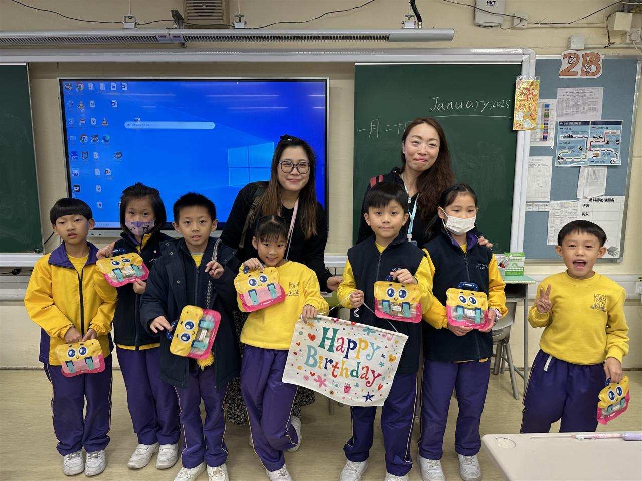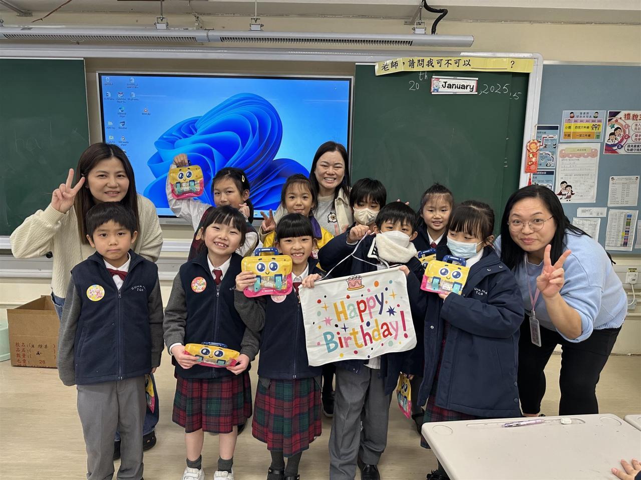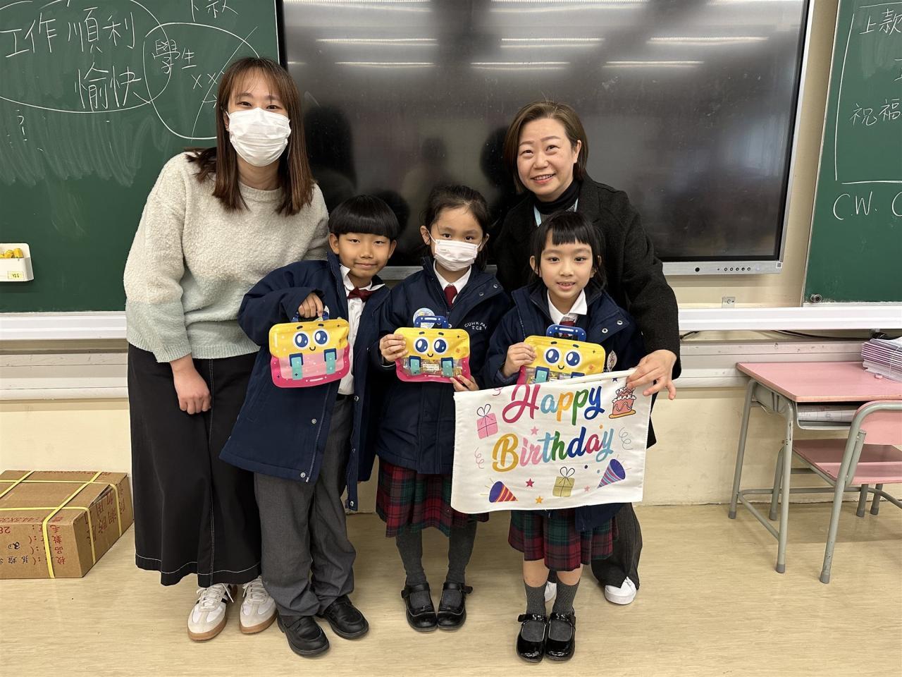 家長義工到各班舉行「關愛生日會」為12-2月生日的同學慶祝生日及玩小遊戲。同學們都非常高興,並期待下一次3-5月的生日會到來。