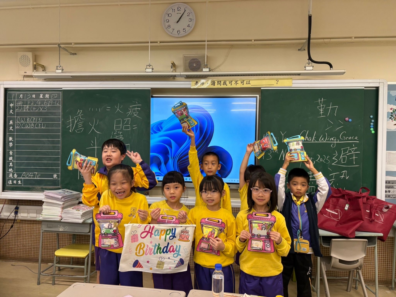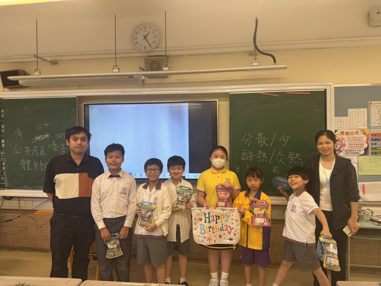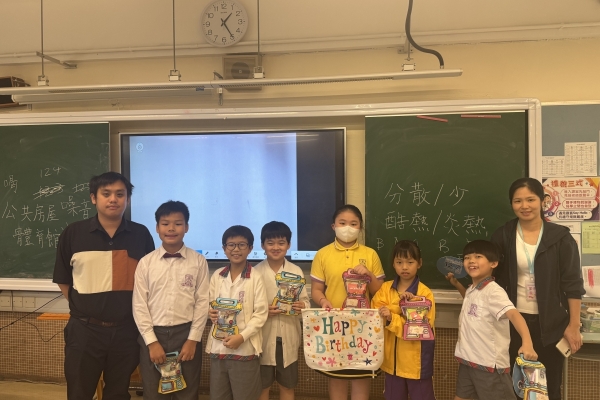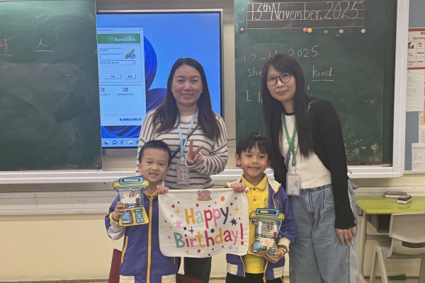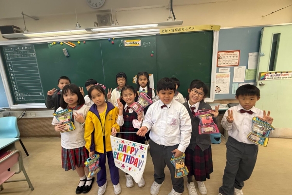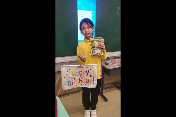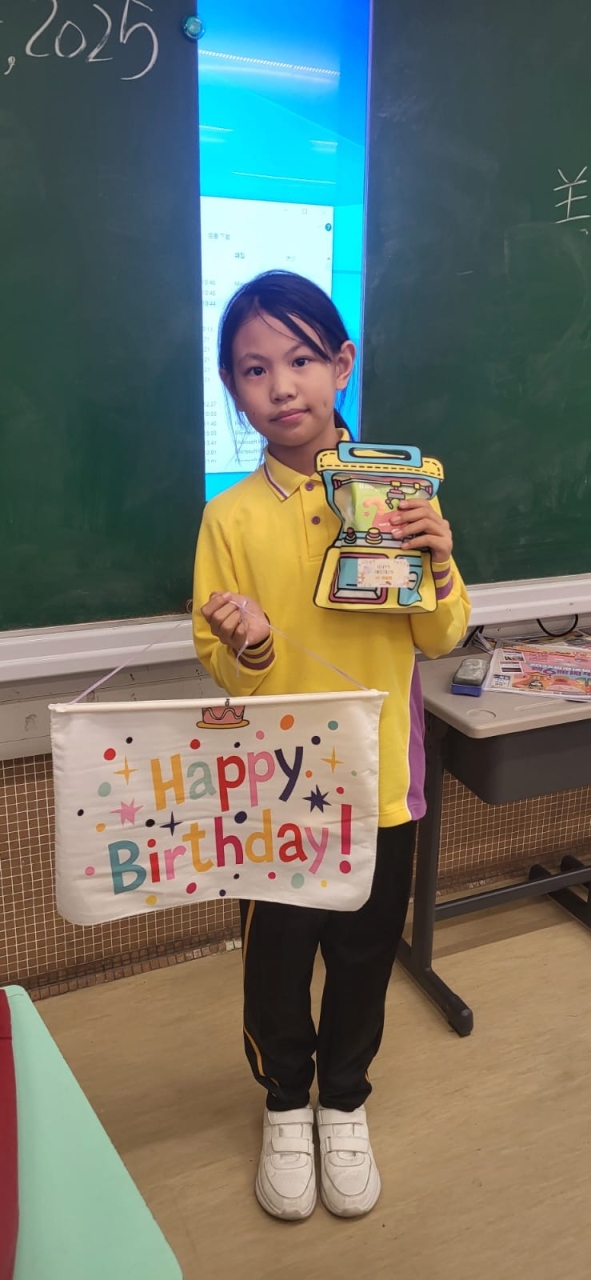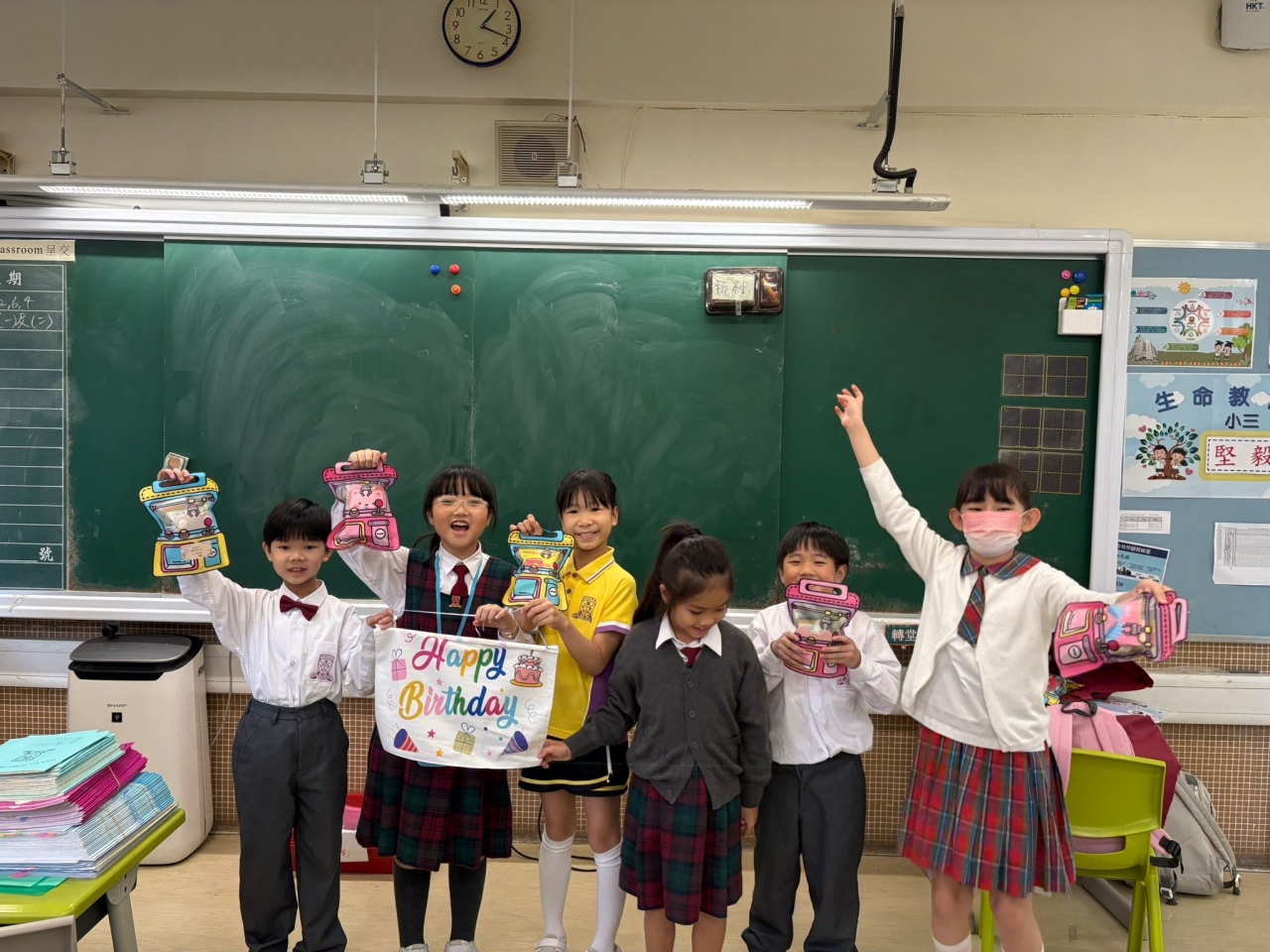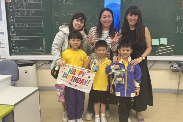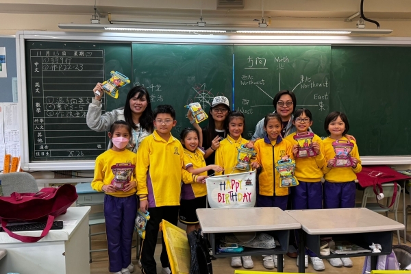 月生日的學生慶祝生日。家長義工協助下