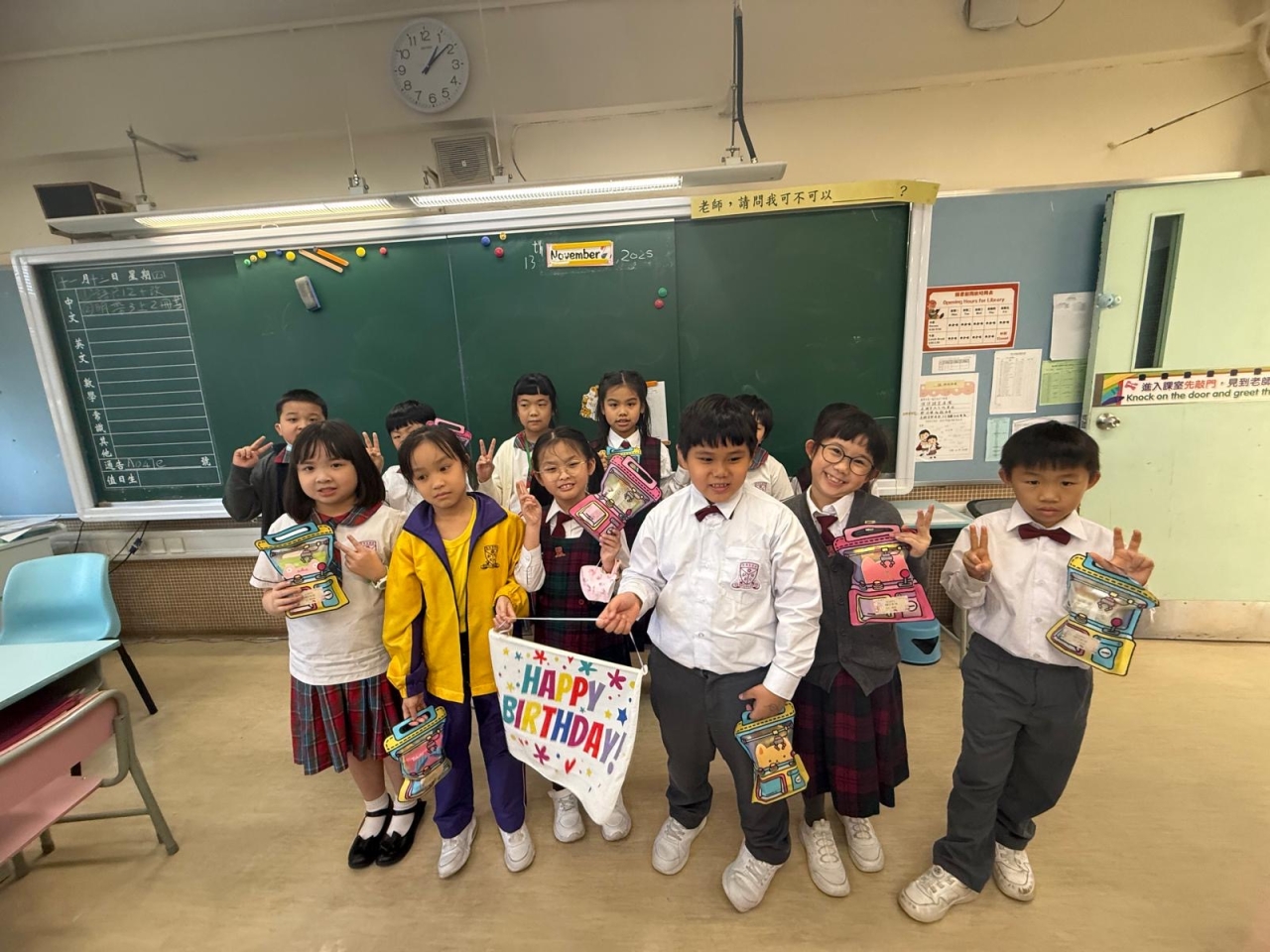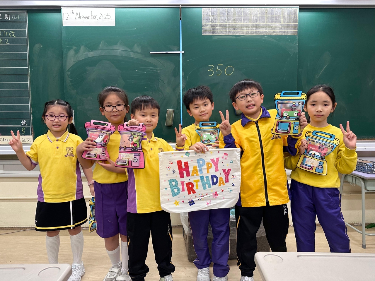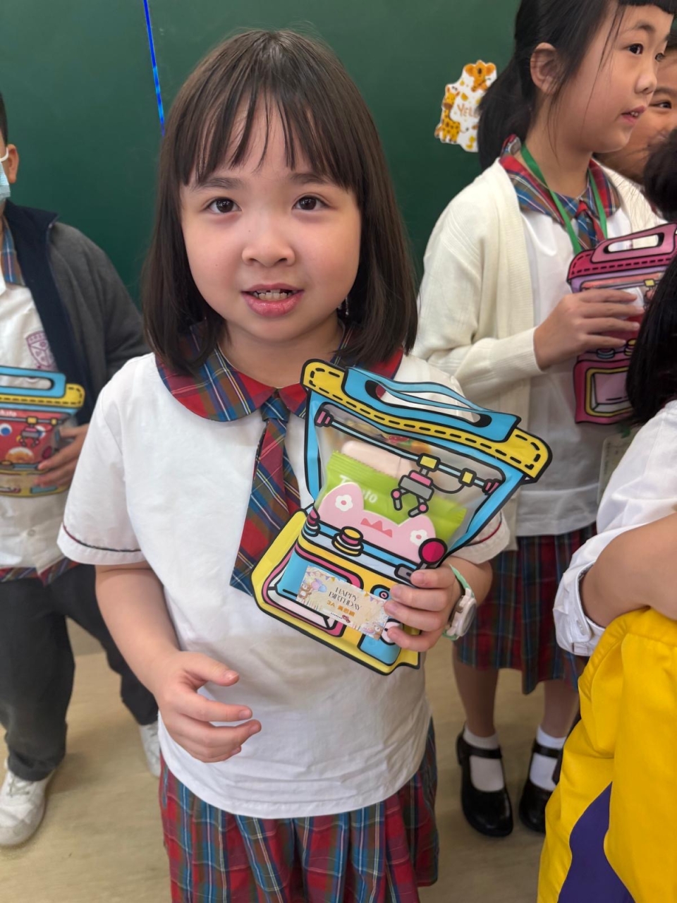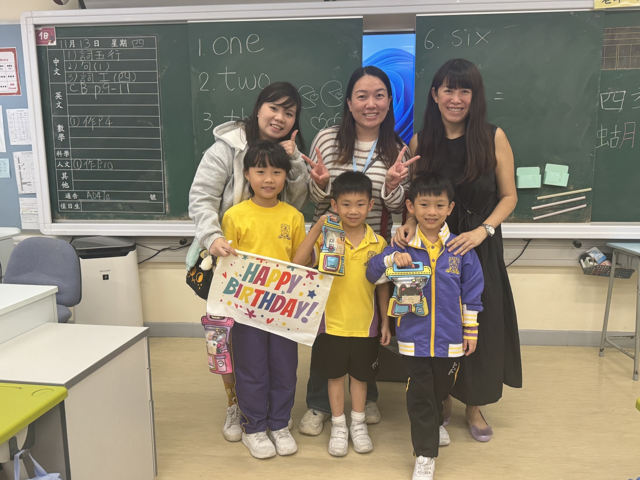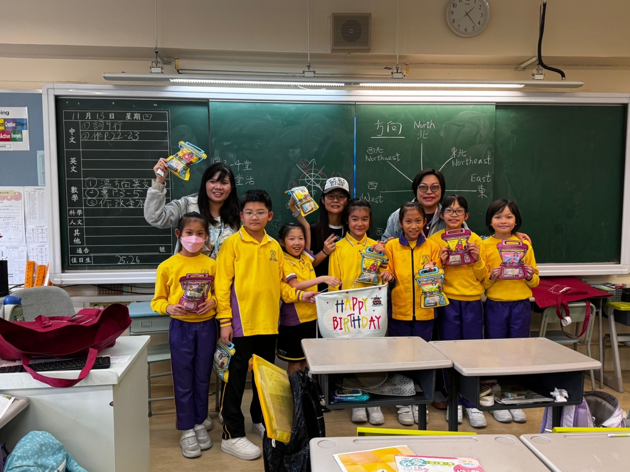 月生日的學生慶祝生日。家長義工協助下