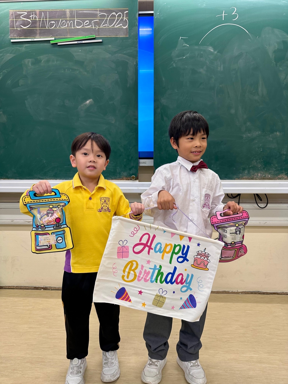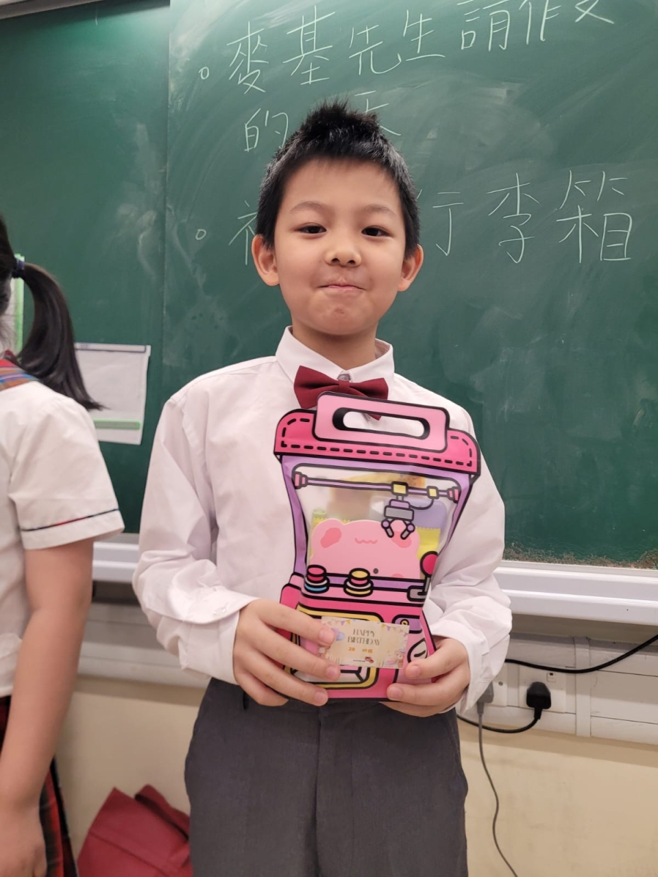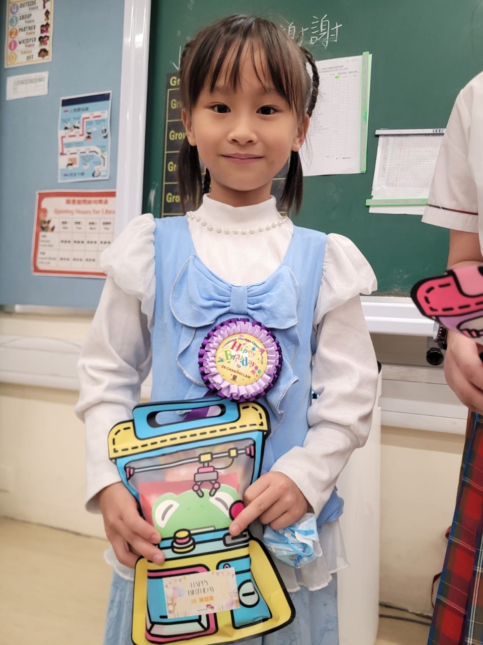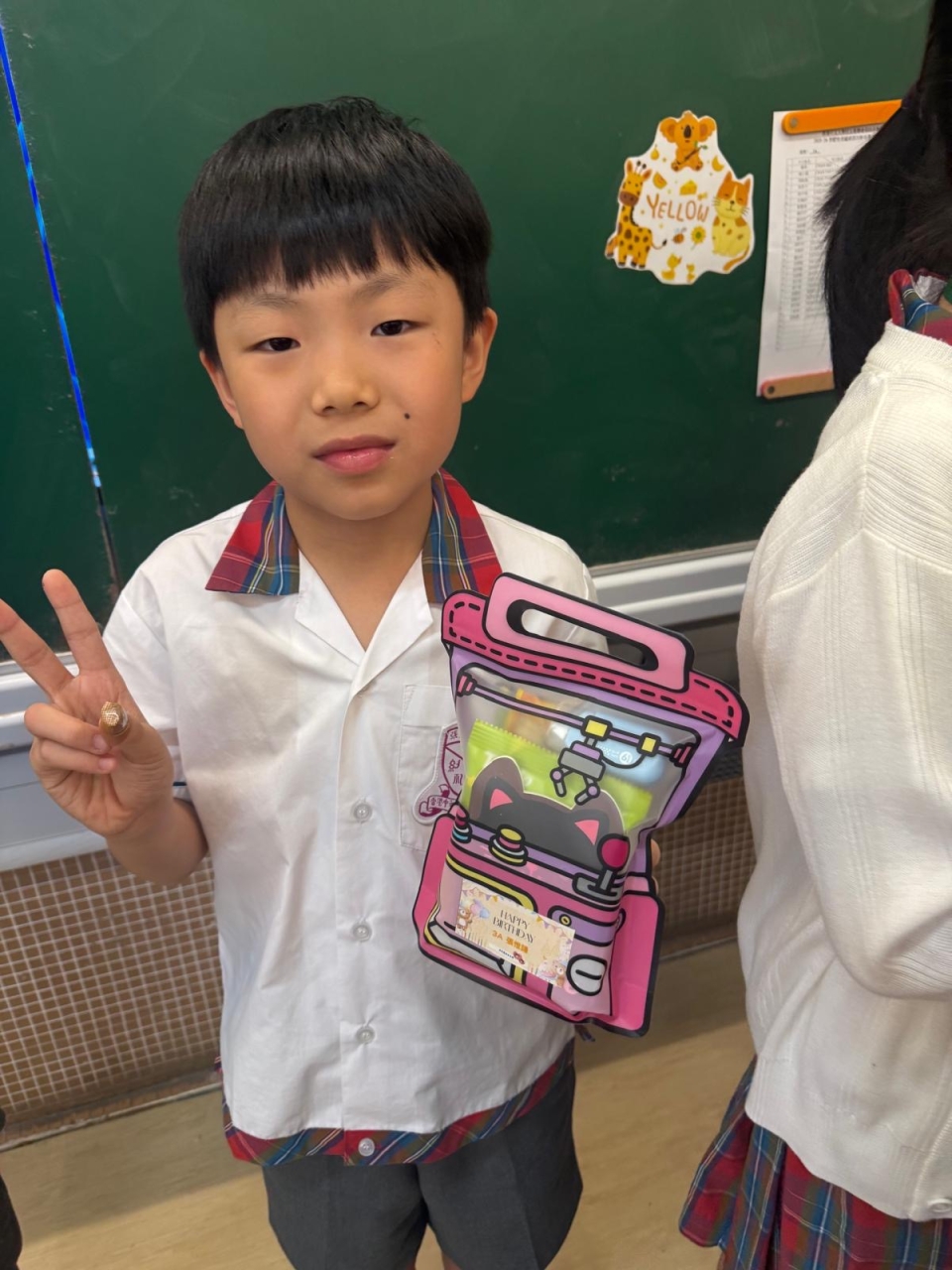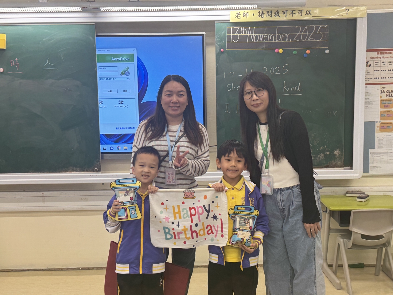 月生日的學生慶祝生日。家長義工協助下