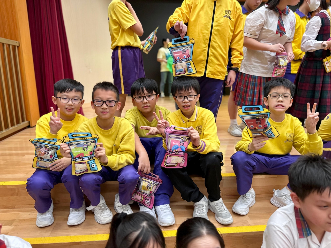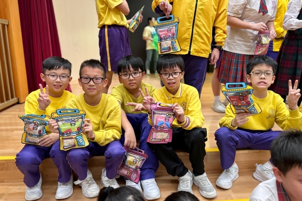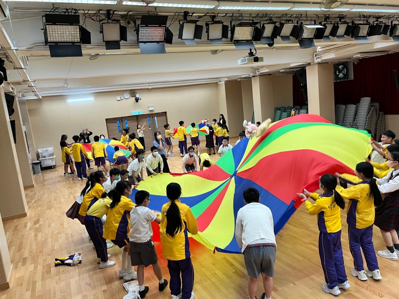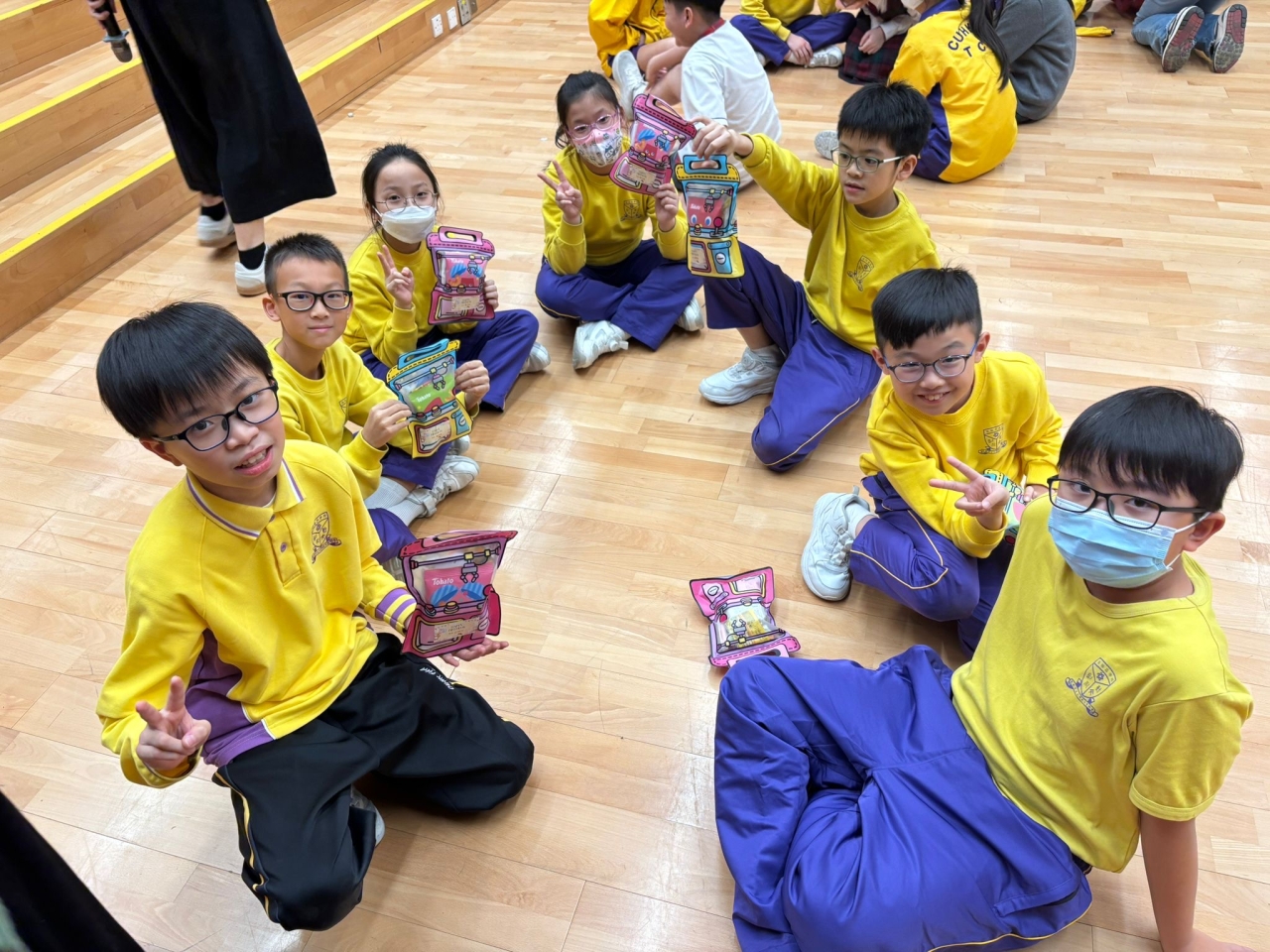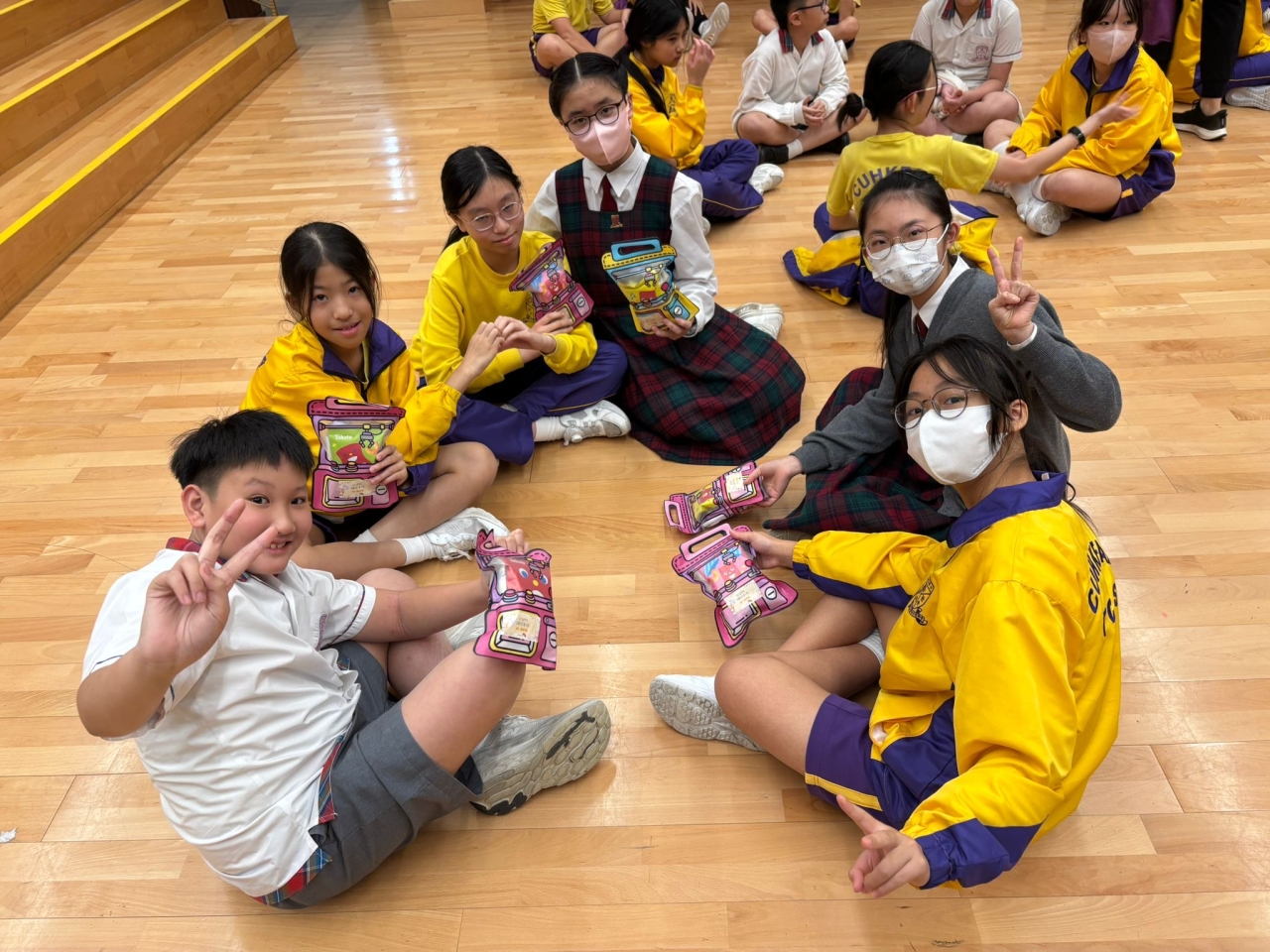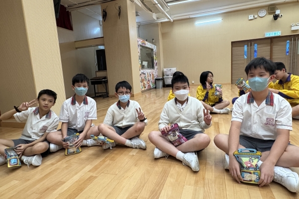 的學生於禮堂進行集體活動,氣氛熱烈。