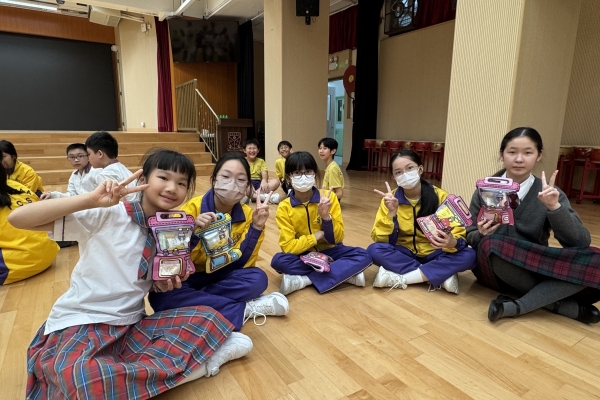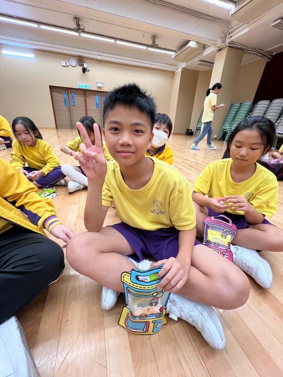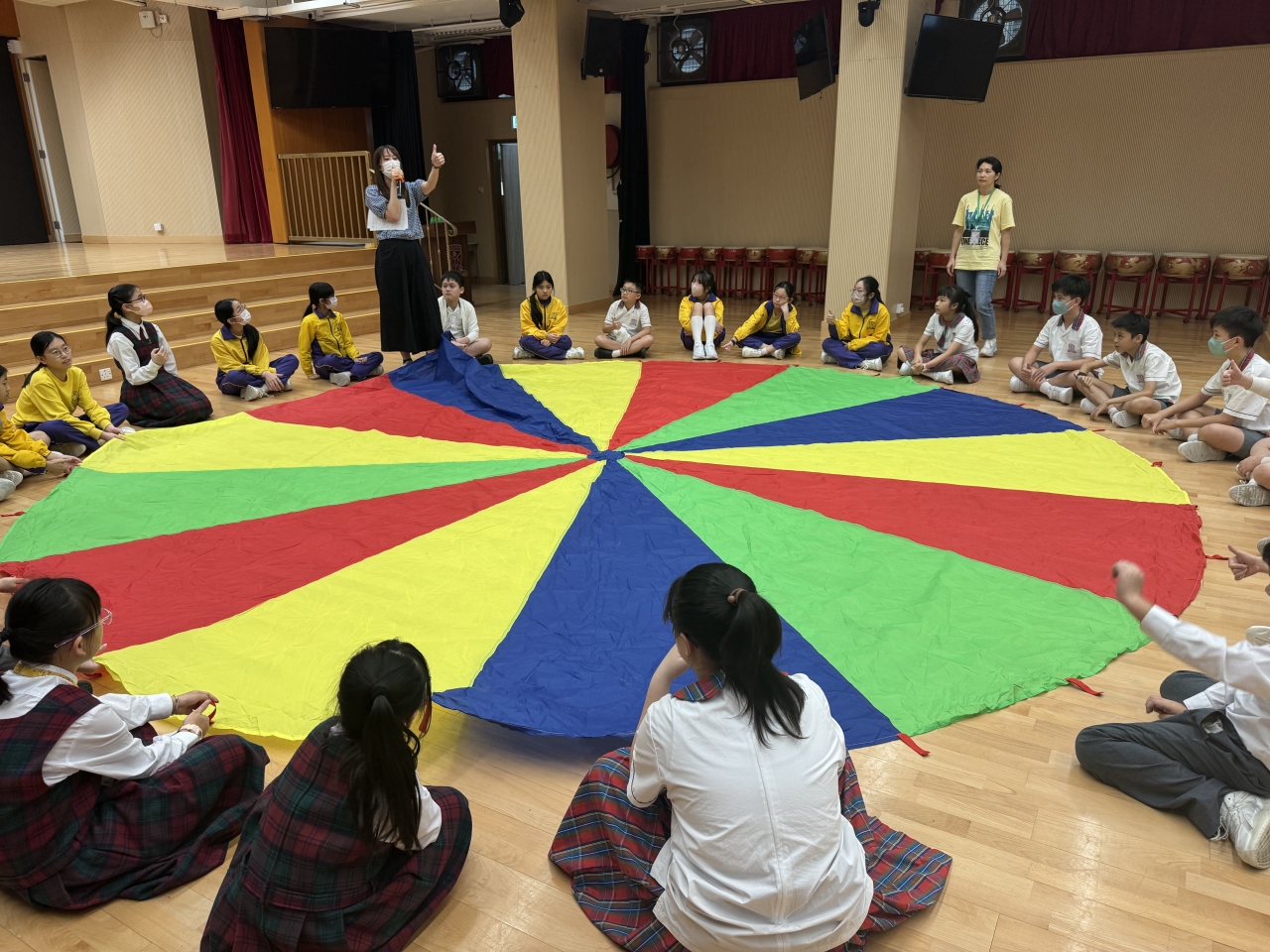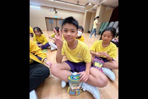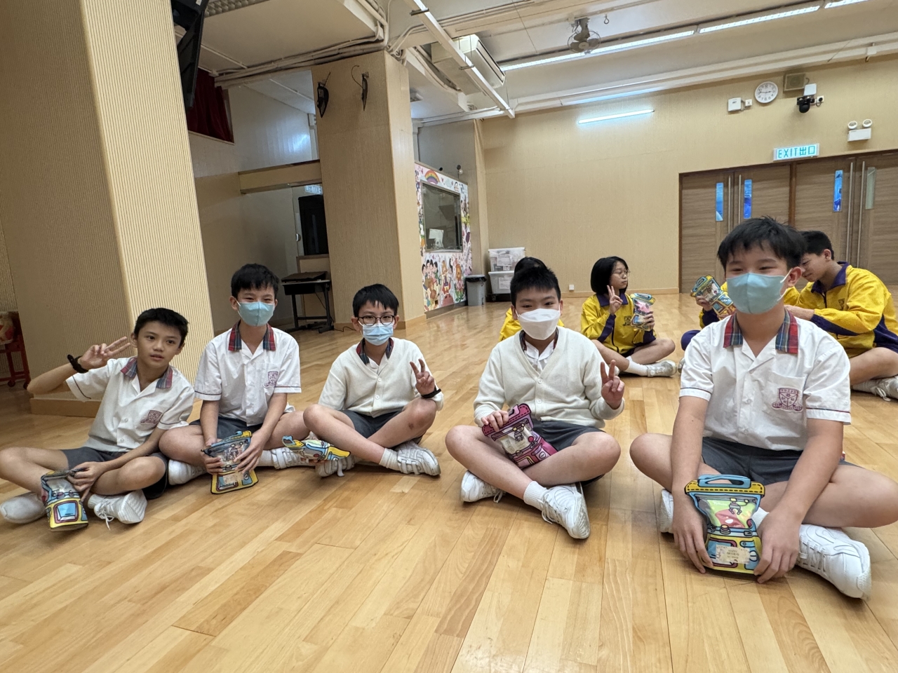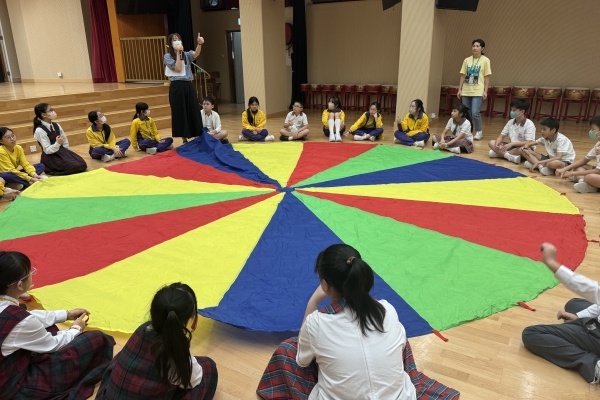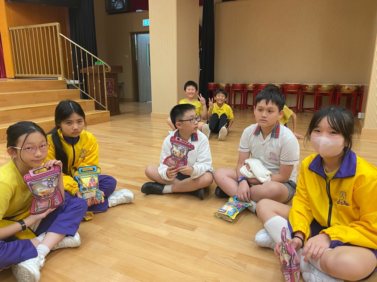 的學生於禮堂進行集體活動,氣氛熱烈。