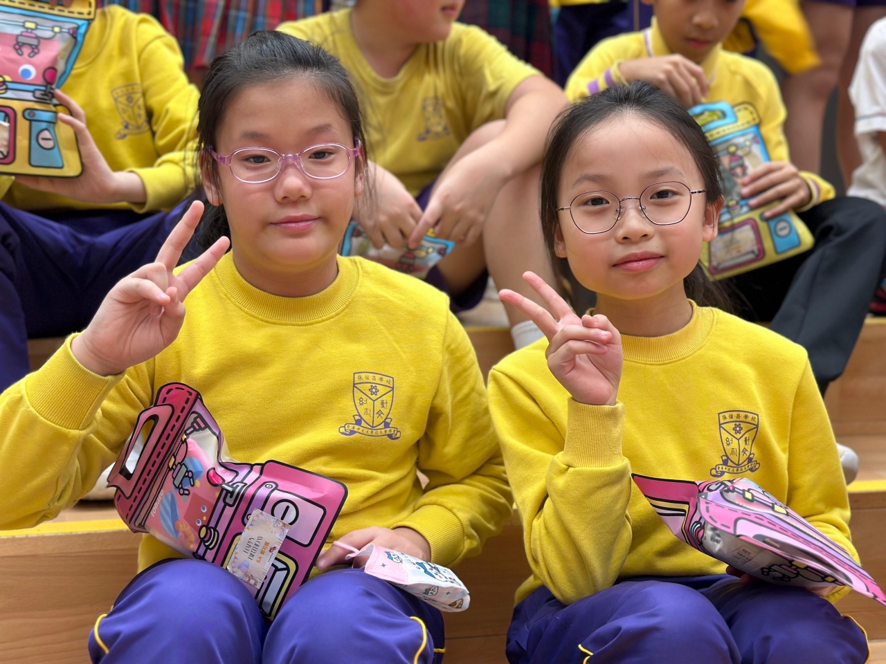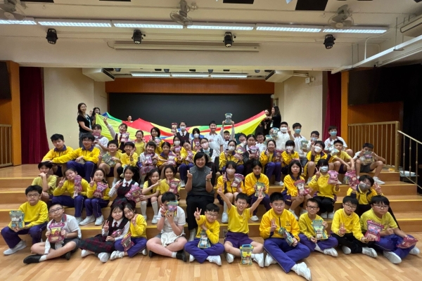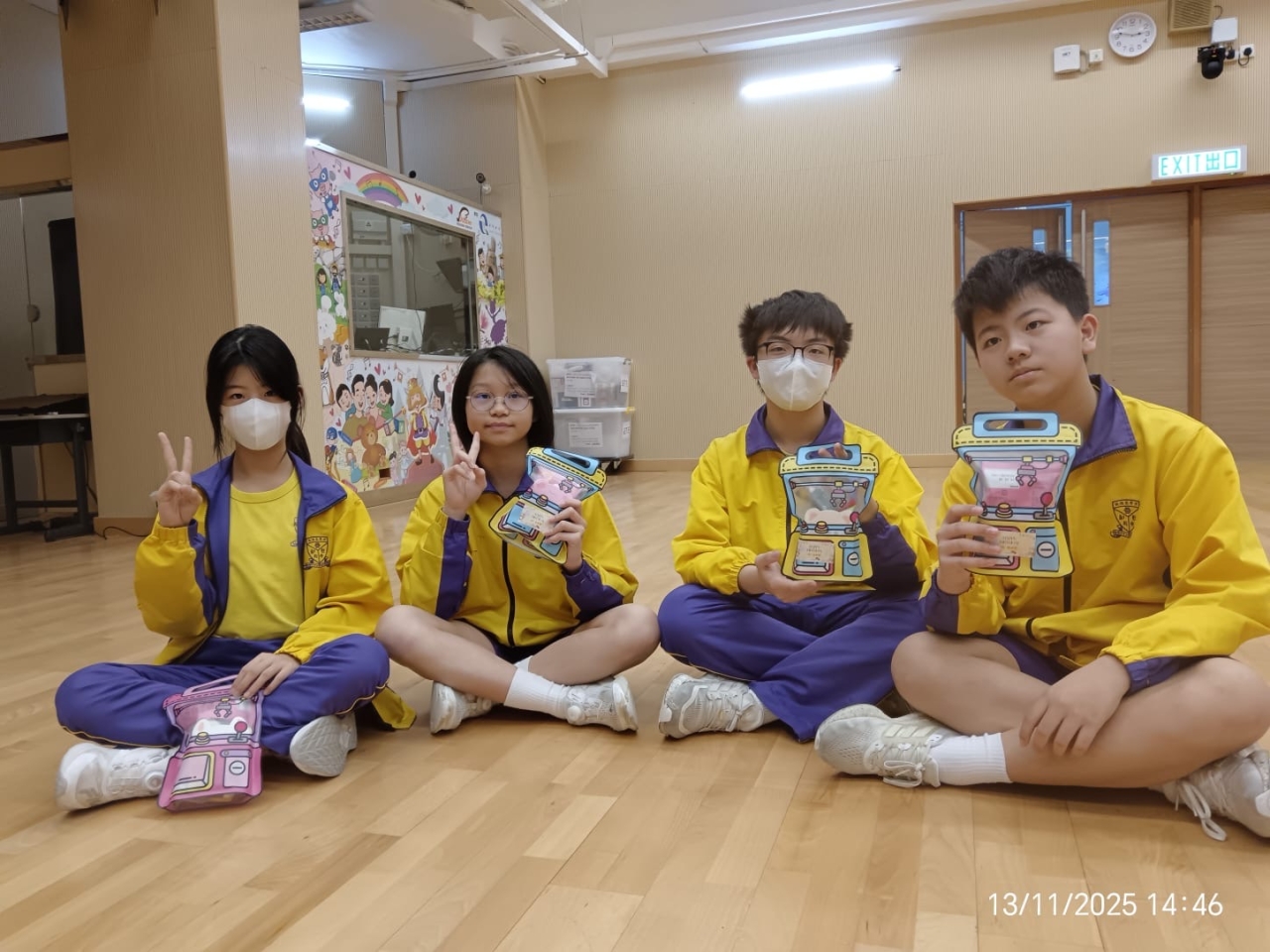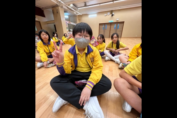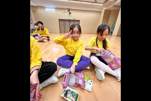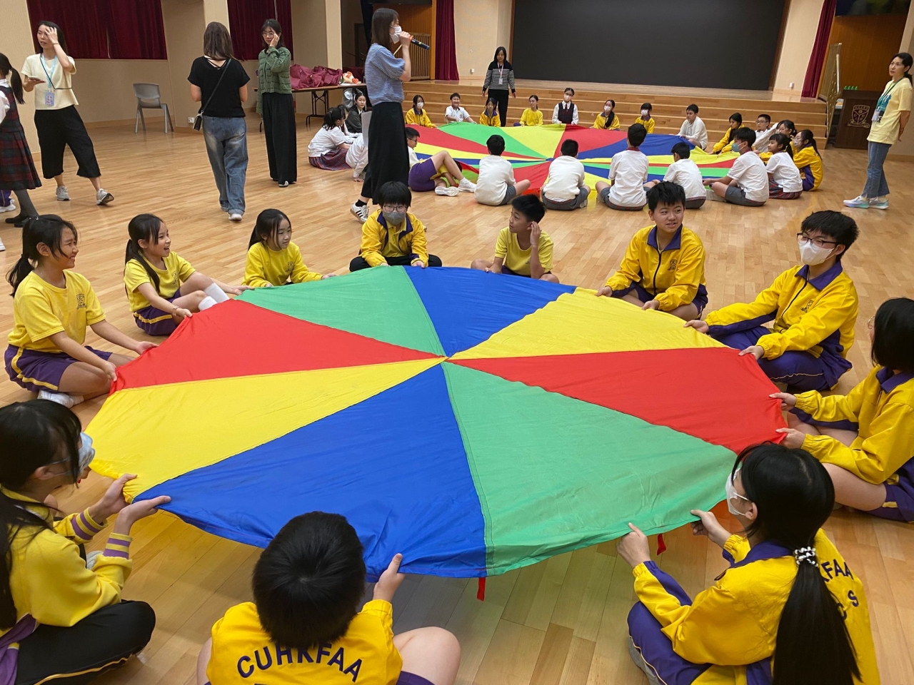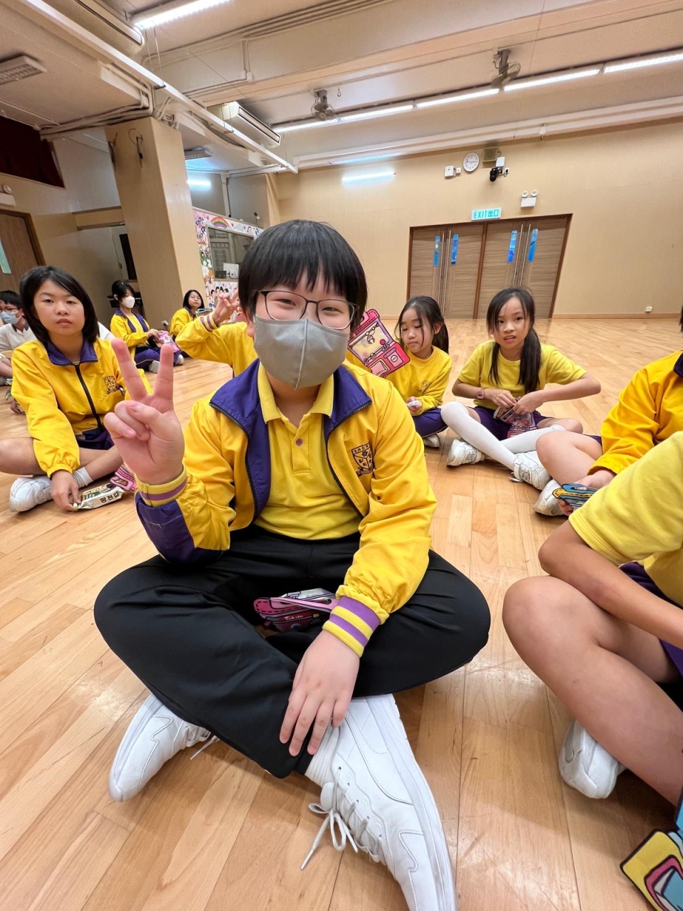 的學生於禮堂進行集體活動,氣氛熱烈。