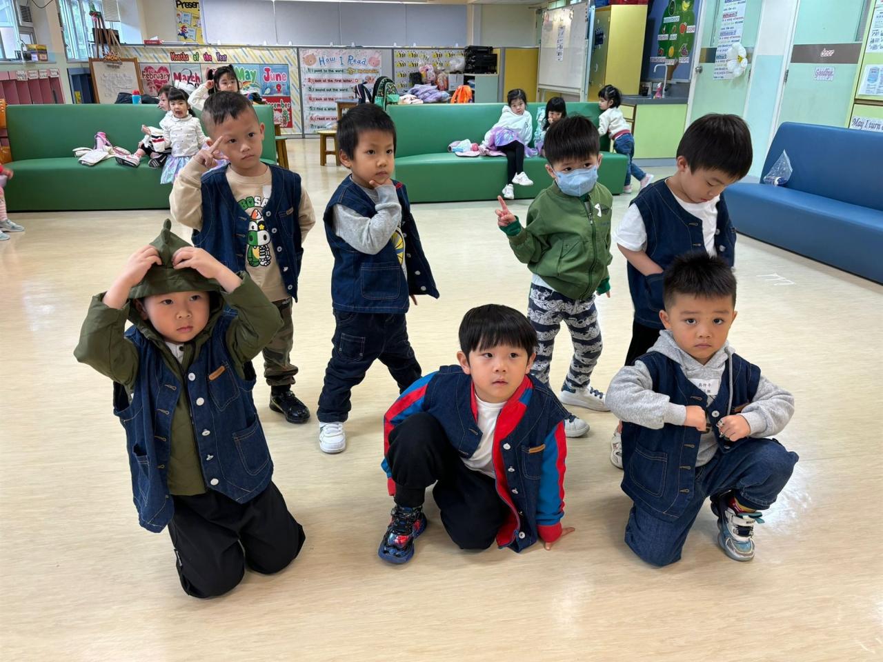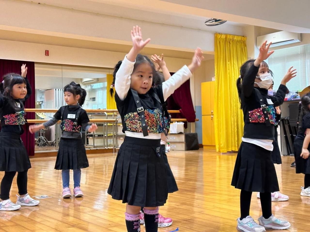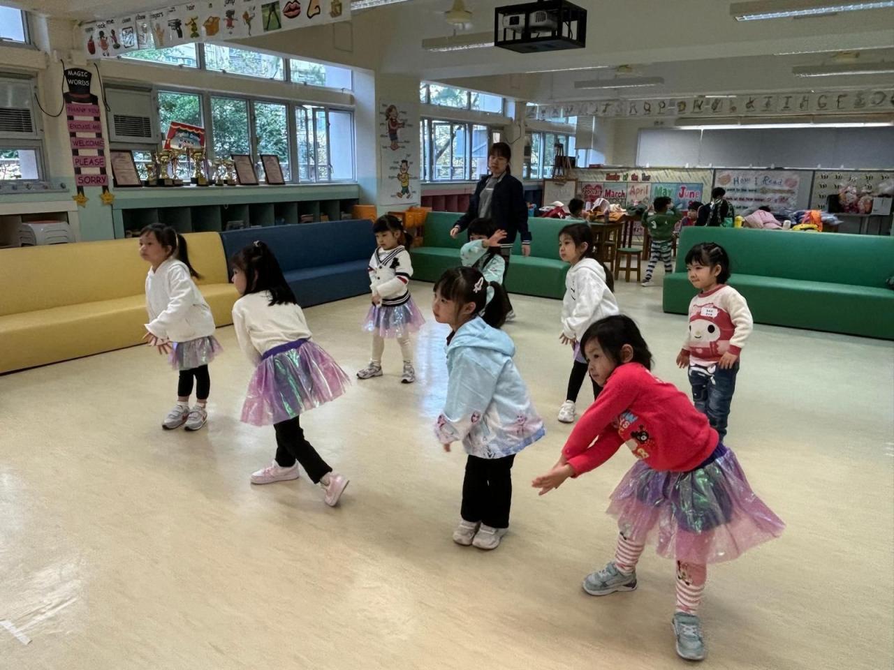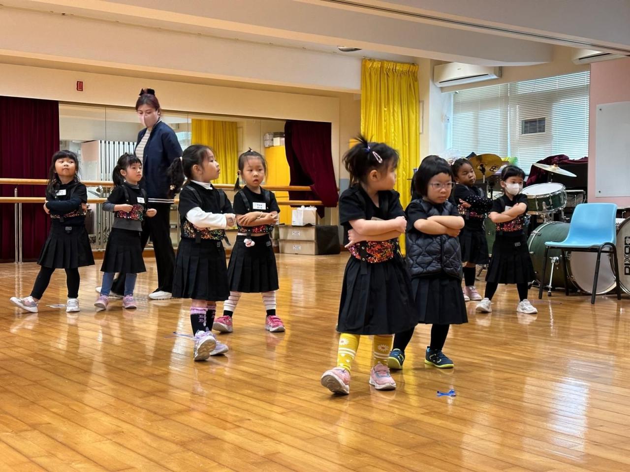 幼稚園小朋友進行K-pop 幼稚園工作坊 ,為成果展進行最後綵排。