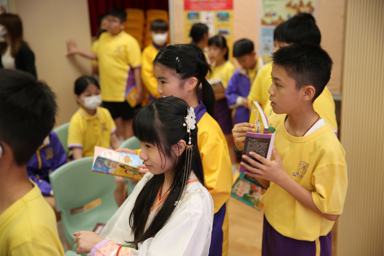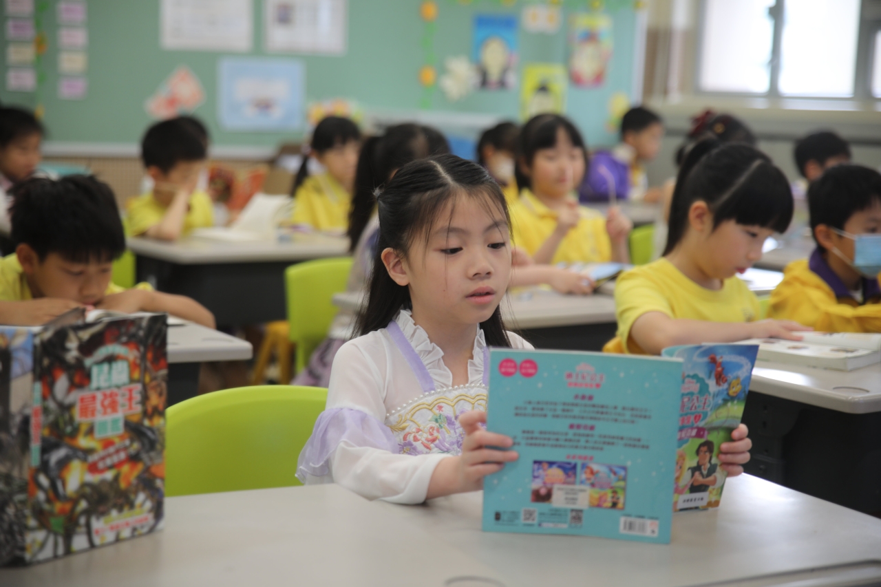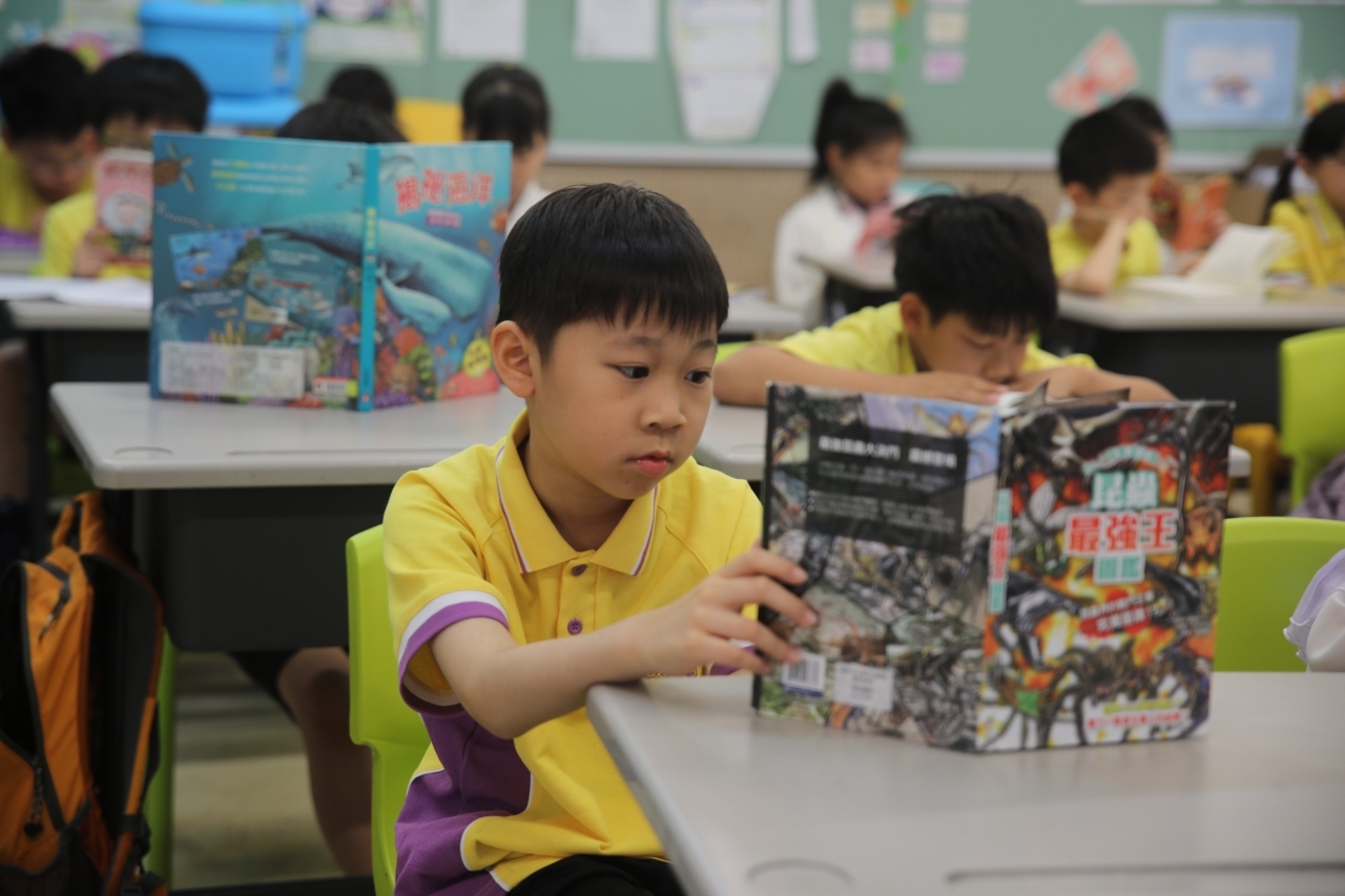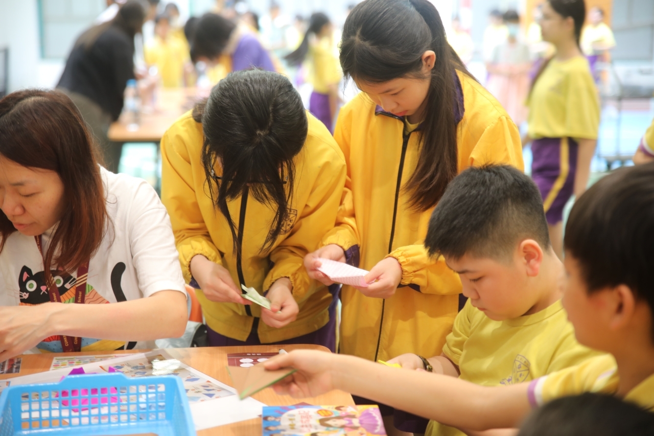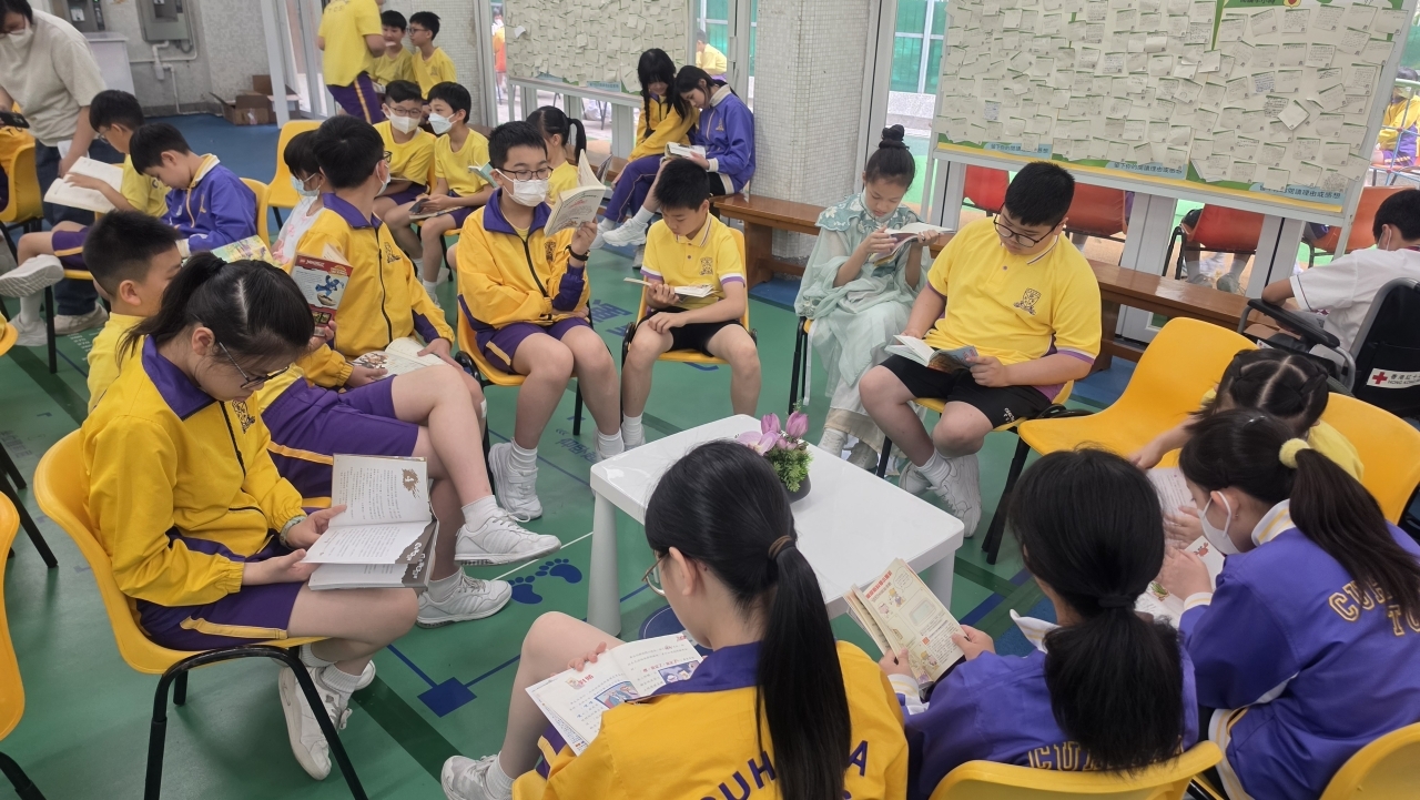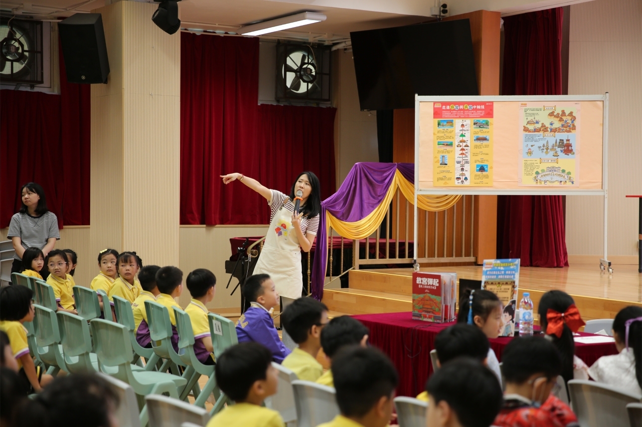 2026-04-28 閱讀半小時 同學們在早讀時段專心閱讀半小時,隨後在便利貼上寫下閱讀感想,再到雨操場張貼,和同學們分享閱讀的樂趣。 圖書大電視 學生們利用遊戲方式和同學分享書中事物,刺激又好玩。 漂書活動 早前,學校向家長們募捐圖書進行漂書活動,很多學生都在活動中尋得心頭好,將圖書帶回家閱讀。 攤位遊戲 配合《跟着皇帝遊故宮》的主題,學校準備了不同種類的攤位遊戲供學生們體驗,既有不同科目的遊戲,也有摺紙活動,活動多元化,學生們也玩得盡興。 閱讀講座 高年級邀請了《鬥嘴一班》的作者卓瑩姐姐到校為學生們分享創作心得,學生們聽得津津有味,講座後更設有作者簽書活動。低年級則邀請了新雅姐姐跟學生們分享《跟着皇帝遊故宮》的故事。
