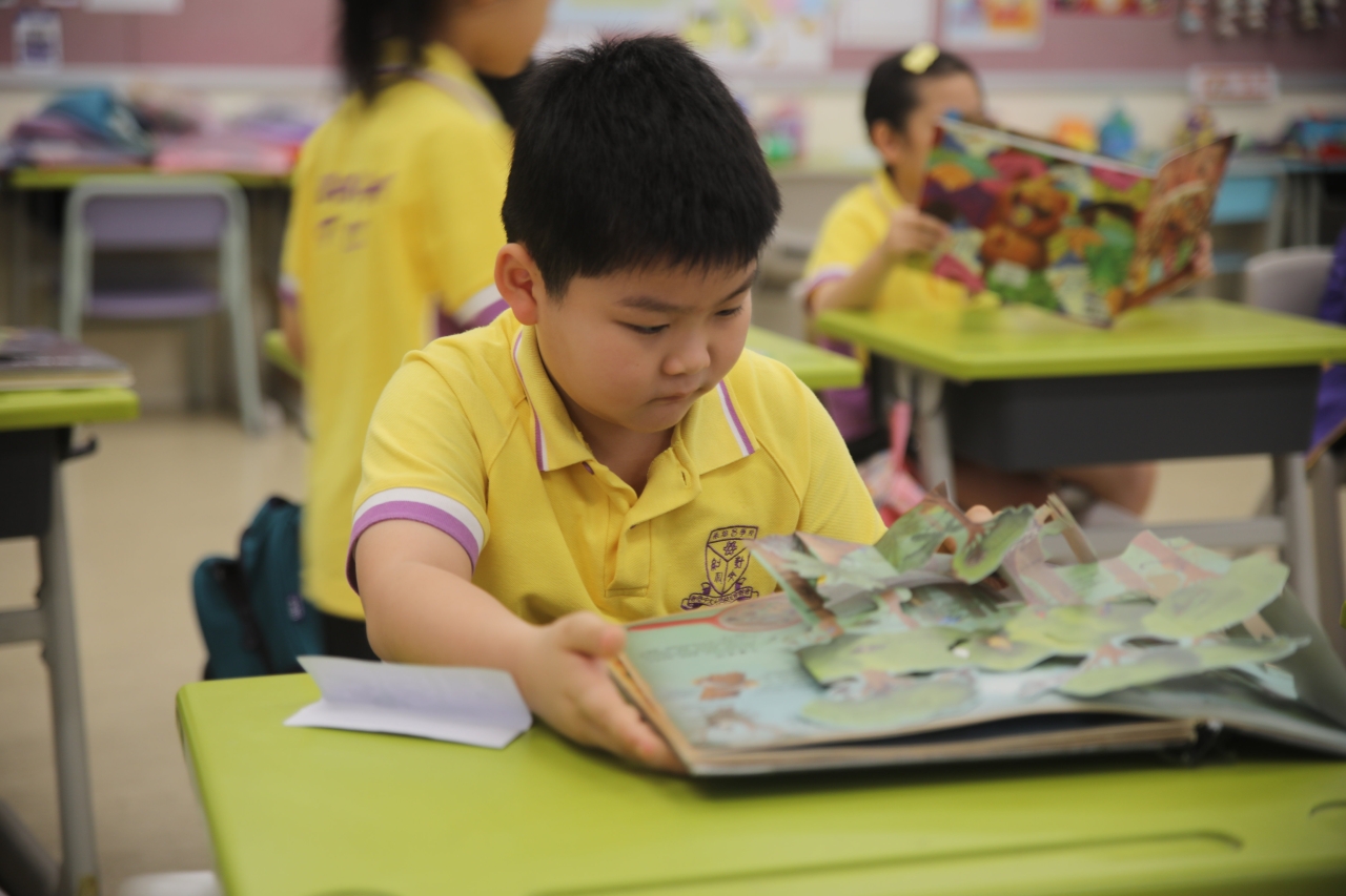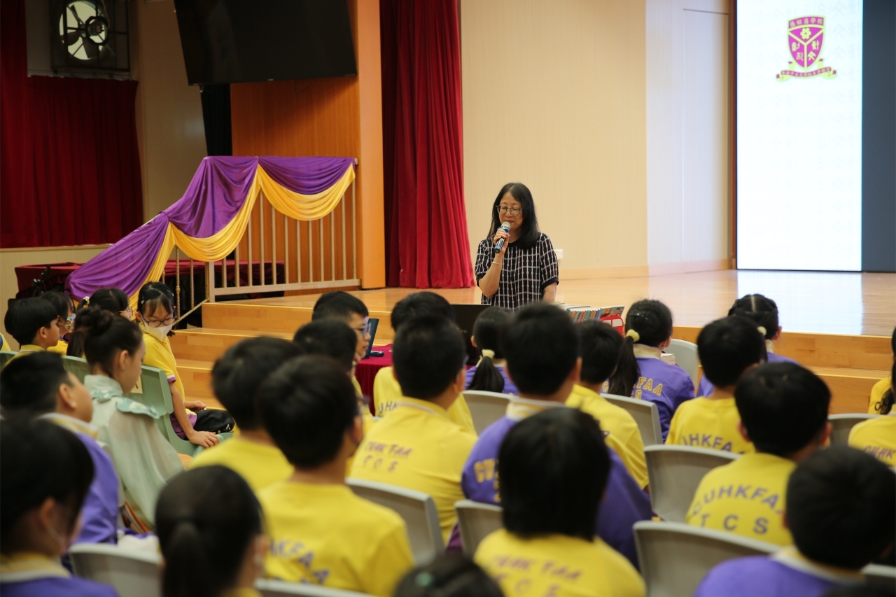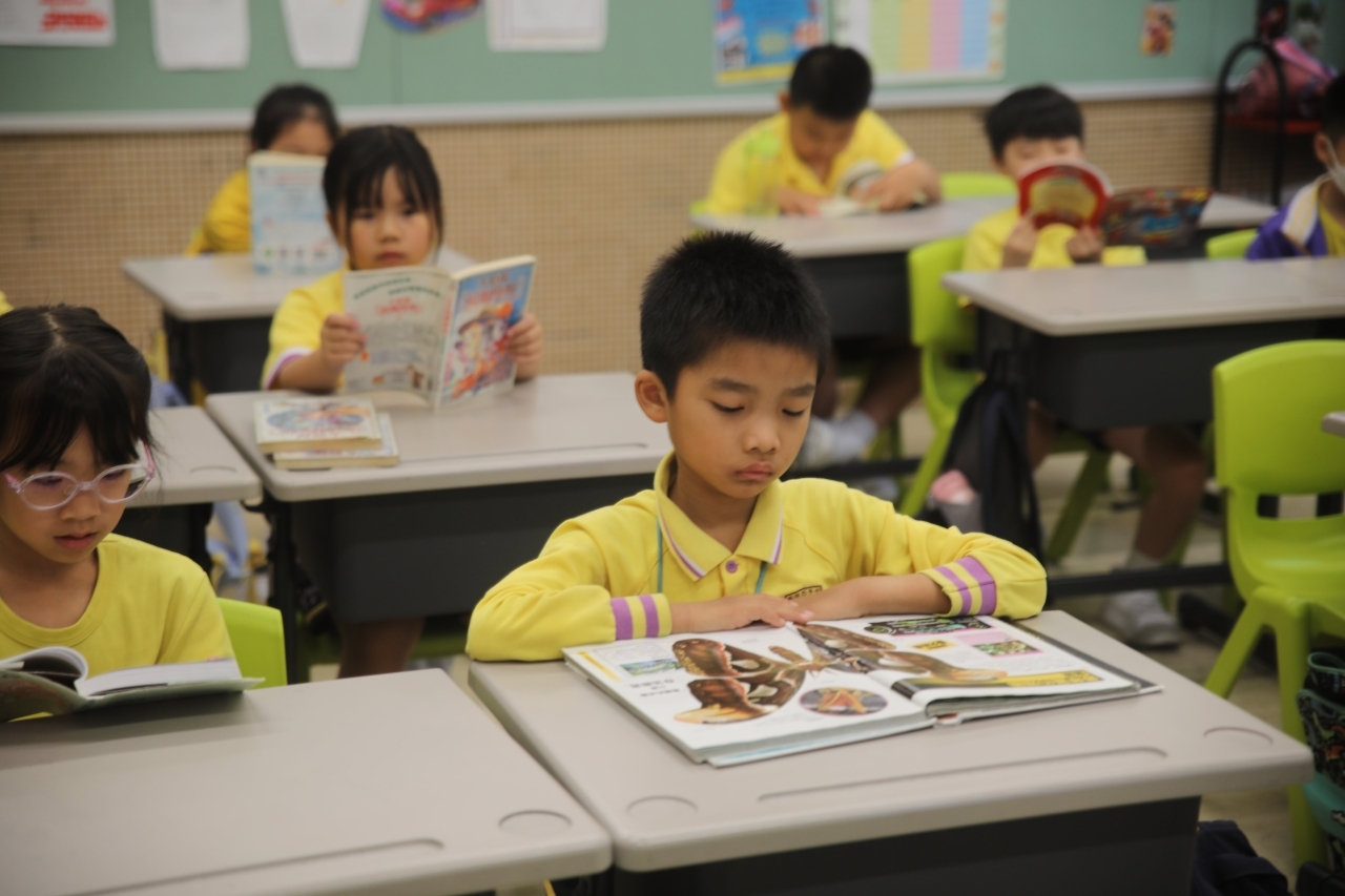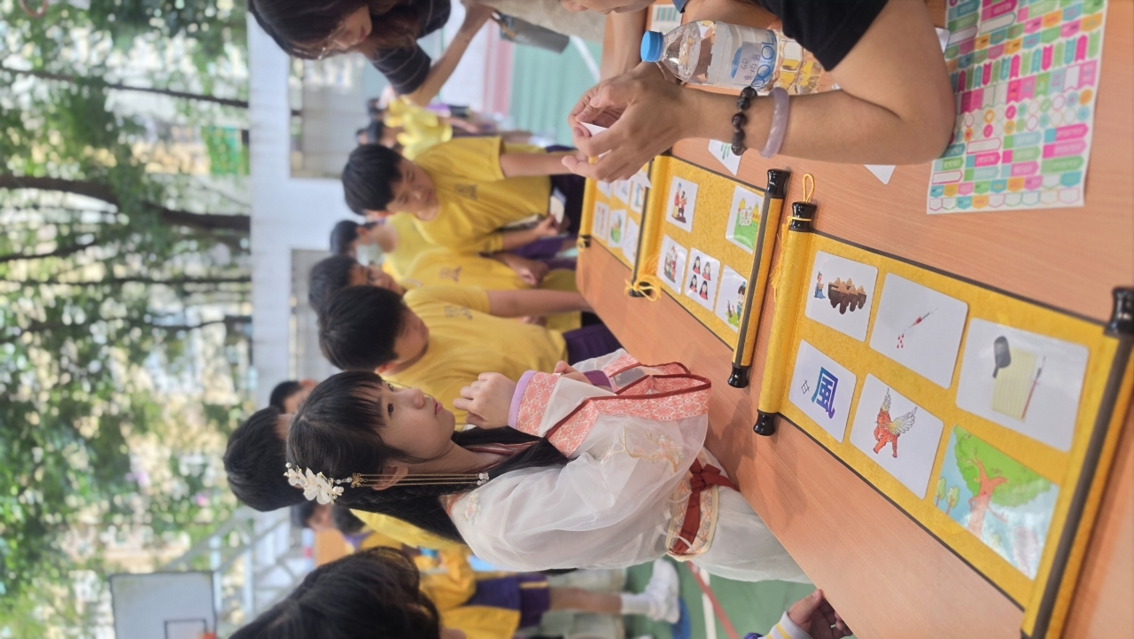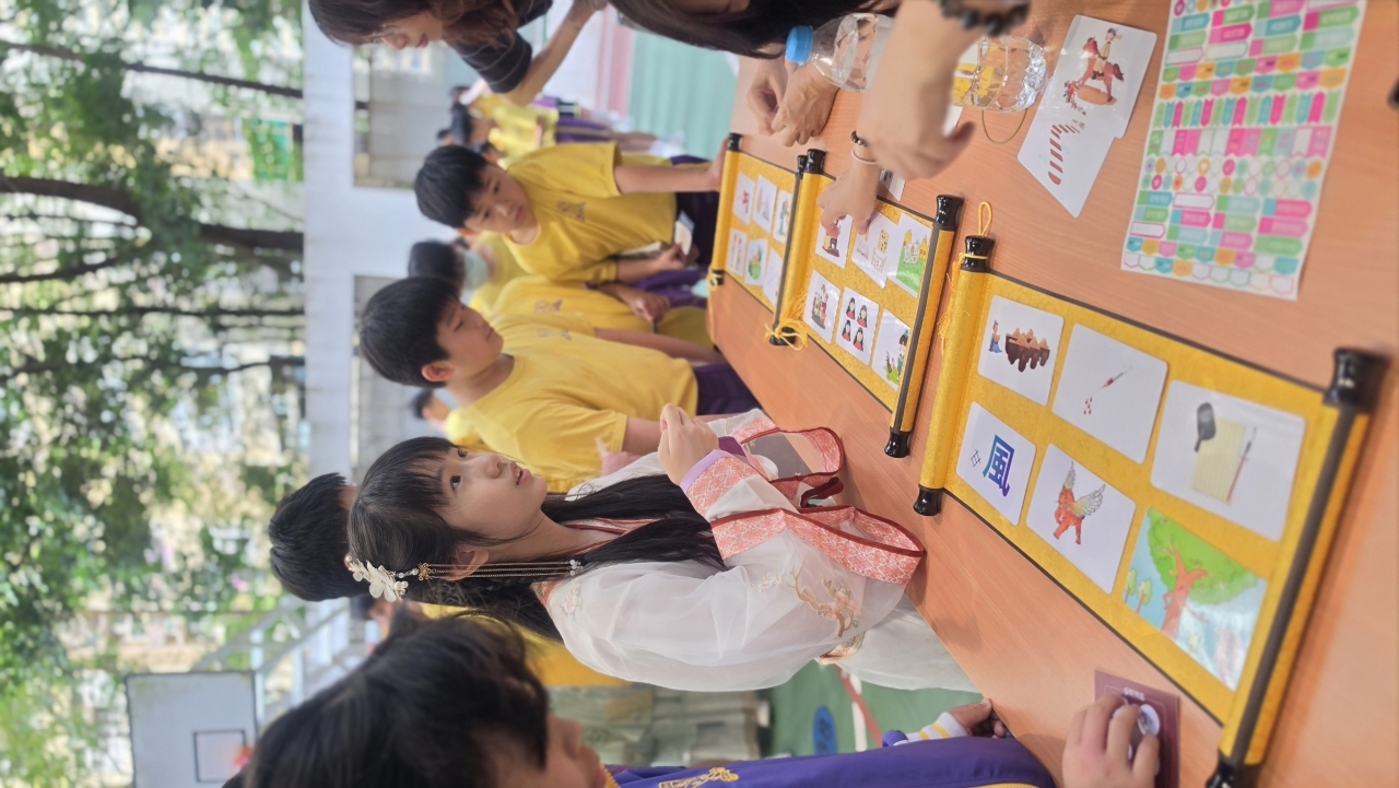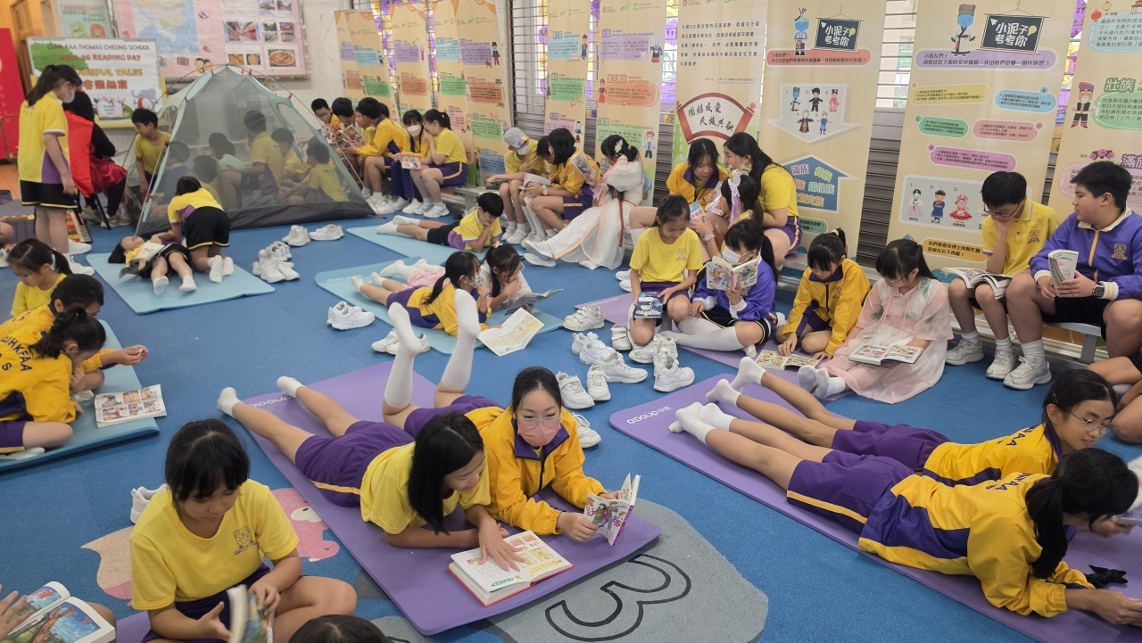 2026-04-28 閱讀半小時 同學們在早讀時段專心閱讀半小時,隨後在便利貼上寫下閱讀感想,再到雨操場張貼,和同學們分享閱讀的樂趣。 圖書大電視 學生們利用遊戲方式和同學分享書中事物,刺激又好玩。 漂書活動 早前,學校向家長們募捐圖書進行漂書活動,很多學生都在活動中尋得心頭好,將圖書帶回家閱讀。 攤位遊戲 配合《跟着皇帝遊故宮》的主題,學校準備了不同種類的攤位遊戲供學生們體驗,既有不同科目的遊戲,也有摺紙活動,活動多元化,學生們也玩得盡興。 閱讀講座 高年級邀請了《鬥嘴一班》的作者卓瑩姐姐到校為學生們分享創作心得,學生們聽得津津有味,講座後更設有作者簽書活動。低年級則邀請了新雅姐姐跟學生們分享《跟着皇帝遊故宮》的故事。