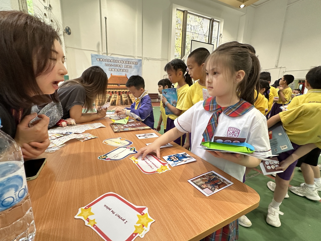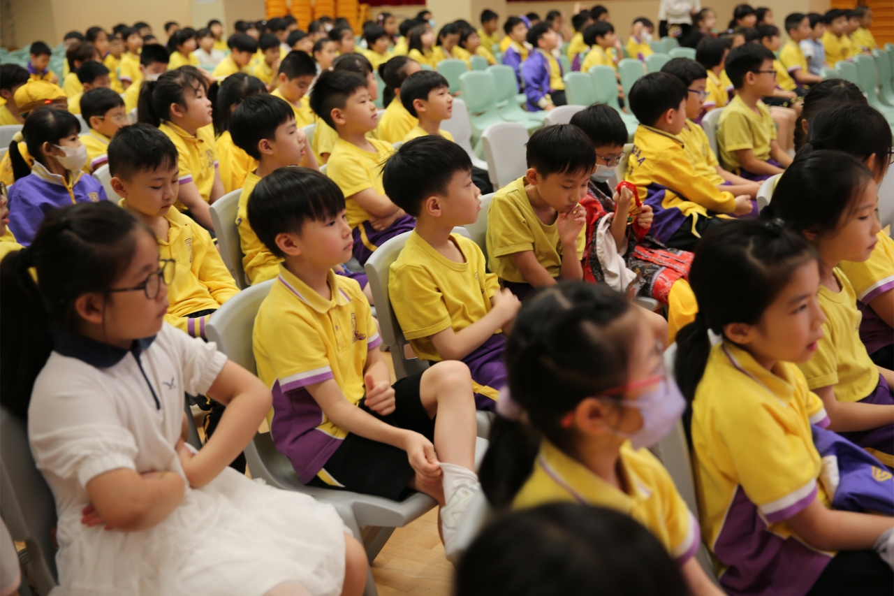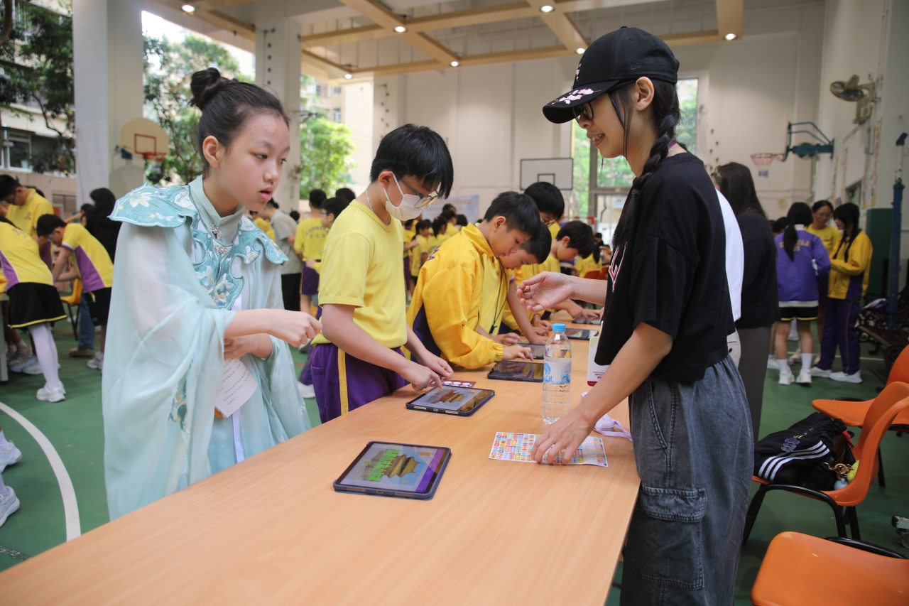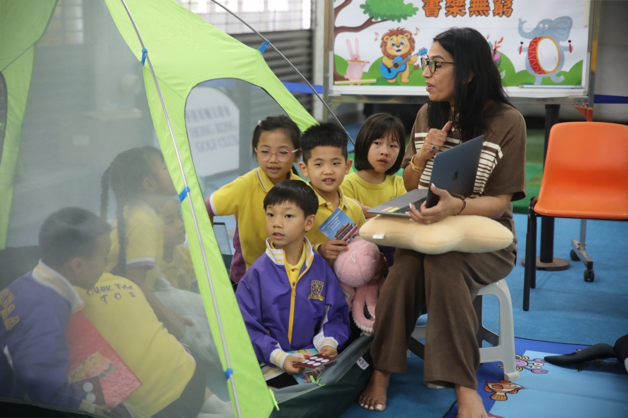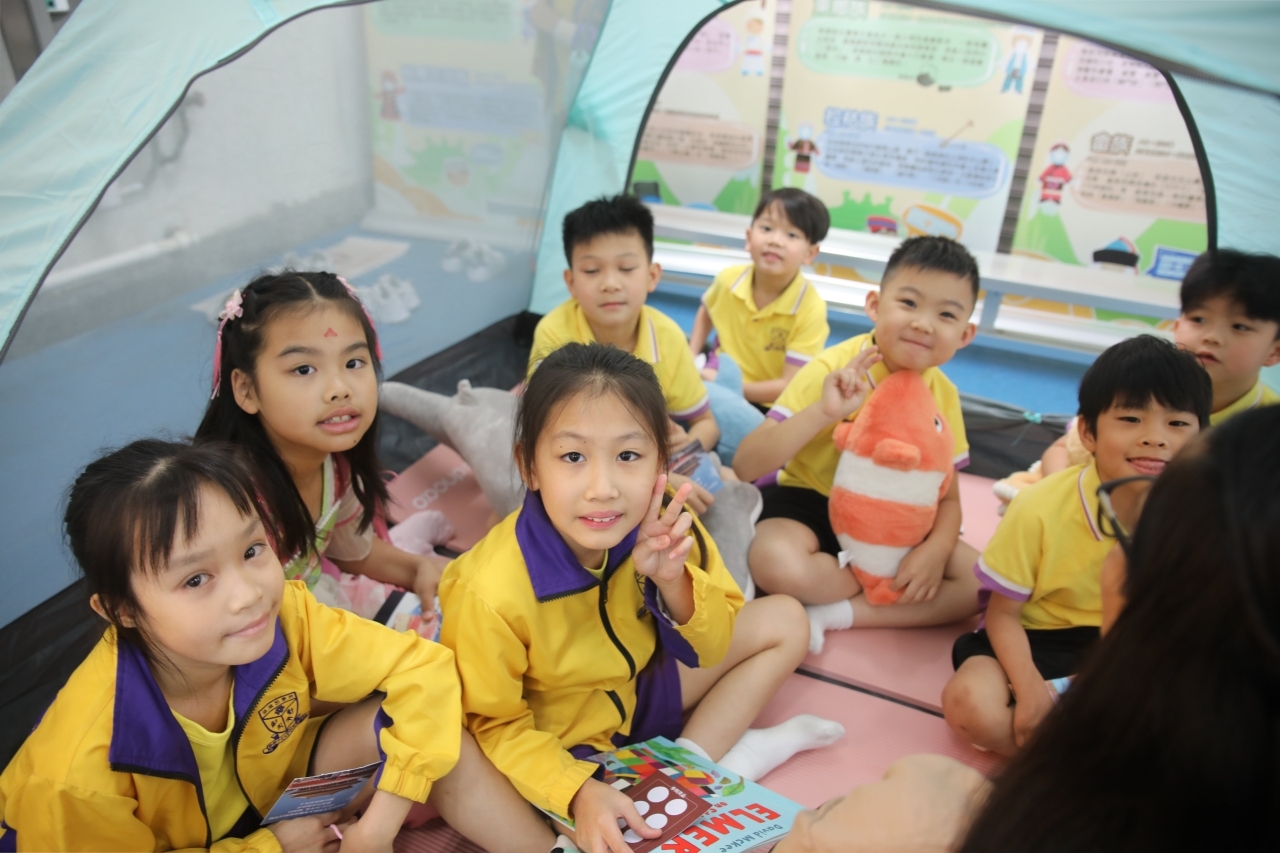 2026-04-28 閱讀半小時 同學們在早讀時段專心閱讀半小時,隨後在便利貼上寫下閱讀感想,再到雨操場張貼,和同學們分享閱讀的樂趣。 圖書大電視 學生們利用遊戲方式和同學分享書中事物,刺激又好玩。 漂書活動 早前,學校向家長們募捐圖書進行漂書活動,很多學生都在活動中尋得心頭好,將圖書帶回家閱讀。 攤位遊戲 配合《跟着皇帝遊故宮》的主題,學校準備了不同種類的攤位遊戲供學生們體驗,既有不同科目的遊戲,也有摺紙活動,活動多元化,學生們也玩得盡興。 閱讀講座 高年級邀請了《鬥嘴一班》的作者卓瑩姐姐到校為學生們分享創作心得,學生們聽得津津有味,講座後更設有作者簽書活動。低年級則邀請了新雅姐姐跟學生們分享《跟着皇帝遊故宮》的故事。
