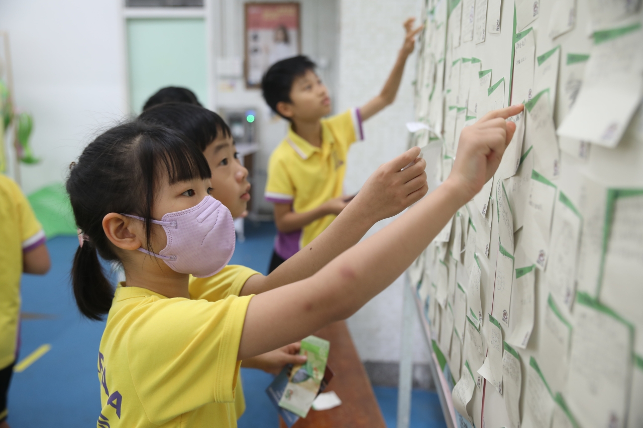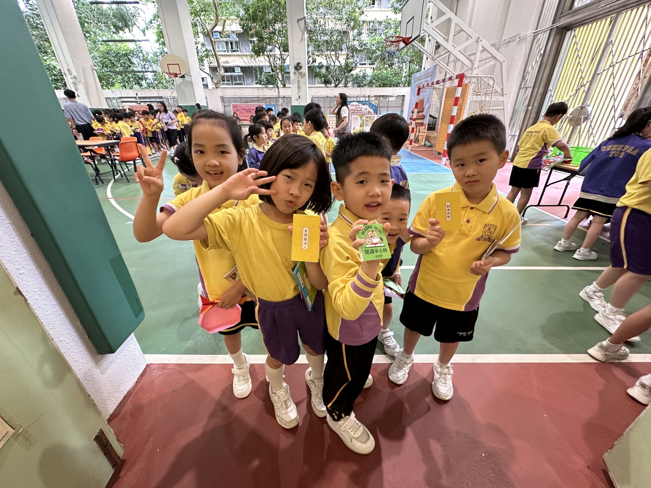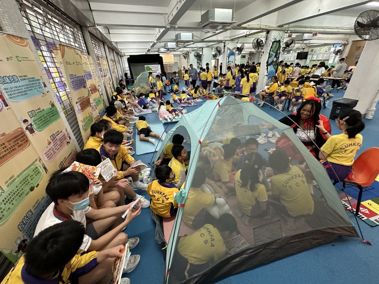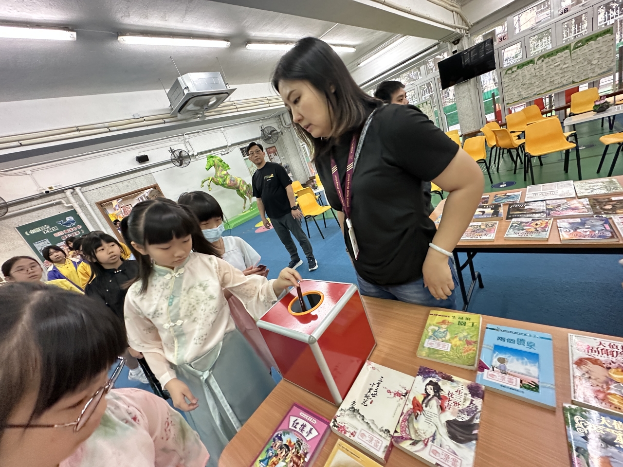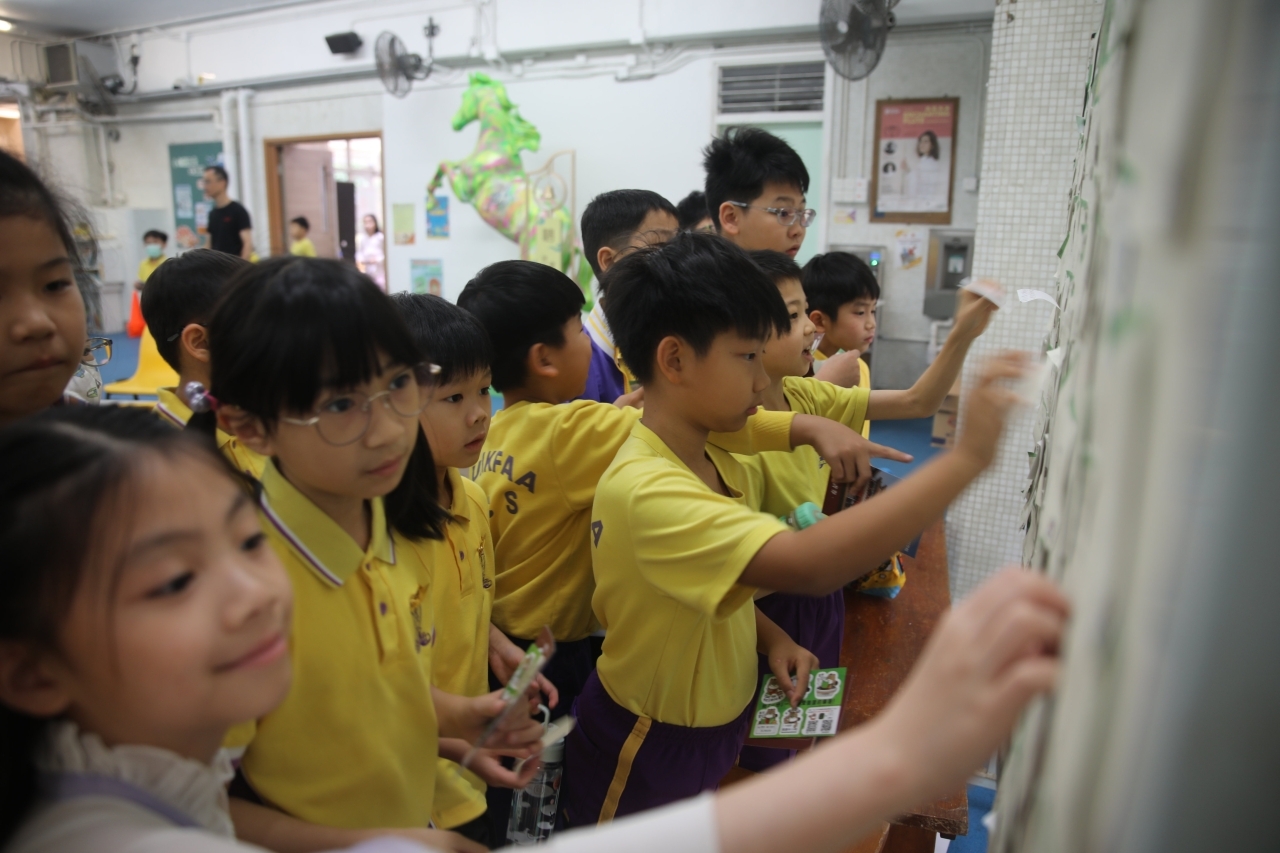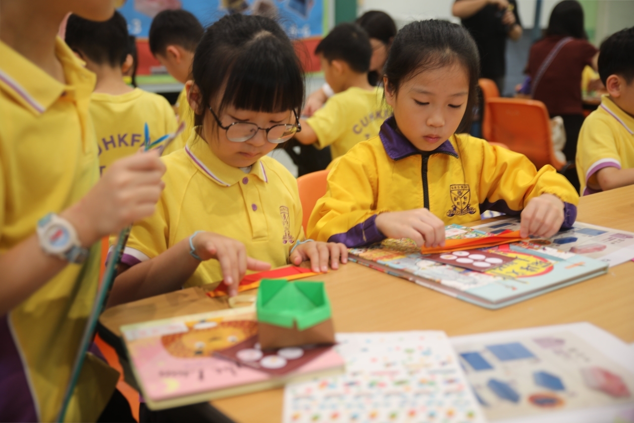 2026-04-28 閱讀半小時 同學們在早讀時段專心閱讀半小時,隨後在便利貼上寫下閱讀感想,再到雨操場張貼,和同學們分享閱讀的樂趣。 圖書大電視 學生們利用遊戲方式和同學分享書中事物,刺激又好玩。 漂書活動 早前,學校向家長們募捐圖書進行漂書活動,很多學生都在活動中尋得心頭好,將圖書帶回家閱讀。 攤位遊戲 配合《跟着皇帝遊故宮》的主題,學校準備了不同種類的攤位遊戲供學生們體驗,既有不同科目的遊戲,也有摺紙活動,活動多元化,學生們也玩得盡興。 閱讀講座 高年級邀請了《鬥嘴一班》的作者卓瑩姐姐到校為學生們分享創作心得,學生們聽得津津有味,講座後更設有作者簽書活動。低年級則邀請了新雅姐姐跟學生們分享《跟着皇帝遊故宮》的故事。