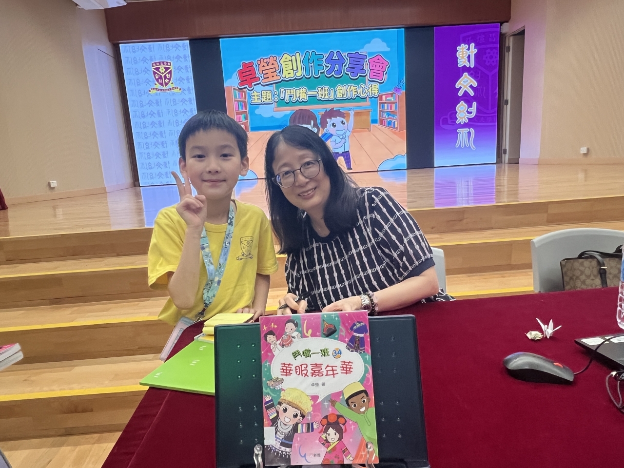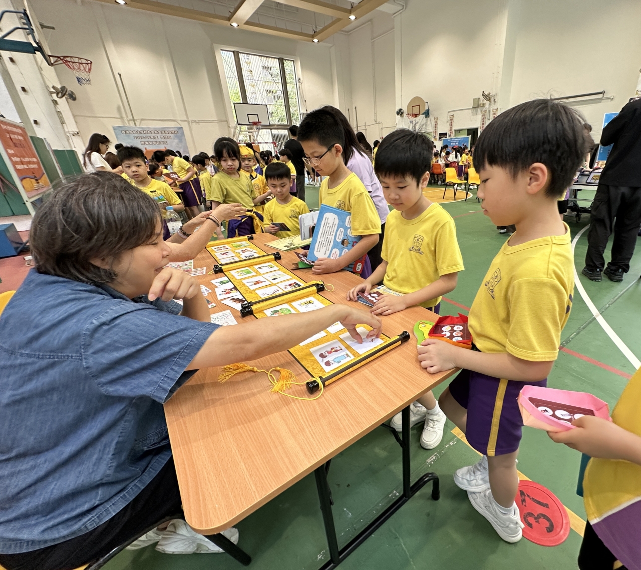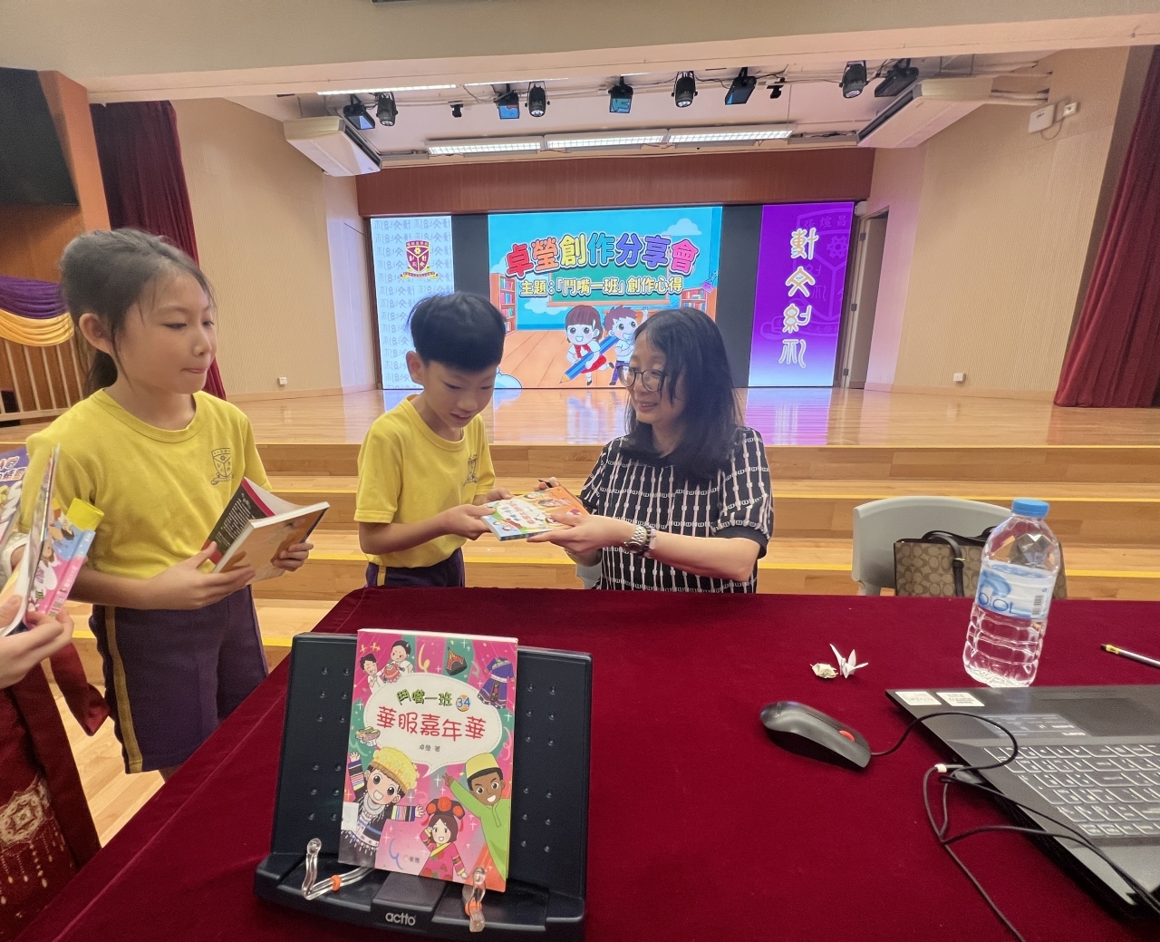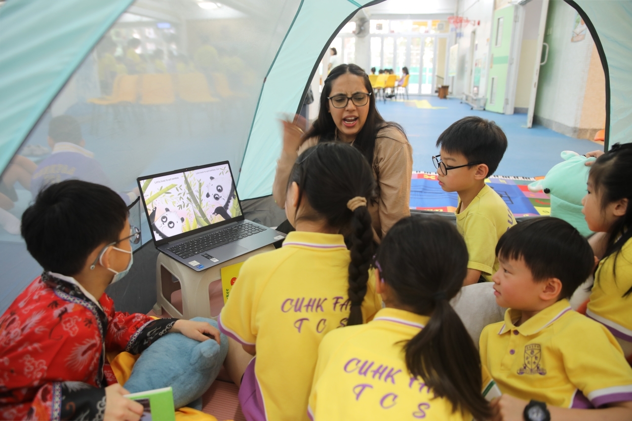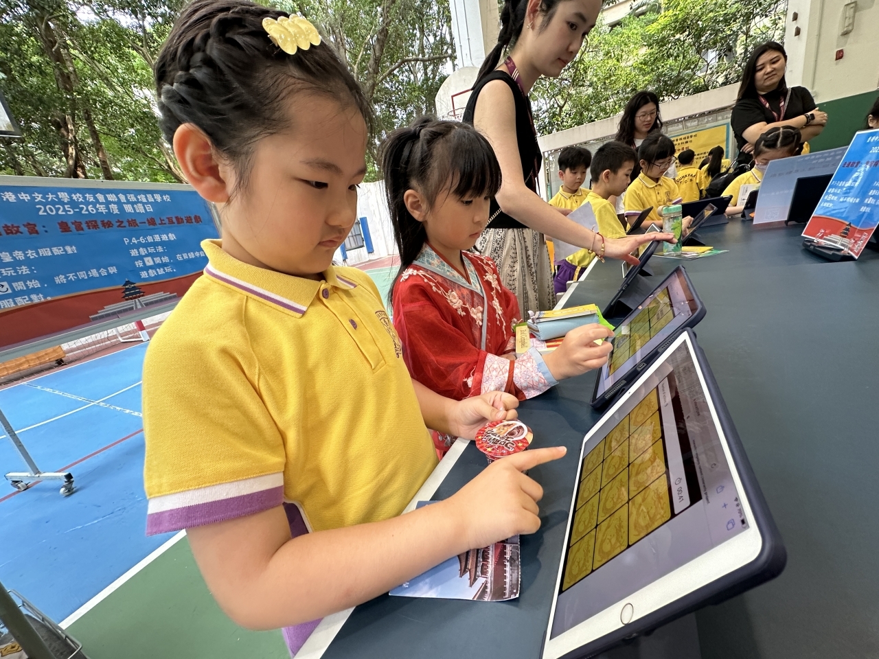 2026-04-28 閱讀半小時 同學們在早讀時段專心閱讀半小時,隨後在便利貼上寫下閱讀感想,再到雨操場張貼,和同學們分享閱讀的樂趣。 圖書大電視 學生們利用遊戲方式和同學分享書中事物,刺激又好玩。 漂書活動 早前,學校向家長們募捐圖書進行漂書活動,很多學生都在活動中尋得心頭好,將圖書帶回家閱讀。 攤位遊戲 配合《跟着皇帝遊故宮》的主題,學校準備了不同種類的攤位遊戲供學生們體驗,既有不同科目的遊戲,也有摺紙活動,活動多元化,學生們也玩得盡興。 閱讀講座 高年級邀請了《鬥嘴一班》的作者卓瑩姐姐到校為學生們分享創作心得,學生們聽得津津有味,講座後更設有作者簽書活動。低年級則邀請了新雅姐姐跟學生們分享《跟着皇帝遊故宮》的故事。