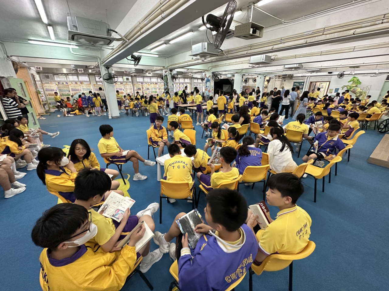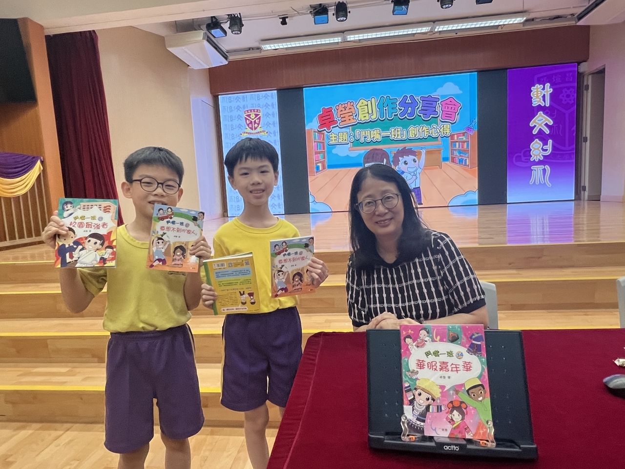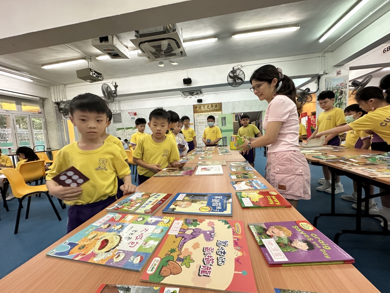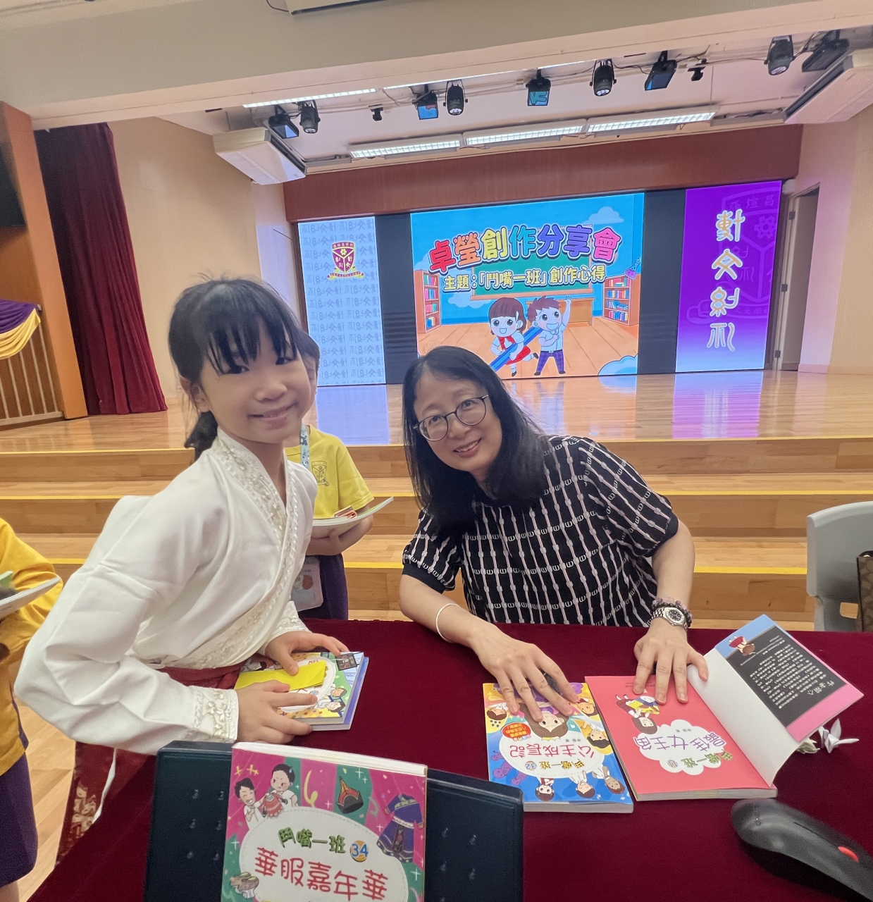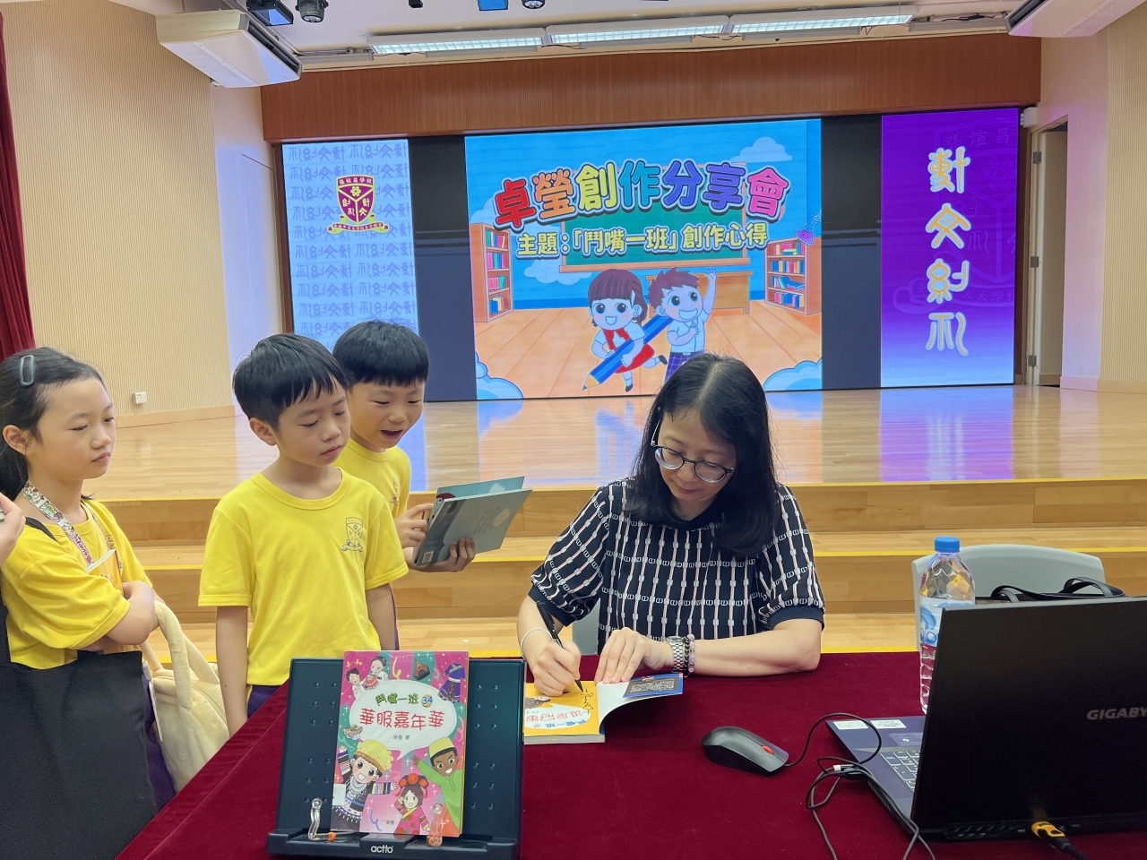 2026-04-28 閱讀半小時 同學們在早讀時段專心閱讀半小時,隨後在便利貼上寫下閱讀感想,再到雨操場張貼,和同學們分享閱讀的樂趣。 圖書大電視 學生們利用遊戲方式和同學分享書中事物,刺激又好玩。 漂書活動 早前,學校向家長們募捐圖書進行漂書活動,很多學生都在活動中尋得心頭好,將圖書帶回家閱讀。 攤位遊戲 配合《跟着皇帝遊故宮》的主題,學校準備了不同種類的攤位遊戲供學生們體驗,既有不同科目的遊戲,也有摺紙活動,活動多元化,學生們也玩得盡興。 閱讀講座 高年級邀請了《鬥嘴一班》的作者卓瑩姐姐到校為學生們分享創作心得,學生們聽得津津有味,講座後更設有作者簽書活動。低年級則邀請了新雅姐姐跟學生們分享《跟着皇帝遊故宮》的故事。