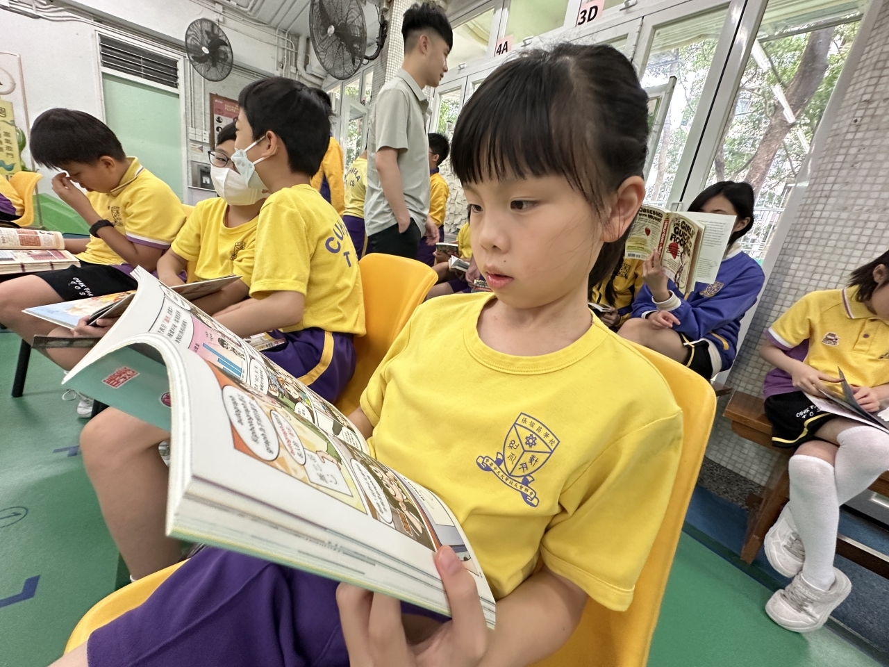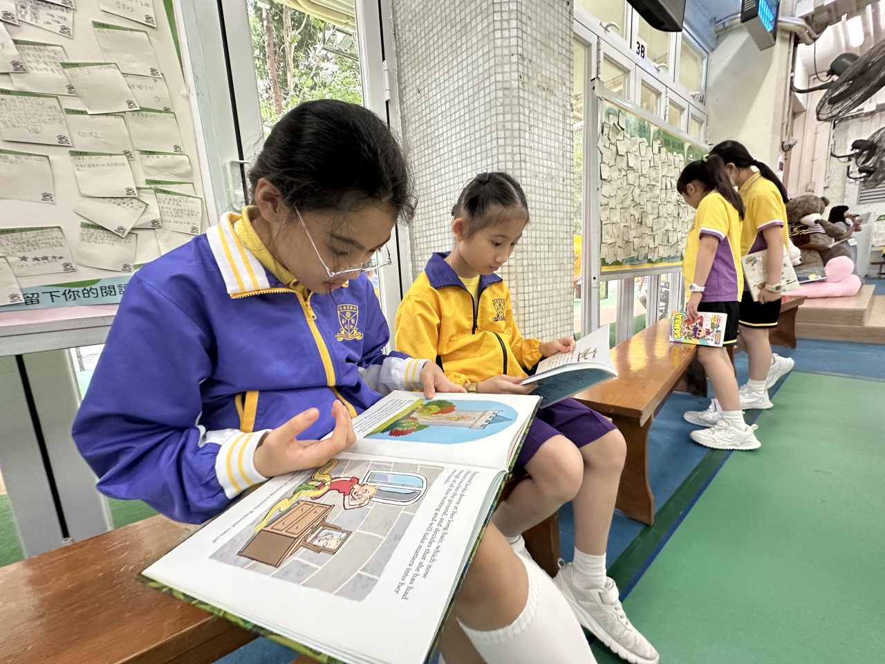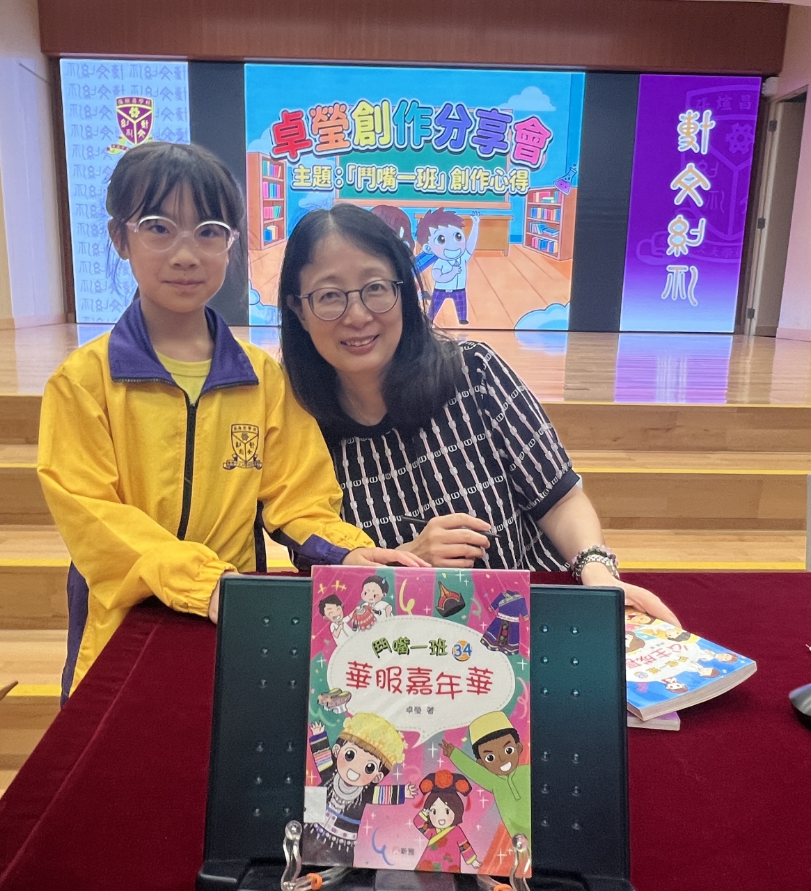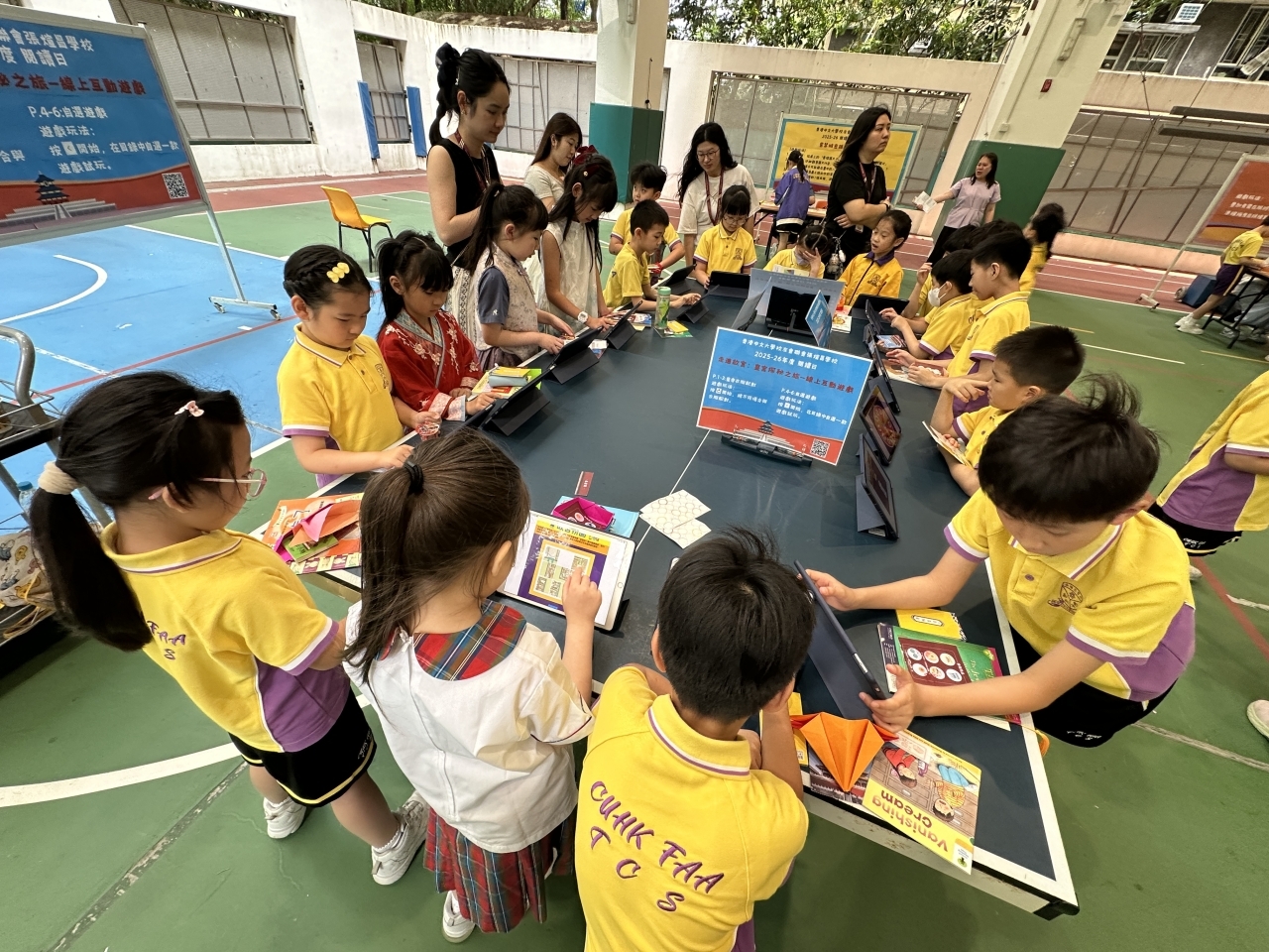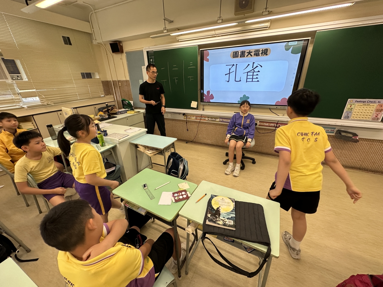 2026-04-28 閱讀半小時 同學們在早讀時段專心閱讀半小時,隨後在便利貼上寫下閱讀感想,再到雨操場張貼,和同學們分享閱讀的樂趣。 圖書大電視 學生們利用遊戲方式和同學分享書中事物,刺激又好玩。 漂書活動 早前,學校向家長們募捐圖書進行漂書活動,很多學生都在活動中尋得心頭好,將圖書帶回家閱讀。 攤位遊戲 配合《跟着皇帝遊故宮》的主題,學校準備了不同種類的攤位遊戲供學生們體驗,既有不同科目的遊戲,也有摺紙活動,活動多元化,學生們也玩得盡興。 閱讀講座 高年級邀請了《鬥嘴一班》的作者卓瑩姐姐到校為學生們分享創作心得,學生們聽得津津有味,講座後更設有作者簽書活動。低年級則邀請了新雅姐姐跟學生們分享《跟着皇帝遊故宮》的故事。