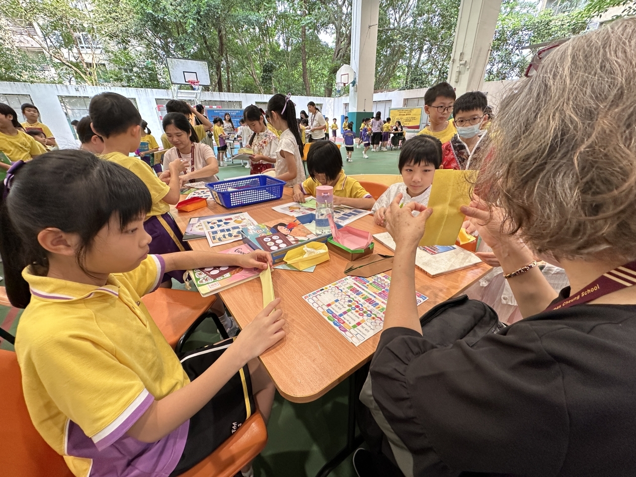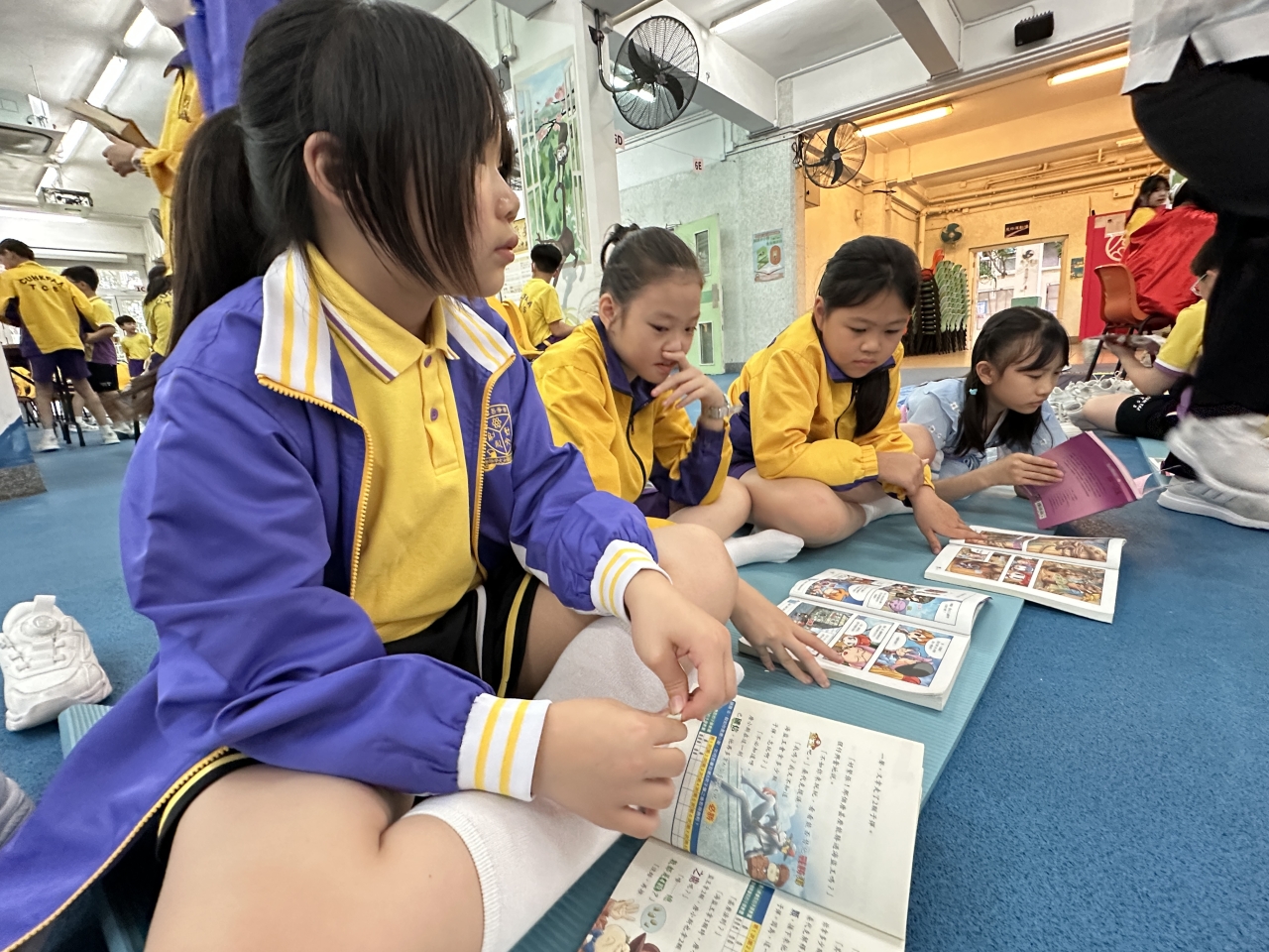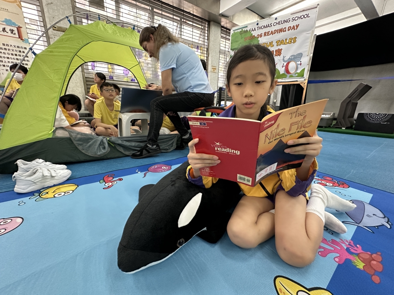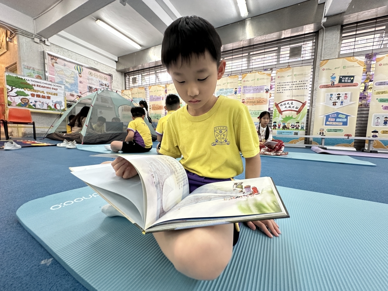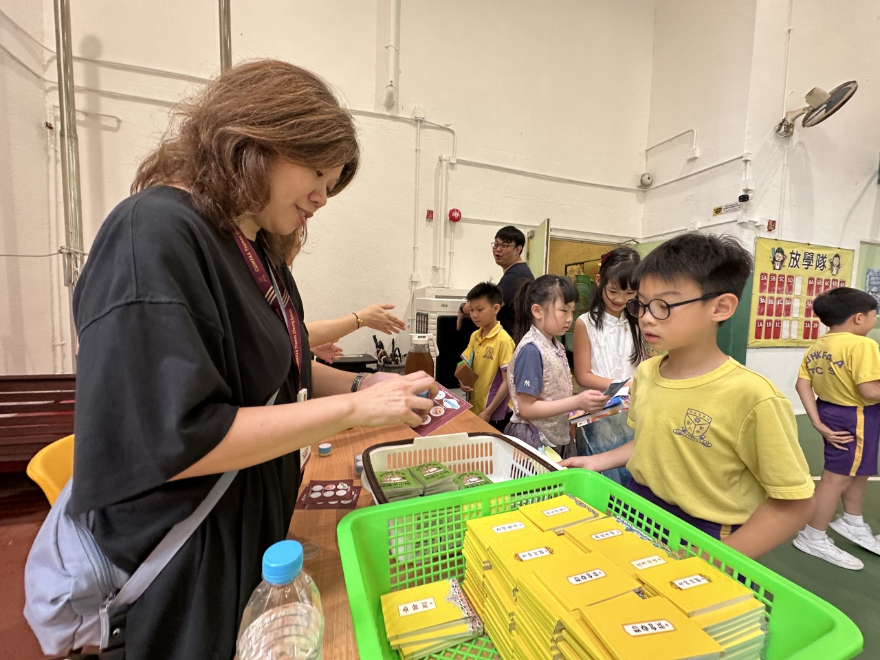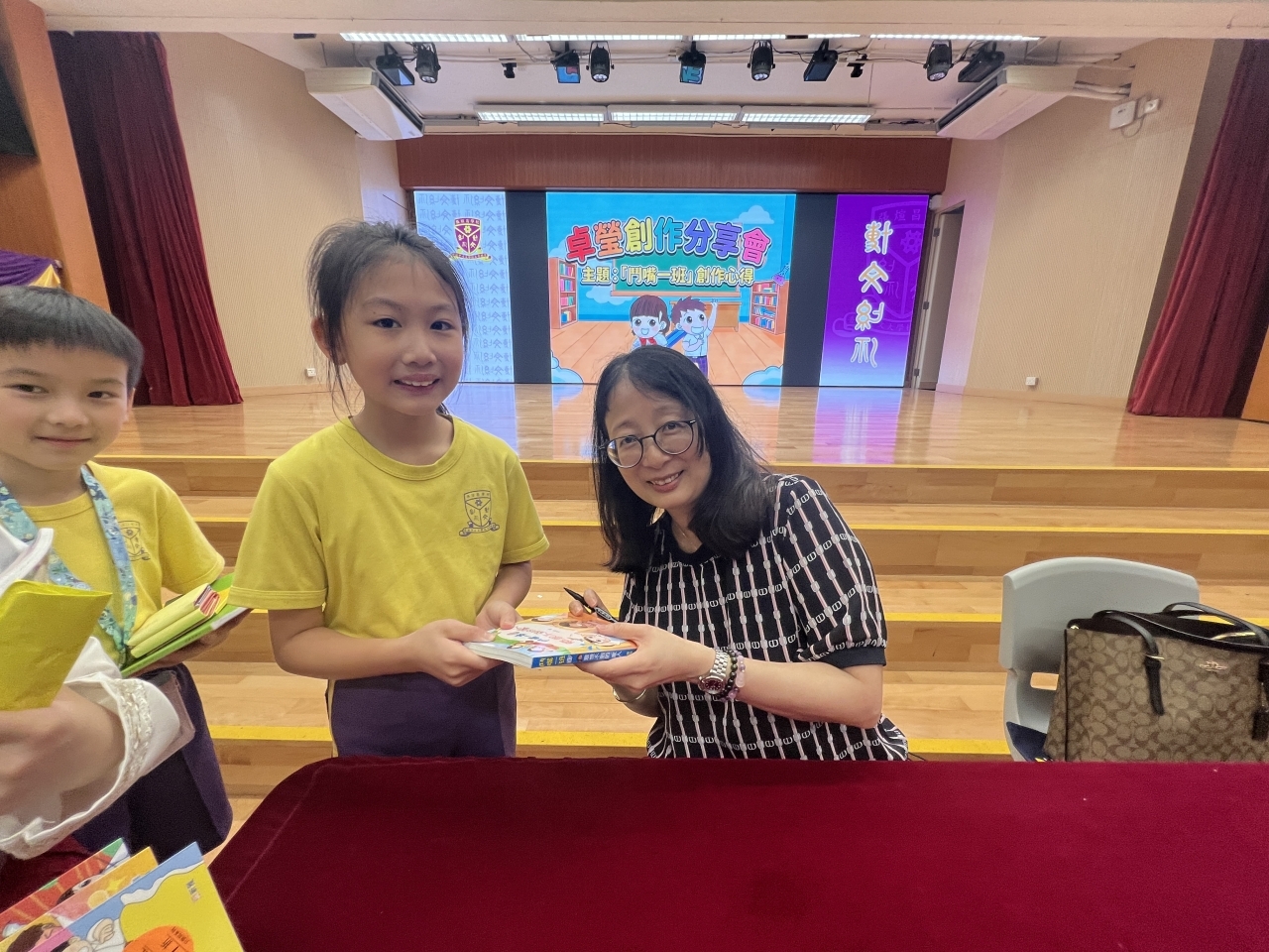 2026-04-28 閱讀半小時 同學們在早讀時段專心閱讀半小時,隨後在便利貼上寫下閱讀感想,再到雨操場張貼,和同學們分享閱讀的樂趣。 圖書大電視 學生們利用遊戲方式和同學分享書中事物,刺激又好玩。 漂書活動 早前,學校向家長們募捐圖書進行漂書活動,很多學生都在活動中尋得心頭好,將圖書帶回家閱讀。 攤位遊戲 配合《跟着皇帝遊故宮》的主題,學校準備了不同種類的攤位遊戲供學生們體驗,既有不同科目的遊戲,也有摺紙活動,活動多元化,學生們也玩得盡興。 閱讀講座 高年級邀請了《鬥嘴一班》的作者卓瑩姐姐到校為學生們分享創作心得,學生們聽得津津有味,講座後更設有作者簽書活動。低年級則邀請了新雅姐姐跟學生們分享《跟着皇帝遊故宮》的故事。