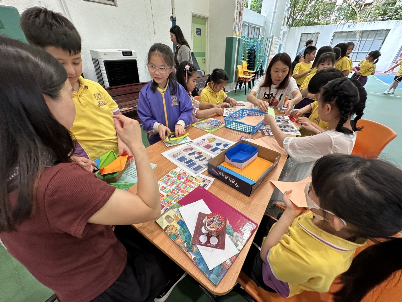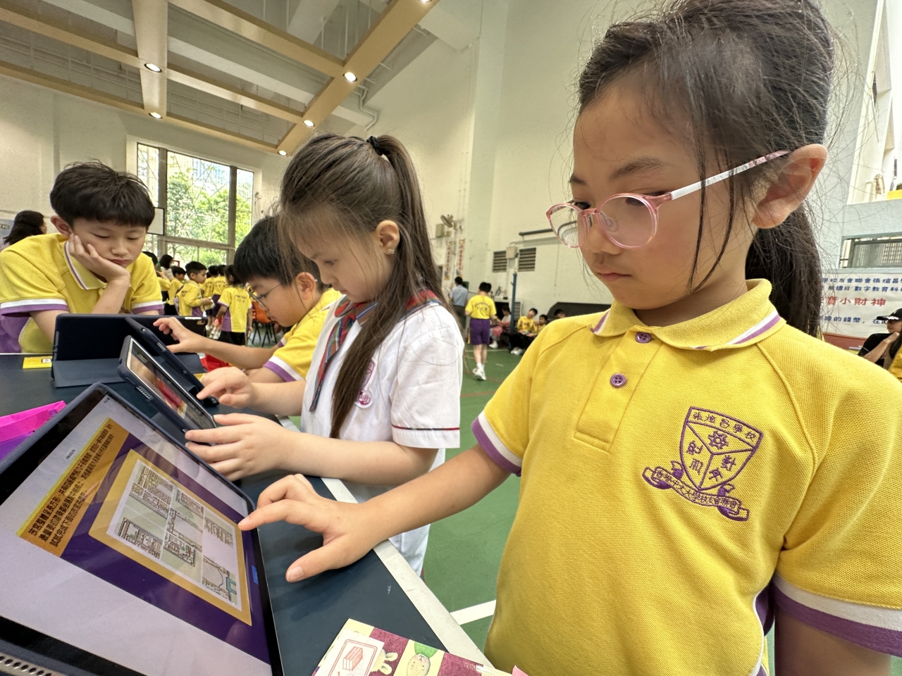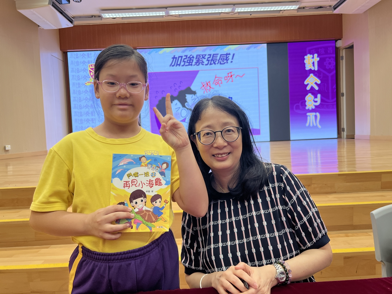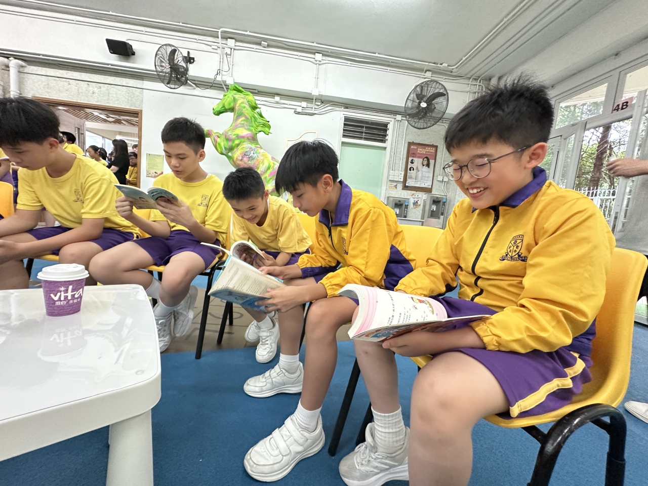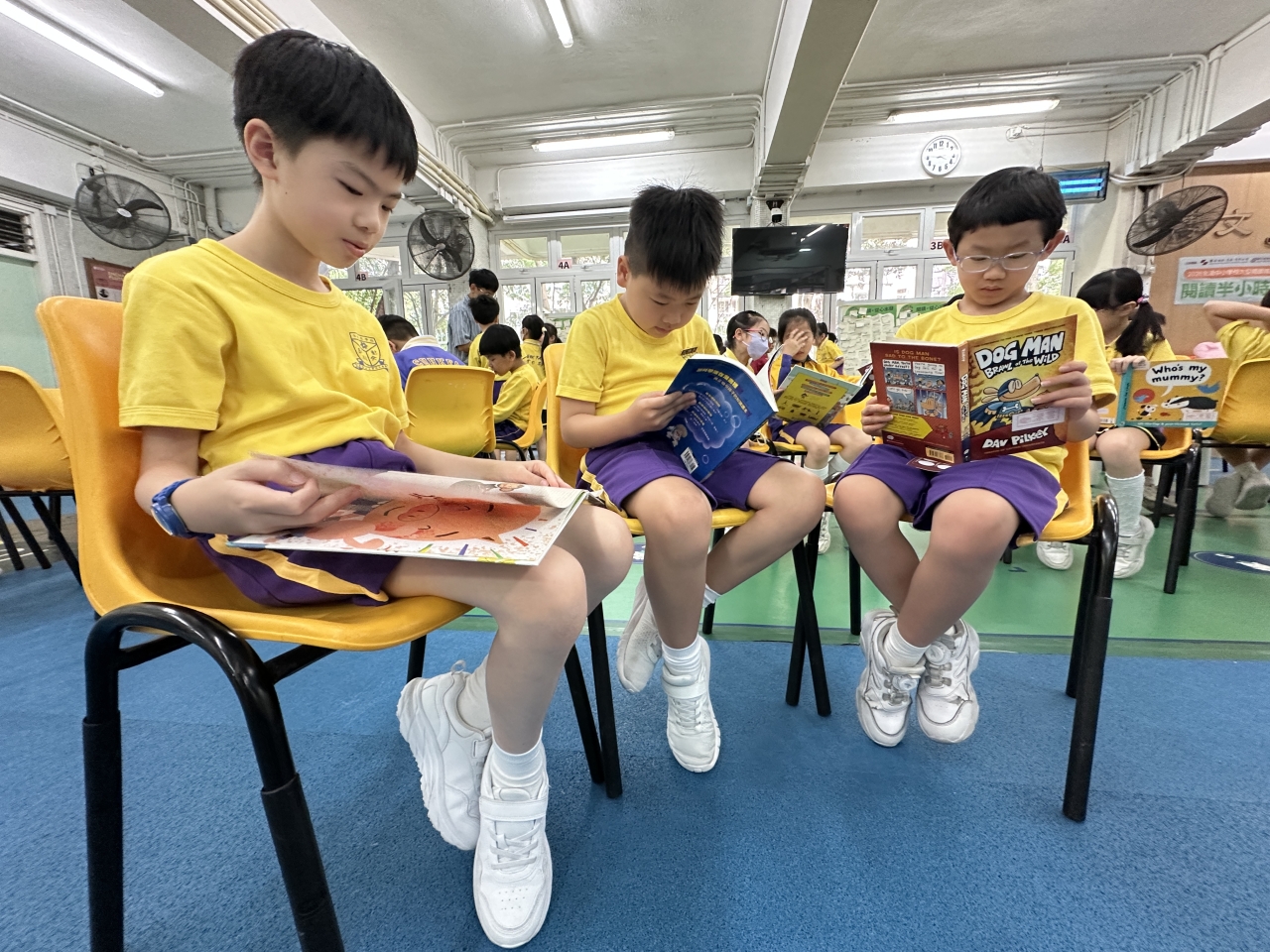 2026-04-28 閱讀半小時 同學們在早讀時段專心閱讀半小時,隨後在便利貼上寫下閱讀感想,再到雨操場張貼,和同學們分享閱讀的樂趣。 圖書大電視 學生們利用遊戲方式和同學分享書中事物,刺激又好玩。 漂書活動 早前,學校向家長們募捐圖書進行漂書活動,很多學生都在活動中尋得心頭好,將圖書帶回家閱讀。 攤位遊戲 配合《跟着皇帝遊故宮》的主題,學校準備了不同種類的攤位遊戲供學生們體驗,既有不同科目的遊戲,也有摺紙活動,活動多元化,學生們也玩得盡興。 閱讀講座 高年級邀請了《鬥嘴一班》的作者卓瑩姐姐到校為學生們分享創作心得,學生們聽得津津有味,講座後更設有作者簽書活動。低年級則邀請了新雅姐姐跟學生們分享《跟着皇帝遊故宮》的故事。
