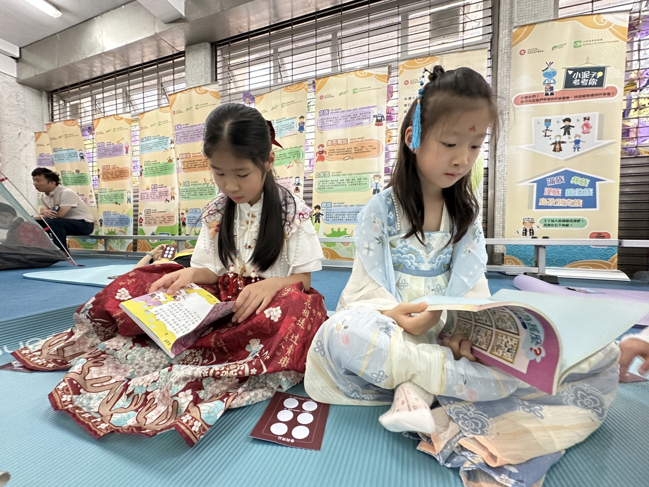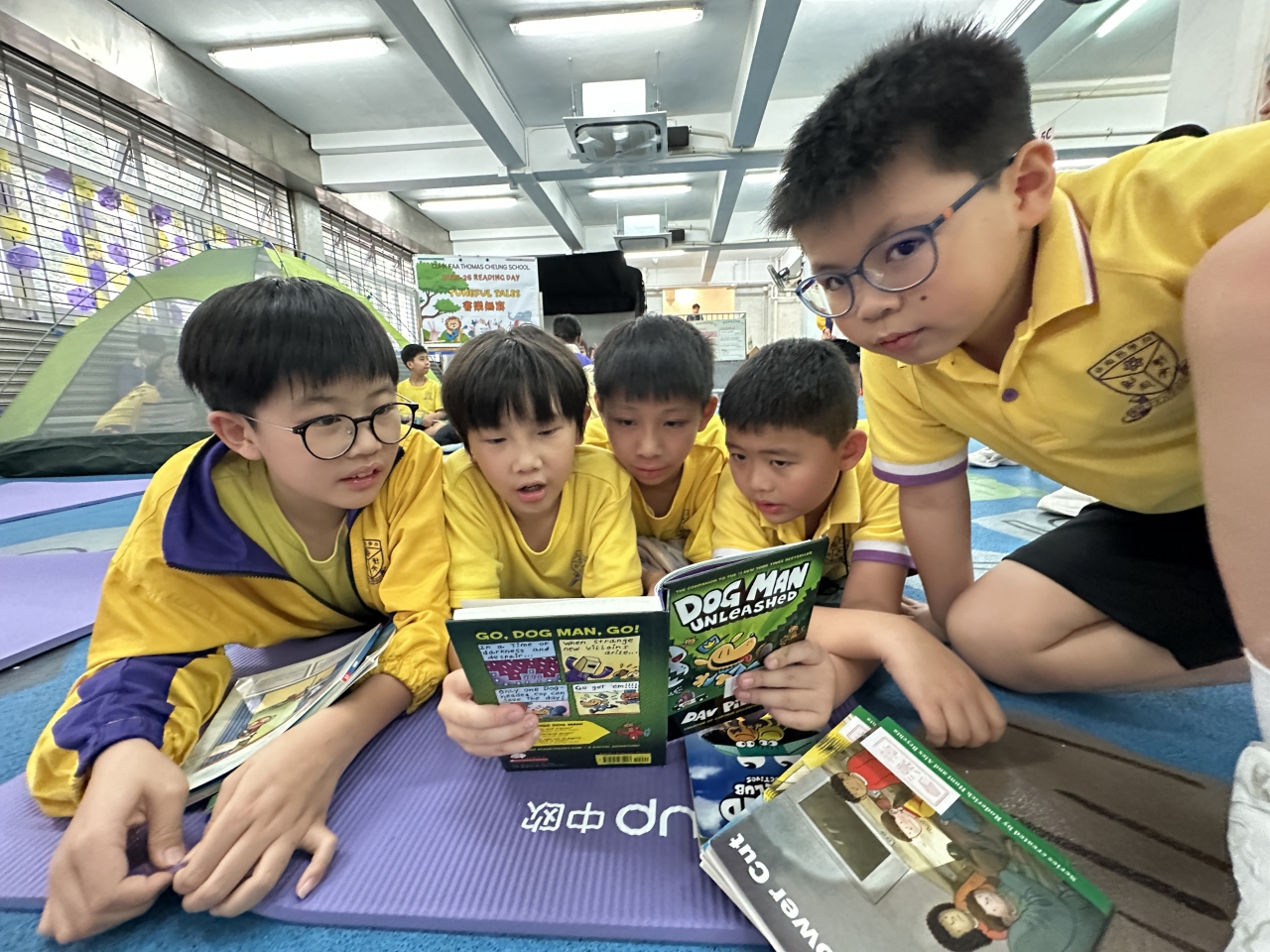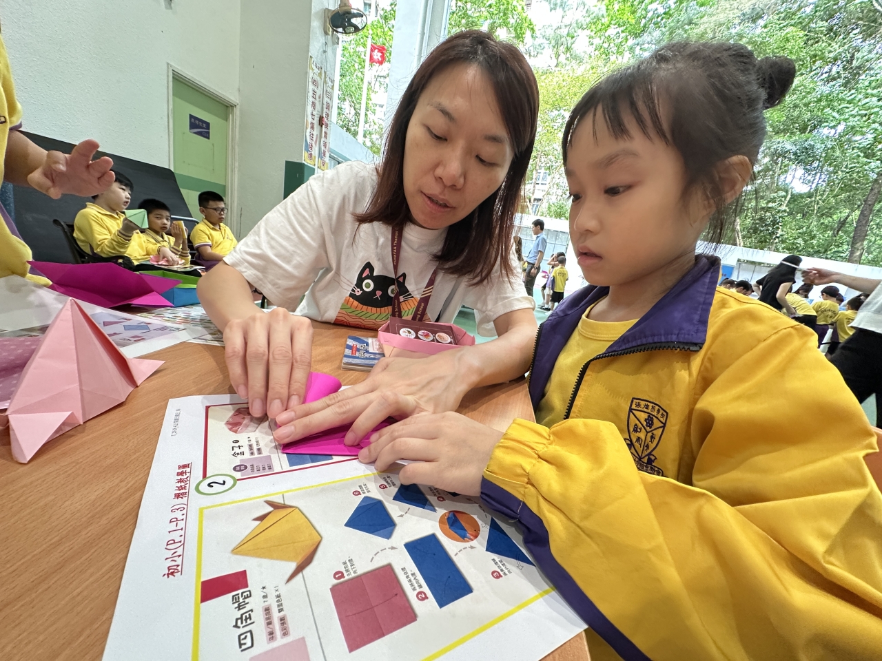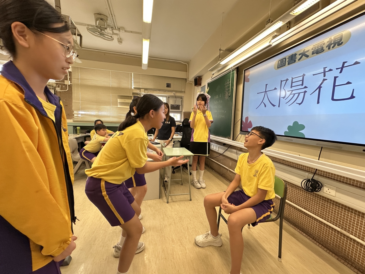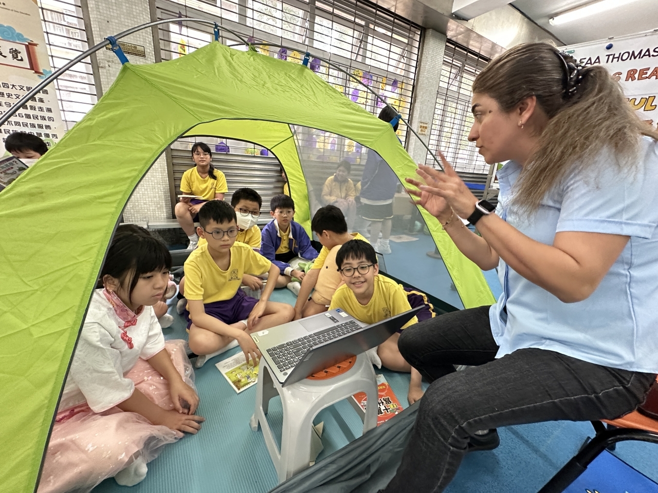 2026-04-28 閱讀半小時 同學們在早讀時段專心閱讀半小時,隨後在便利貼上寫下閱讀感想,再到雨操場張貼,和同學們分享閱讀的樂趣。 圖書大電視 學生們利用遊戲方式和同學分享書中事物,刺激又好玩。 漂書活動 早前,學校向家長們募捐圖書進行漂書活動,很多學生都在活動中尋得心頭好,將圖書帶回家閱讀。 攤位遊戲 配合《跟着皇帝遊故宮》的主題,學校準備了不同種類的攤位遊戲供學生們體驗,既有不同科目的遊戲,也有摺紙活動,活動多元化,學生們也玩得盡興。 閱讀講座 高年級邀請了《鬥嘴一班》的作者卓瑩姐姐到校為學生們分享創作心得,學生們聽得津津有味,講座後更設有作者簽書活動。低年級則邀請了新雅姐姐跟學生們分享《跟着皇帝遊故宮》的故事。
