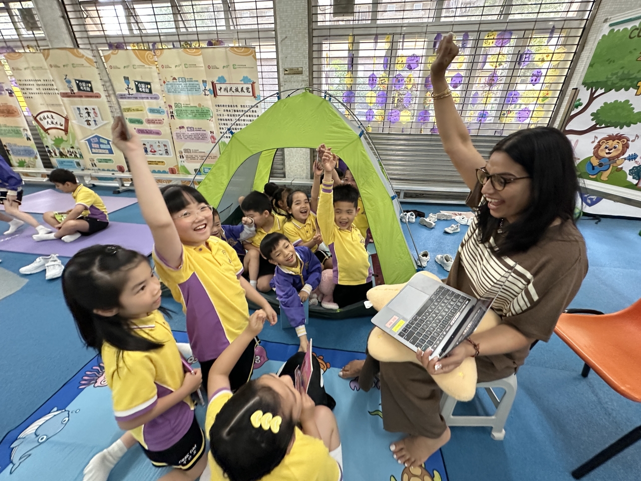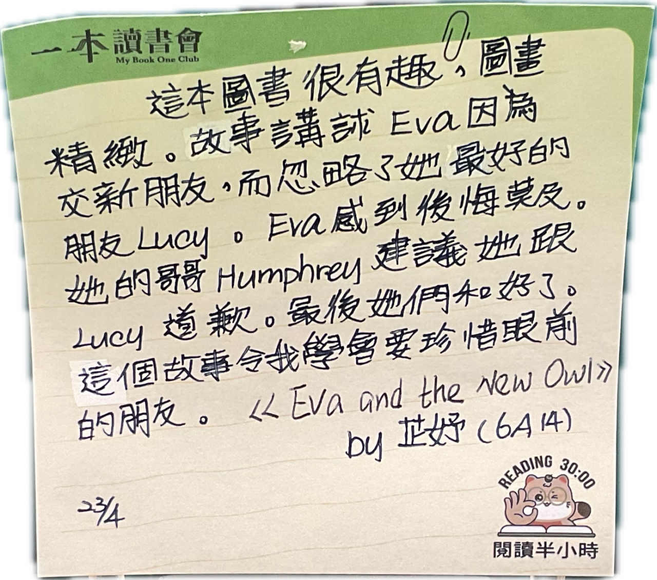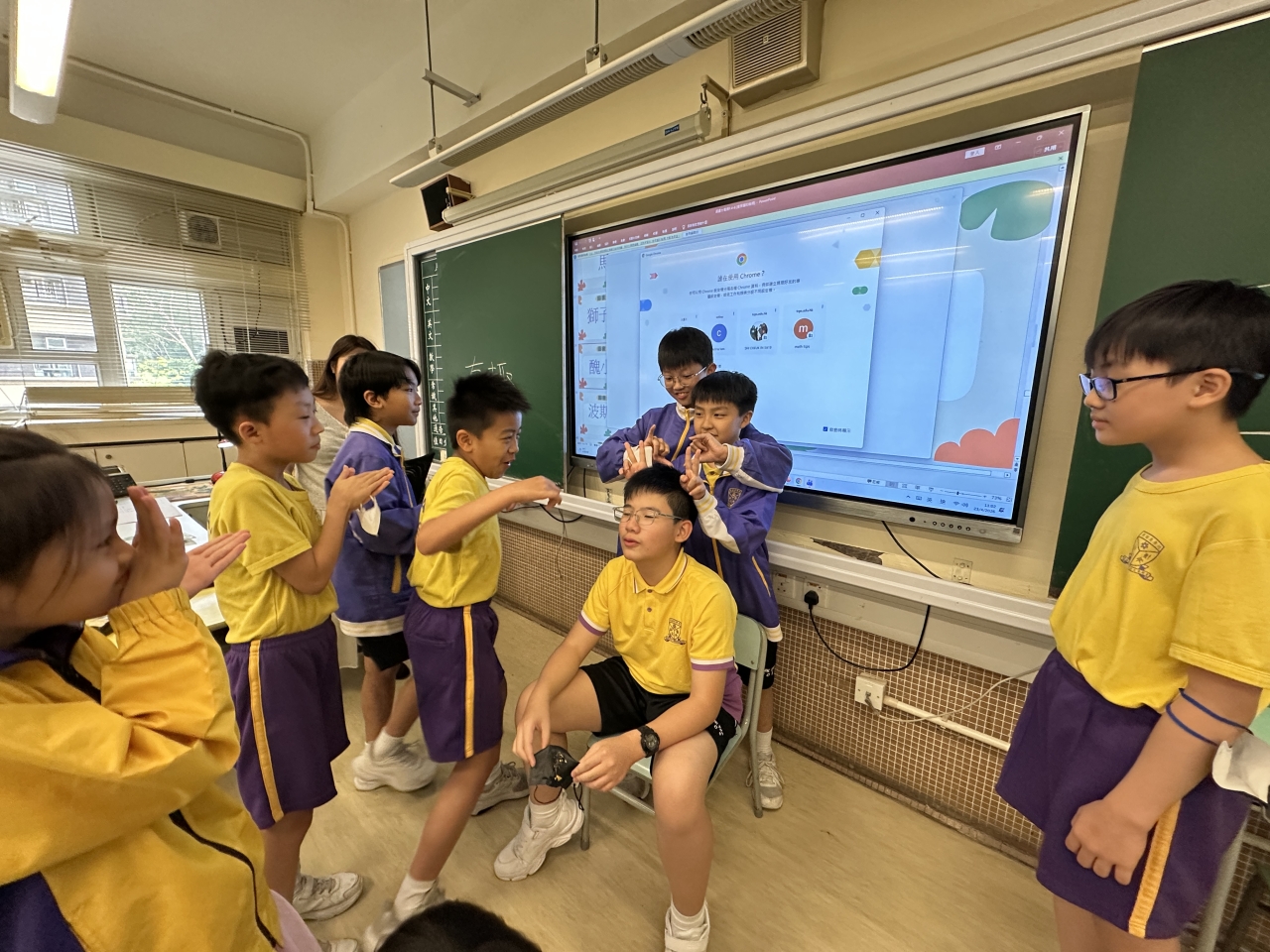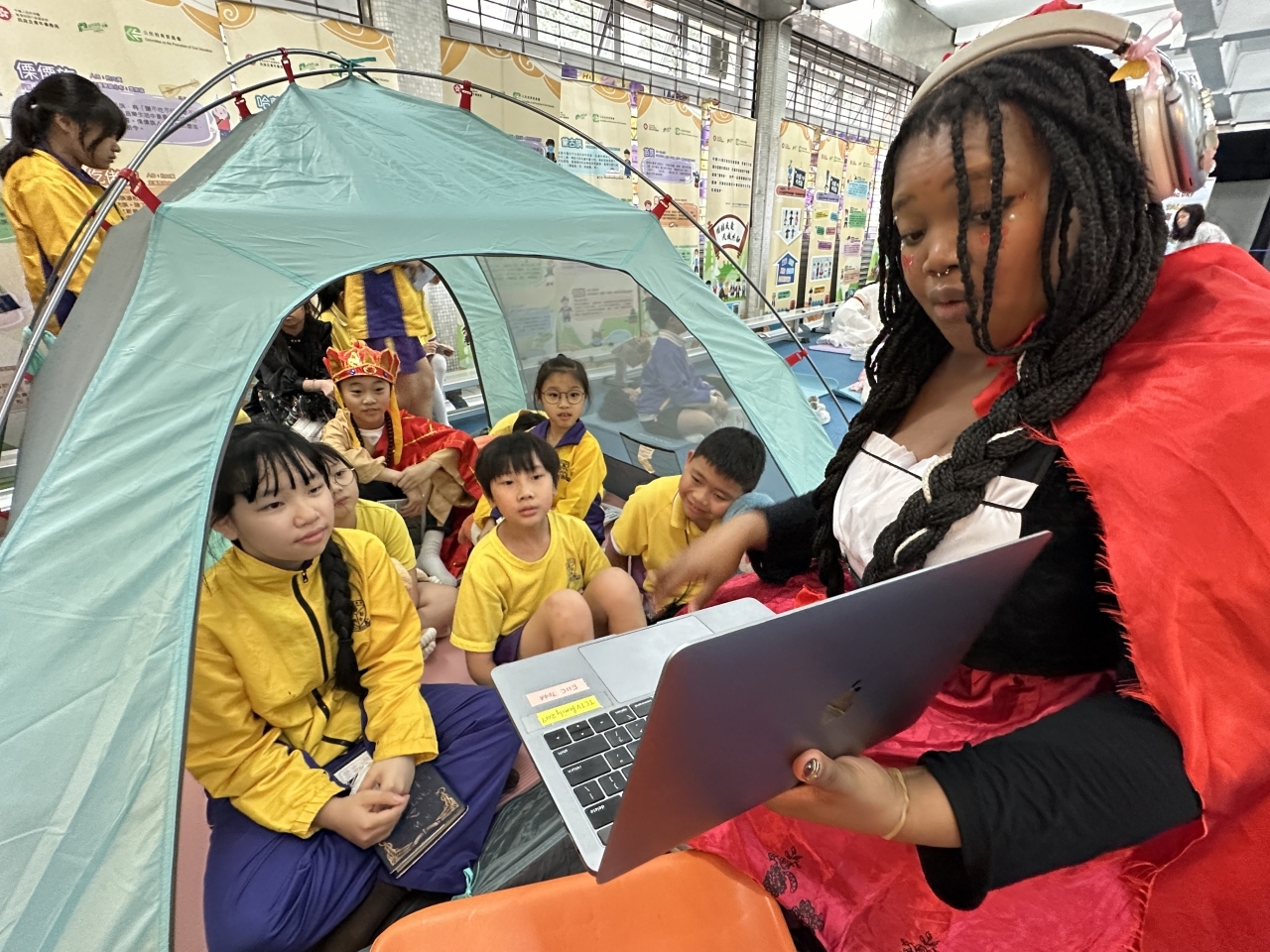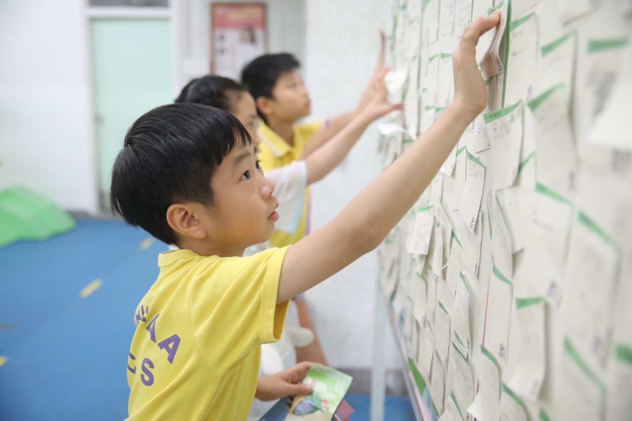 2026-04-28 閱讀半小時 同學們在早讀時段專心閱讀半小時,隨後在便利貼上寫下閱讀感想,再到雨操場張貼,和同學們分享閱讀的樂趣。 圖書大電視 學生們利用遊戲方式和同學分享書中事物,刺激又好玩。 漂書活動 早前,學校向家長們募捐圖書進行漂書活動,很多學生都在活動中尋得心頭好,將圖書帶回家閱讀。 攤位遊戲 配合《跟着皇帝遊故宮》的主題,學校準備了不同種類的攤位遊戲供學生們體驗,既有不同科目的遊戲,也有摺紙活動,活動多元化,學生們也玩得盡興。 閱讀講座 高年級邀請了《鬥嘴一班》的作者卓瑩姐姐到校為學生們分享創作心得,學生們聽得津津有味,講座後更設有作者簽書活動。低年級則邀請了新雅姐姐跟學生們分享《跟着皇帝遊故宮》的故事。