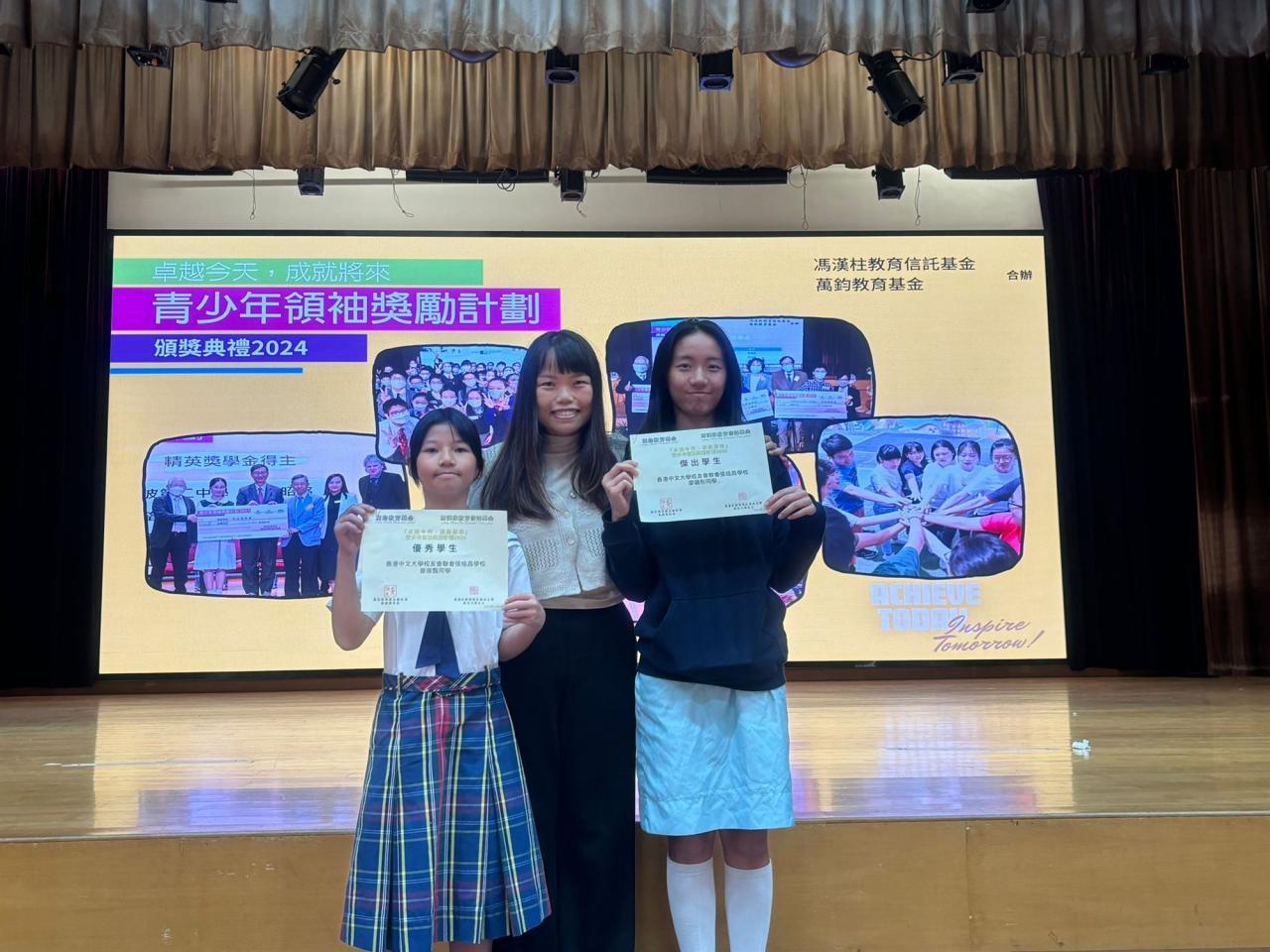 2024-11-12 曾葆甄及廖穎彤同學於23-24年度代表學校參加「卓越今天,成就將來」青少年領袖獎勵計劃(2024)並分別獲得優秀學生及傑出學生獎學金。頒獎禮剛於本月9日舉行,在此恭喜兩名獲獎同學。優秀學生曾葆甄 廖穎彤傑出學生獎學金曾葆甄 廖穎彤 校外