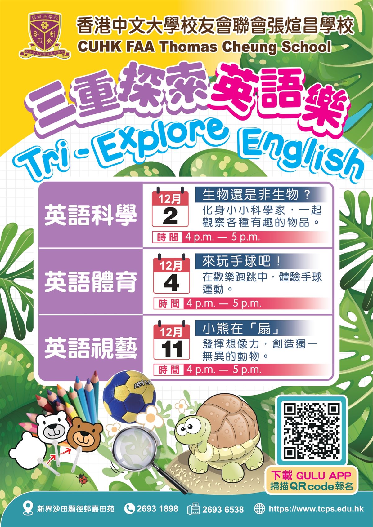 2025-11-17 Let your child discover the joy of learning English through science, sports, and art! English Science English PE English Visual ArtsPerfect for kids who love to learn, create, and play!Let them learn English in a fun and active way. Scan the QR code and sign up now. Let the adventure begin! 最新消息
