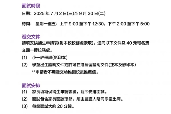 小一候補生報名及面試安排