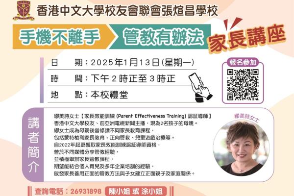 「手機不離手 管教有辦法」家長講座