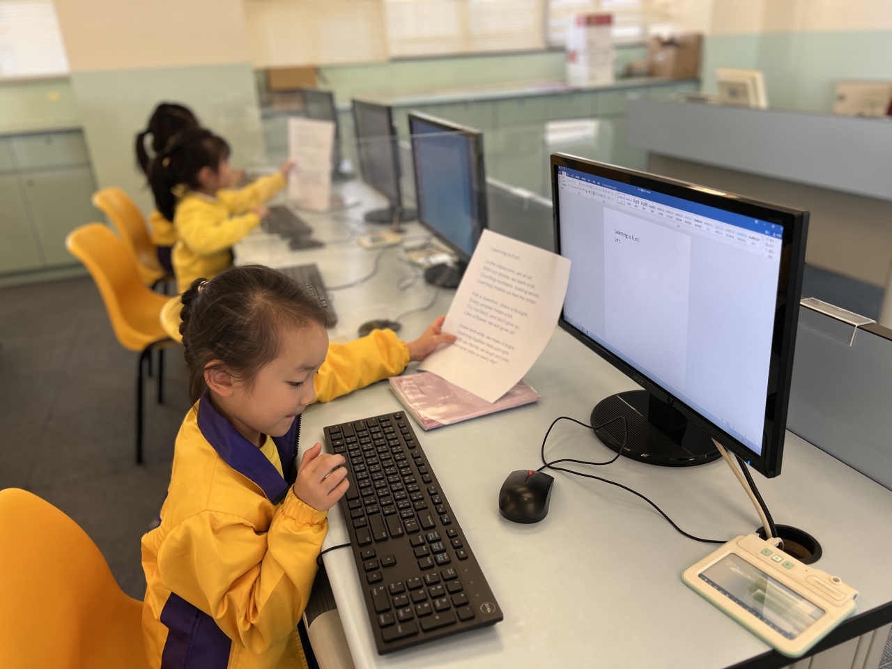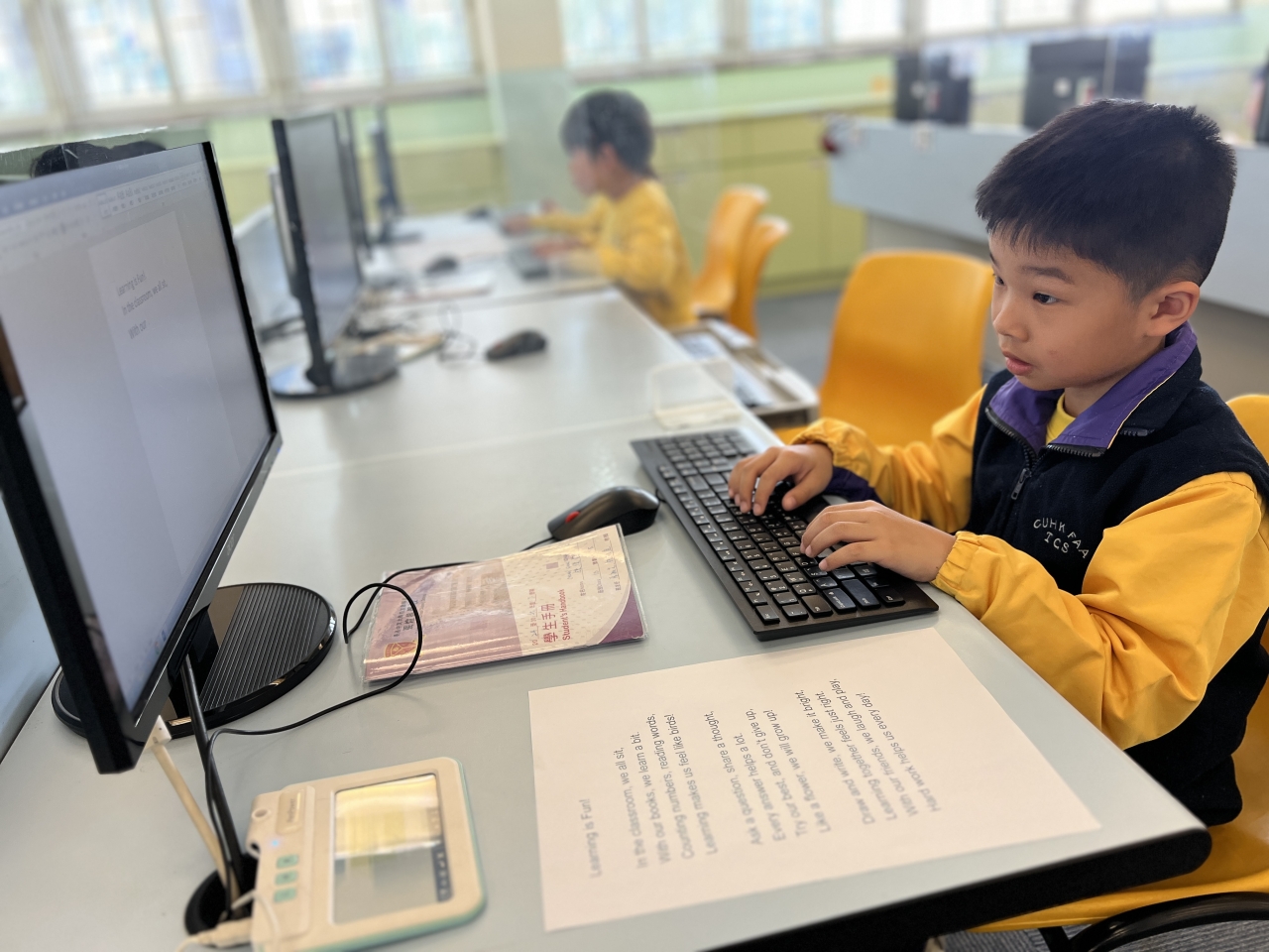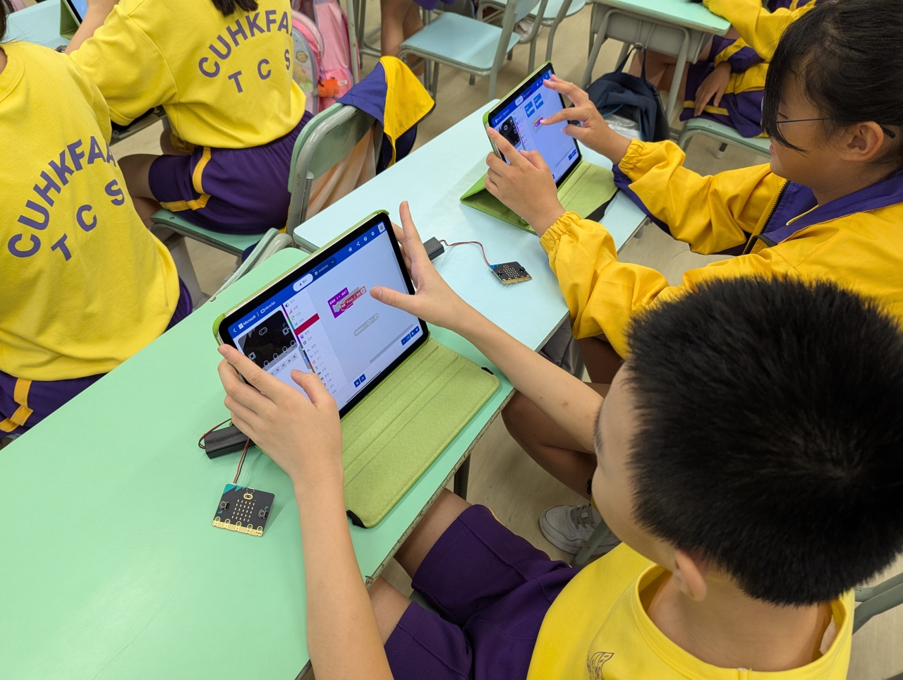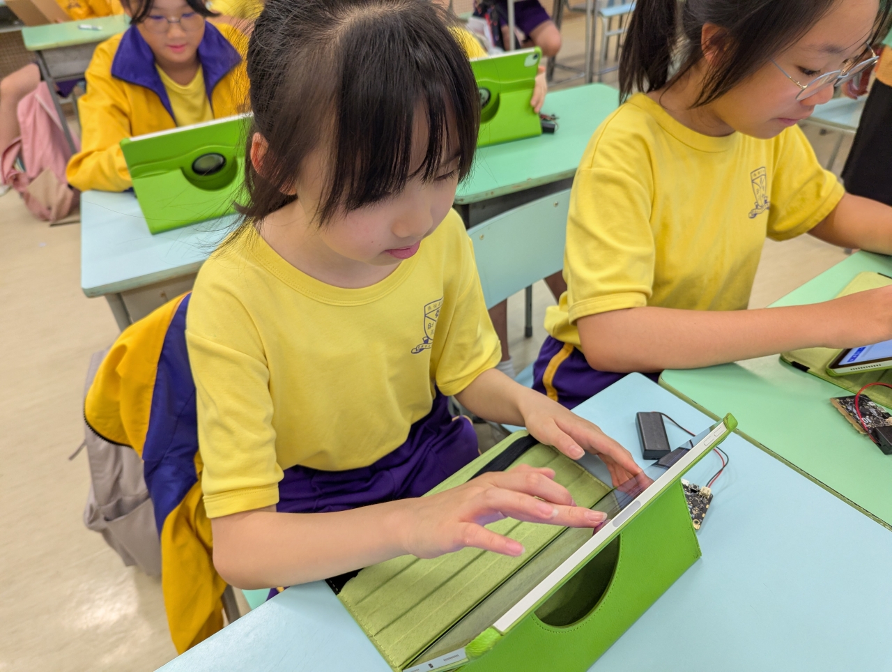 Micro bit 我們正進行專題研習,我們要利用micro:bit,並透過編程去作坐姿提示器及計步器。我們在資訊科技課堂中進行編程,雖然困難重重,但經過我們努力改良後,成功製作好我們的產品。 Scratch 學生正進行小組合作學習,透過Scratch編程合作製作動畫。學生要一起計設動畫內容,然後一起研究如何利用Scratch指令製作動畫,最終各組都能完成生動有趣的動畫。 動畫設計 學生正進行小組合作學習,透過Scratch編程合作製作動畫。學生要一起設計動畫內容,然後一起研究如何利用Scratch指令製作動畫,最終各組都能完成生動有趣的動畫。 電腦室上課 小一學生正在學習文字輸入,雖然要輸入的文字頗多,但每一個學生也很認真地練習,很快便完成呢。 課程學習 在本學年中,教師會按照課題難度,要求學生獨自一人或分組完成教師佈置的任務,以發揮同儕鷹架的作用。